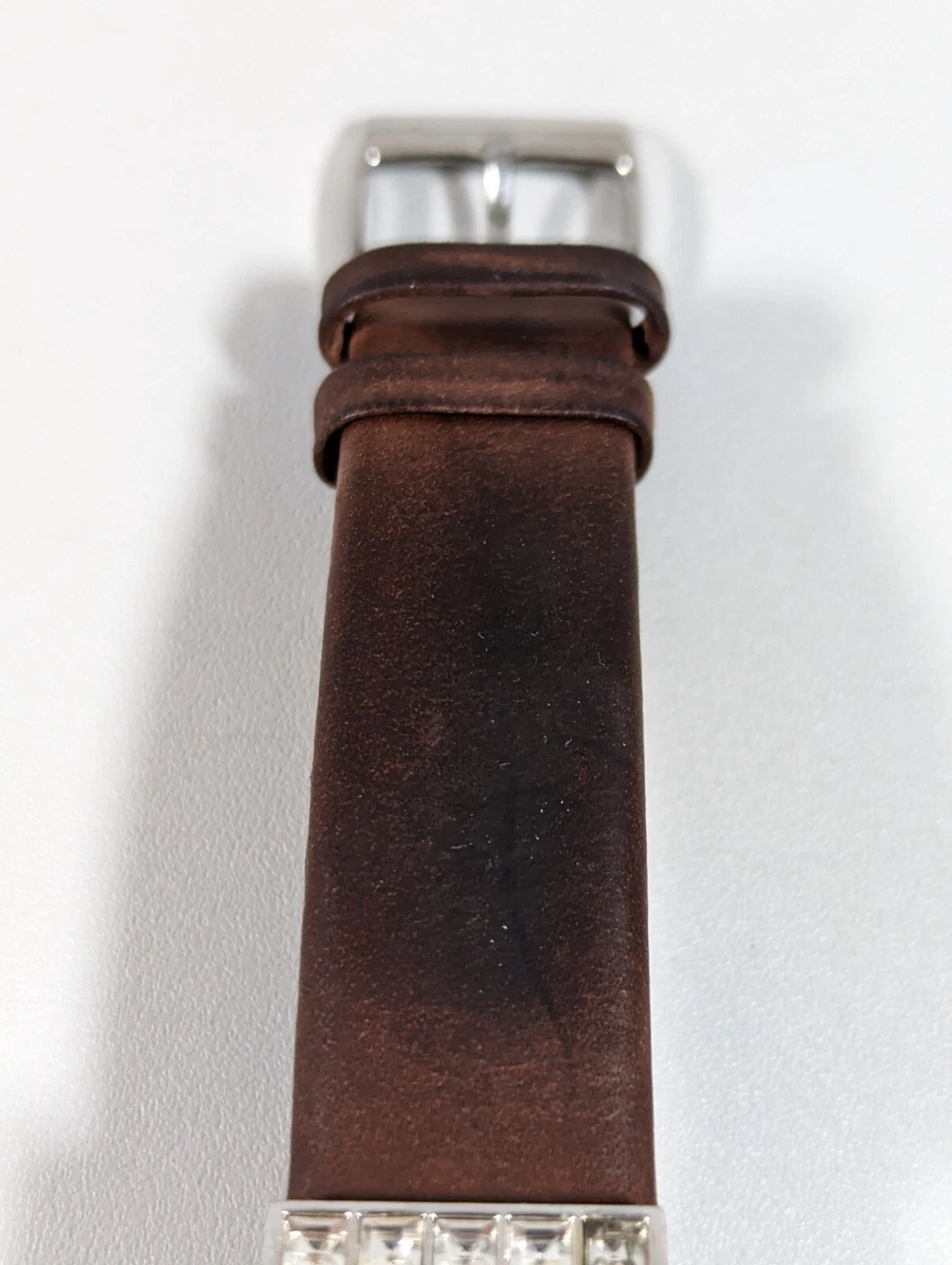 Suzanne Somers Brown Dial Crystal Accent Rectangle Case Leather Band Watch