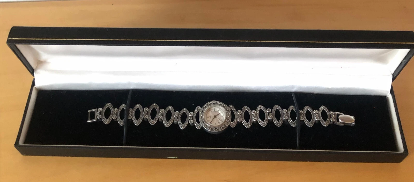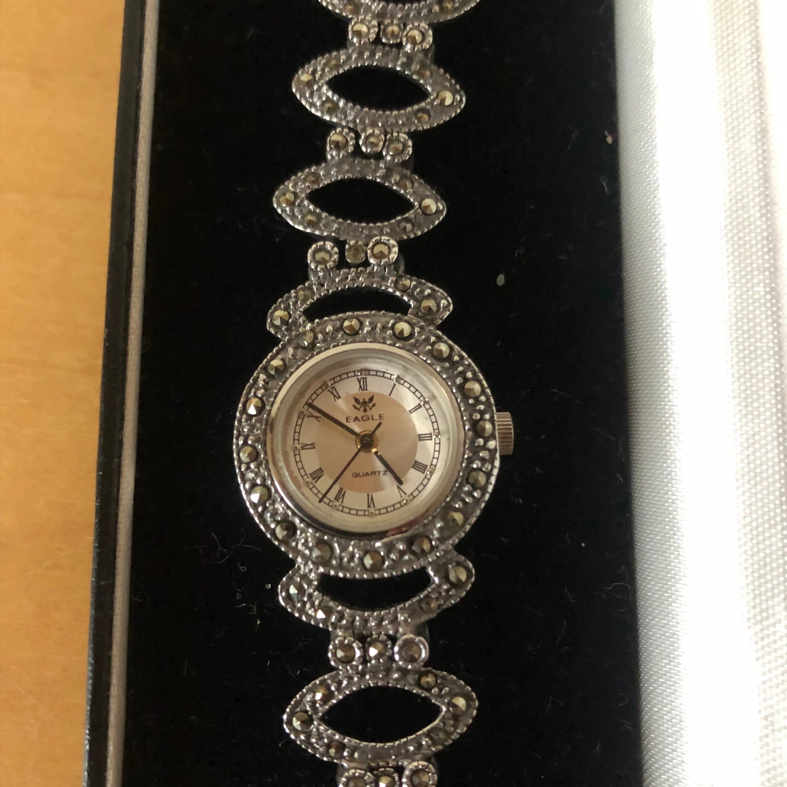 Ladies Marcasite And 925 Silver Swiss Eagle Quartz Wristwatch