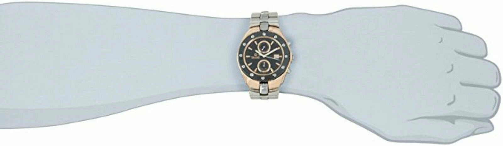 NEW Swistar 5655-2M Men's Swiss Quartz Black Bezel RoseGold Plated Case SS Watch