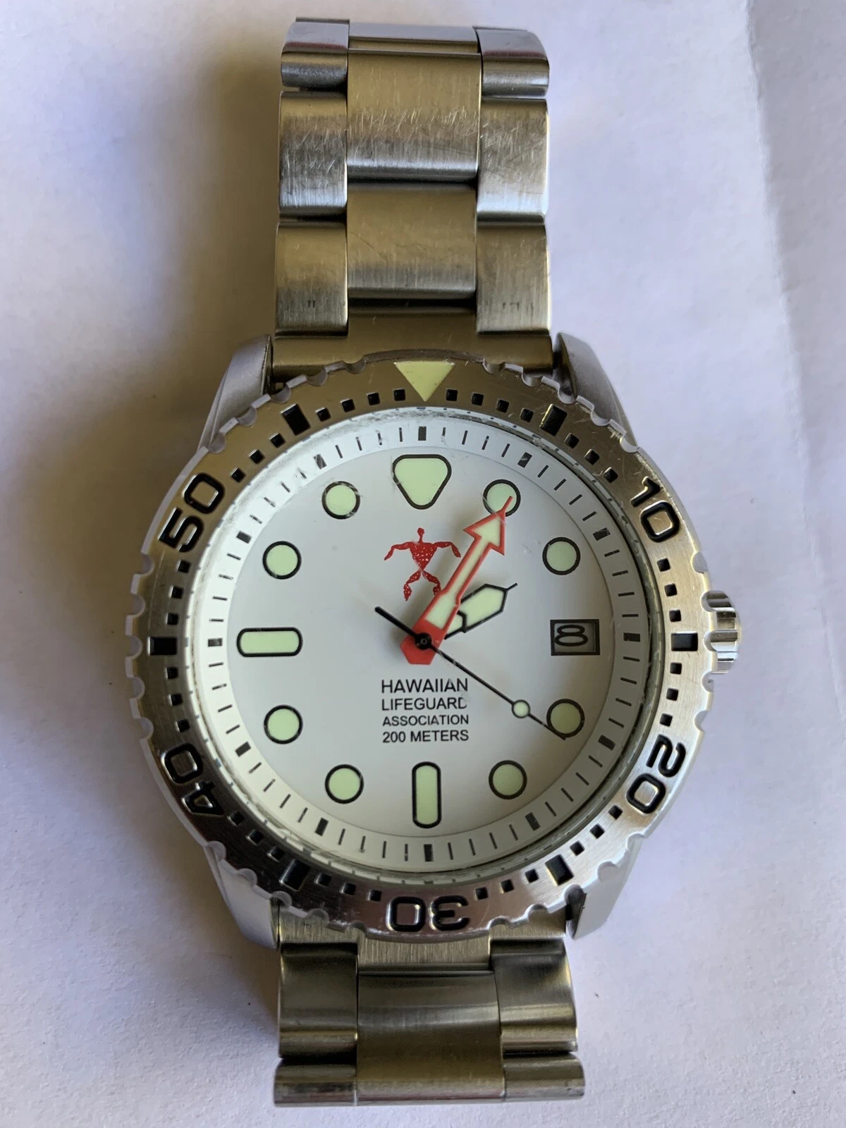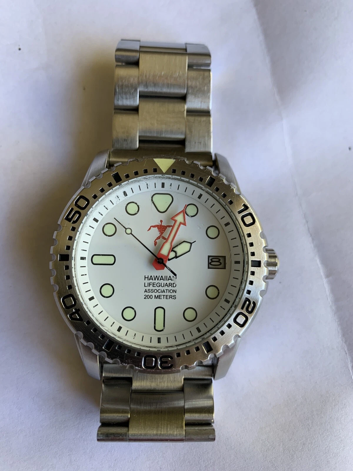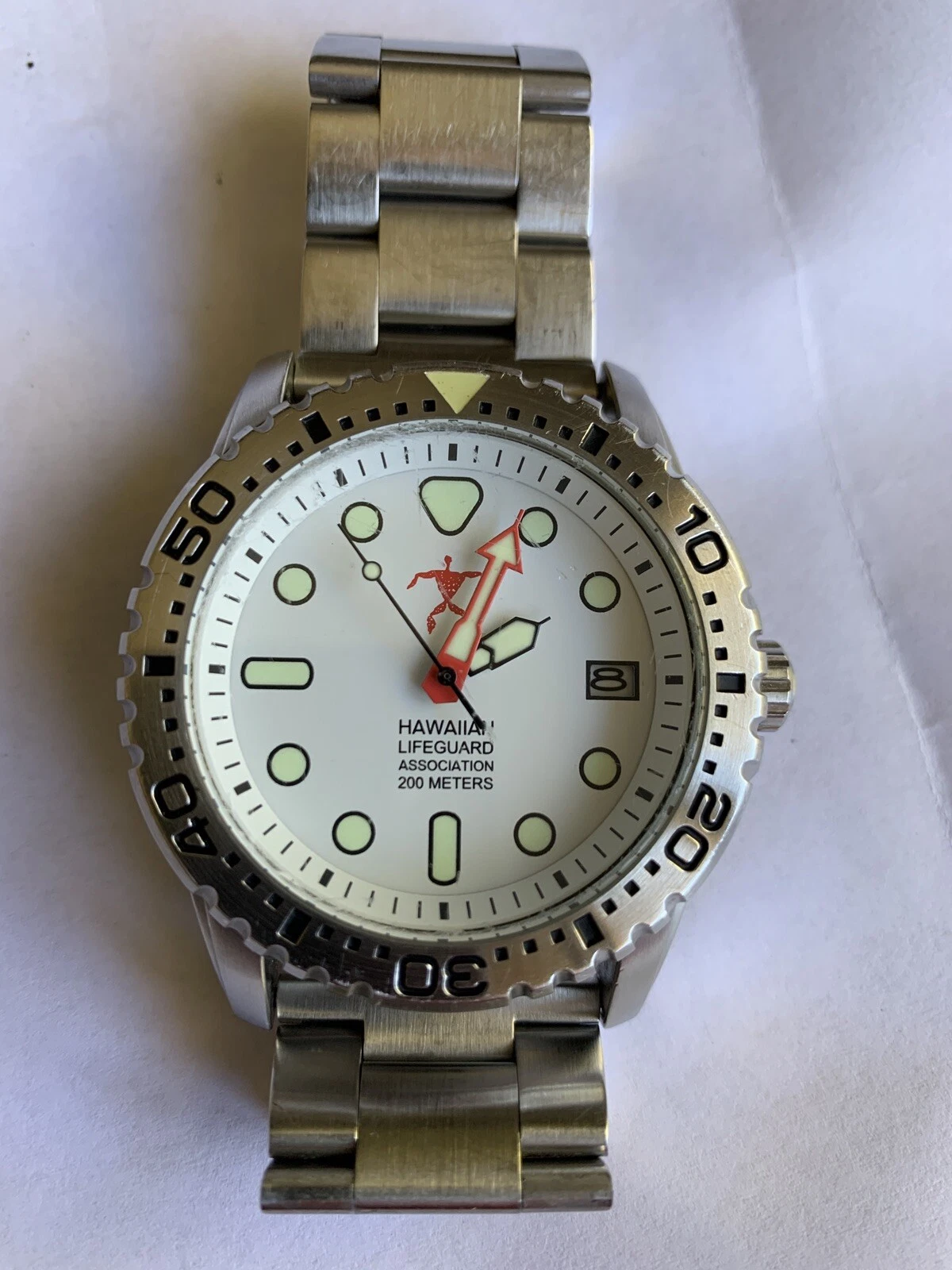 Beautiful HAWAIIAN LIFEGUARD ASSOCIATION WATCH White Dial Diving Watch