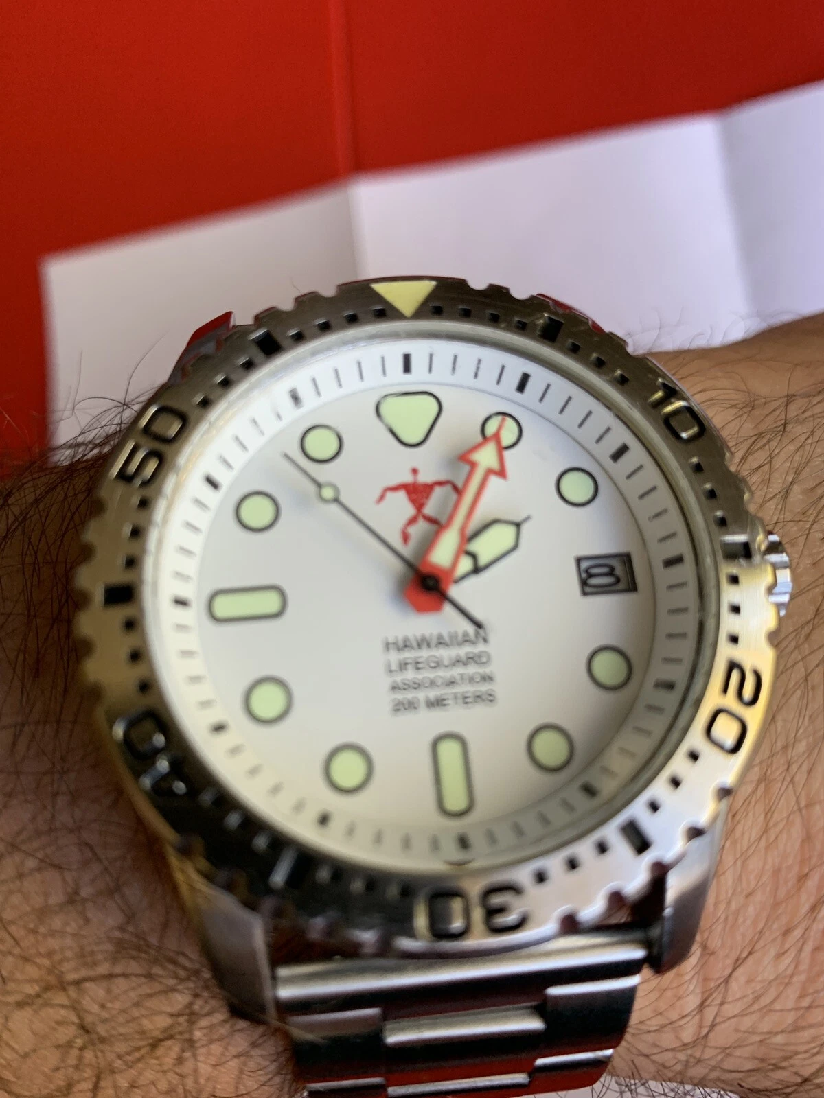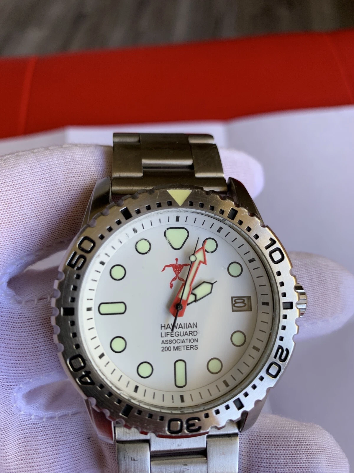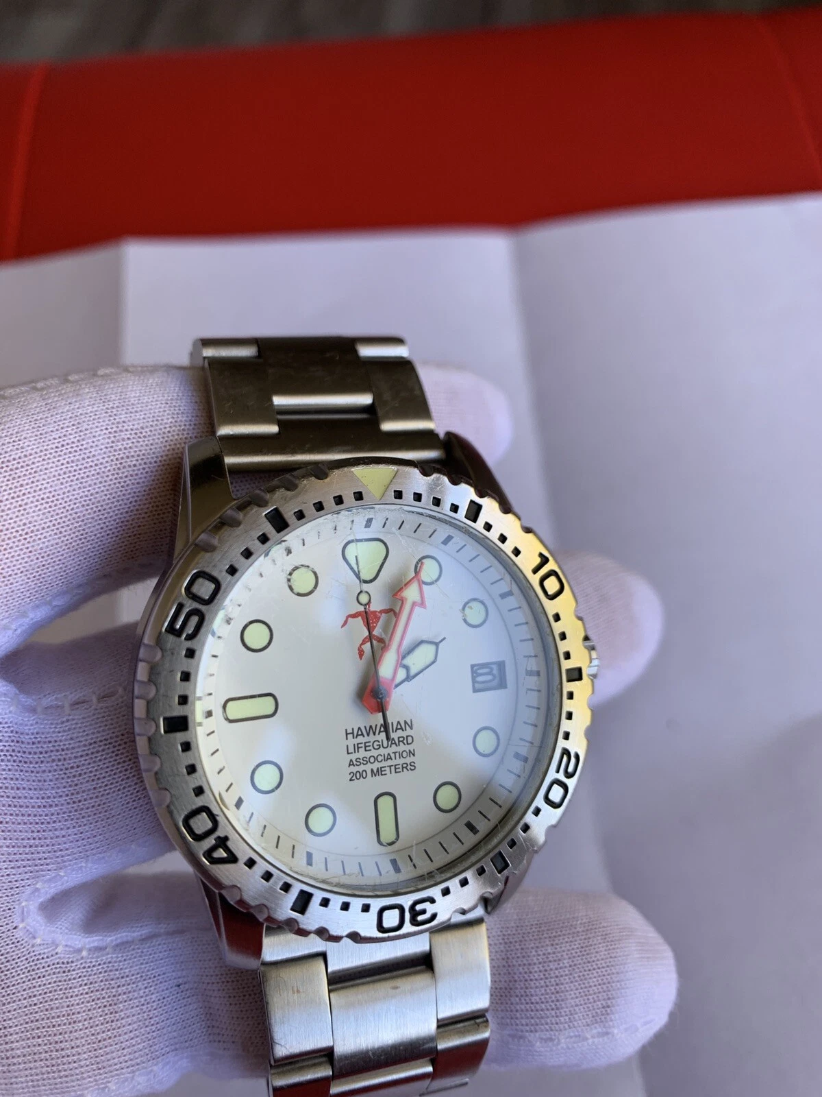 Beautiful HAWAIIAN LIFEGUARD ASSOCIATION WATCH White Dial Diving Watch