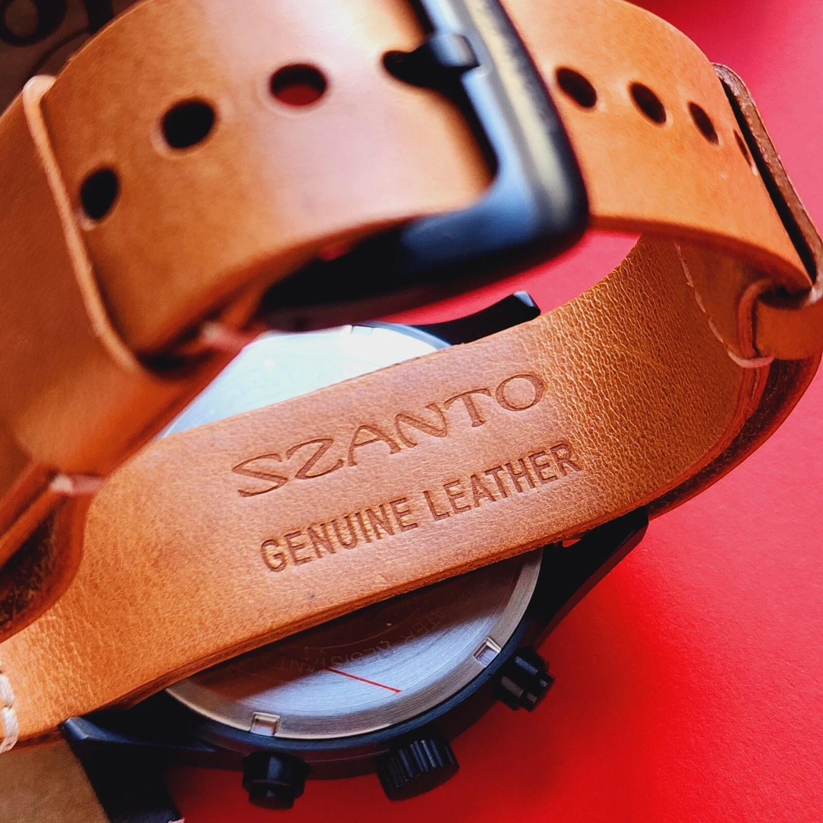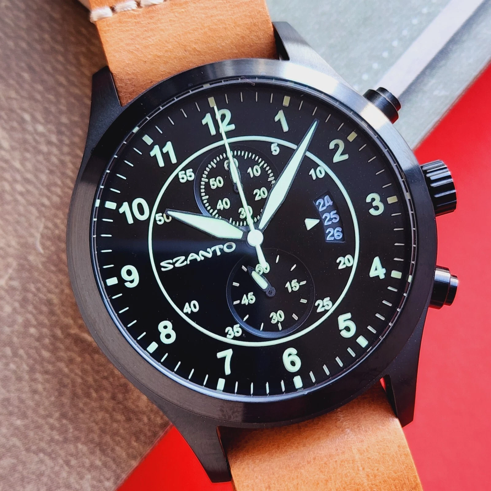 Szanto Chronograph Watch Black Dial Brown Leather Full Set 1200 Series Mens