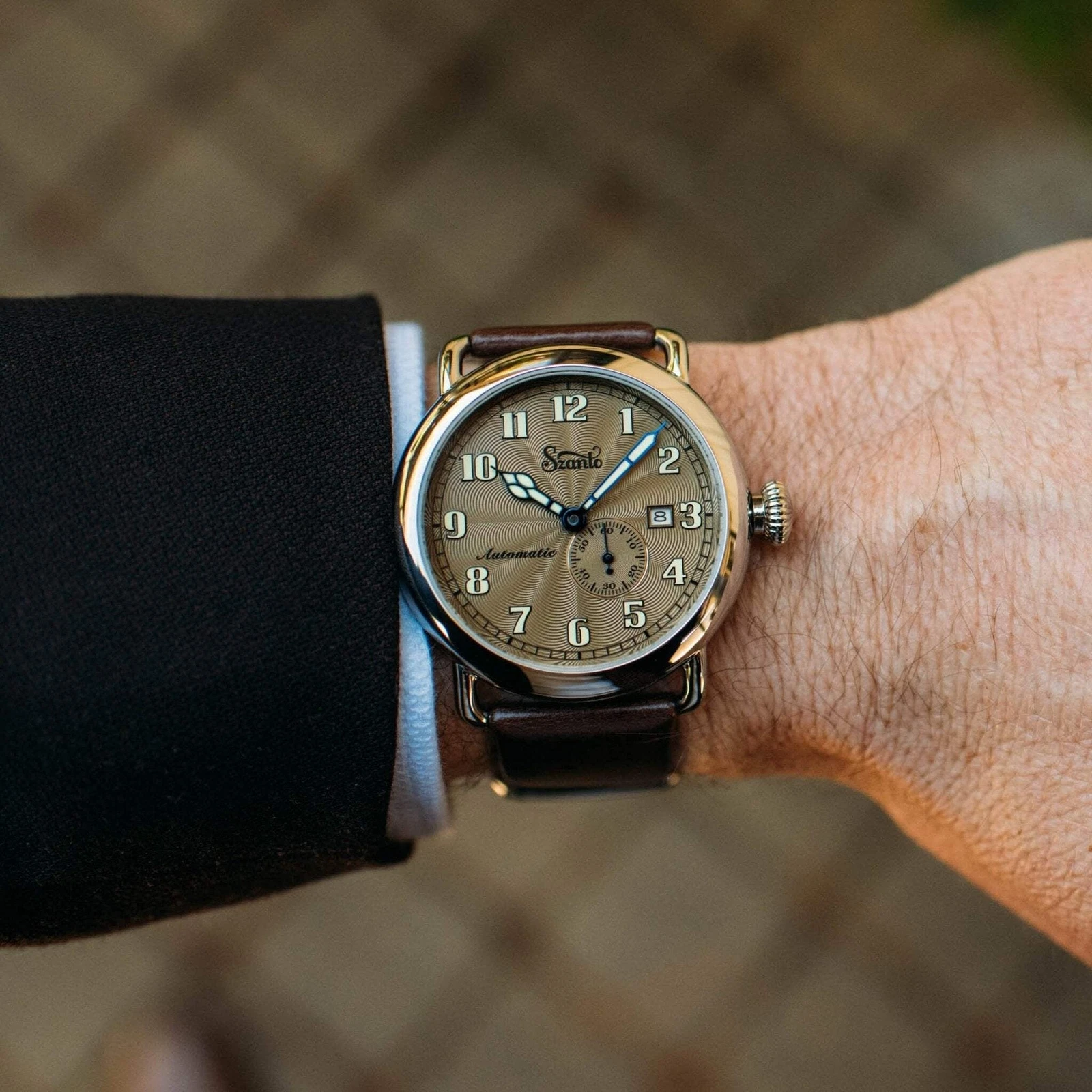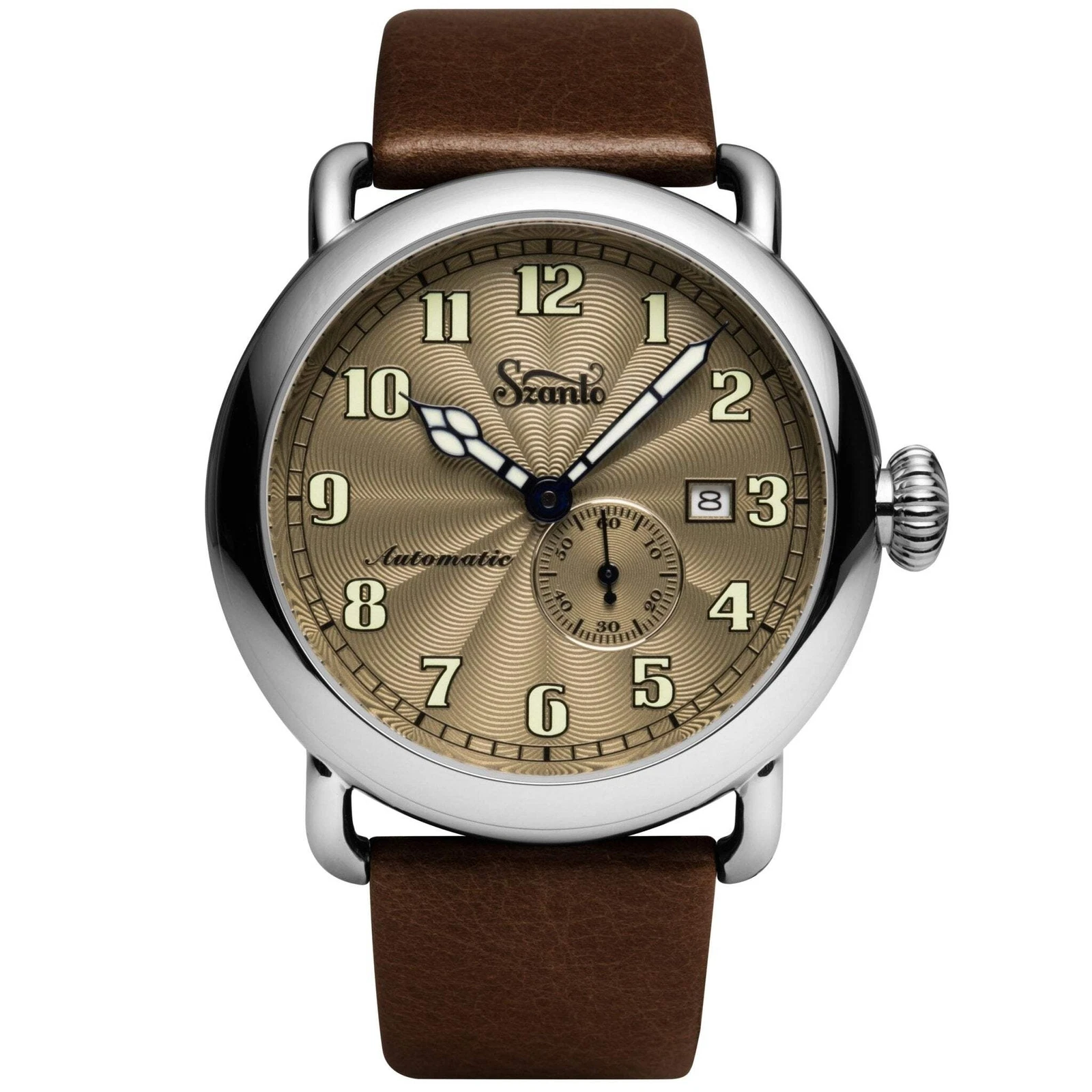 Szanto Officer's Classic Automatic Silver Brown Watch - Brand New