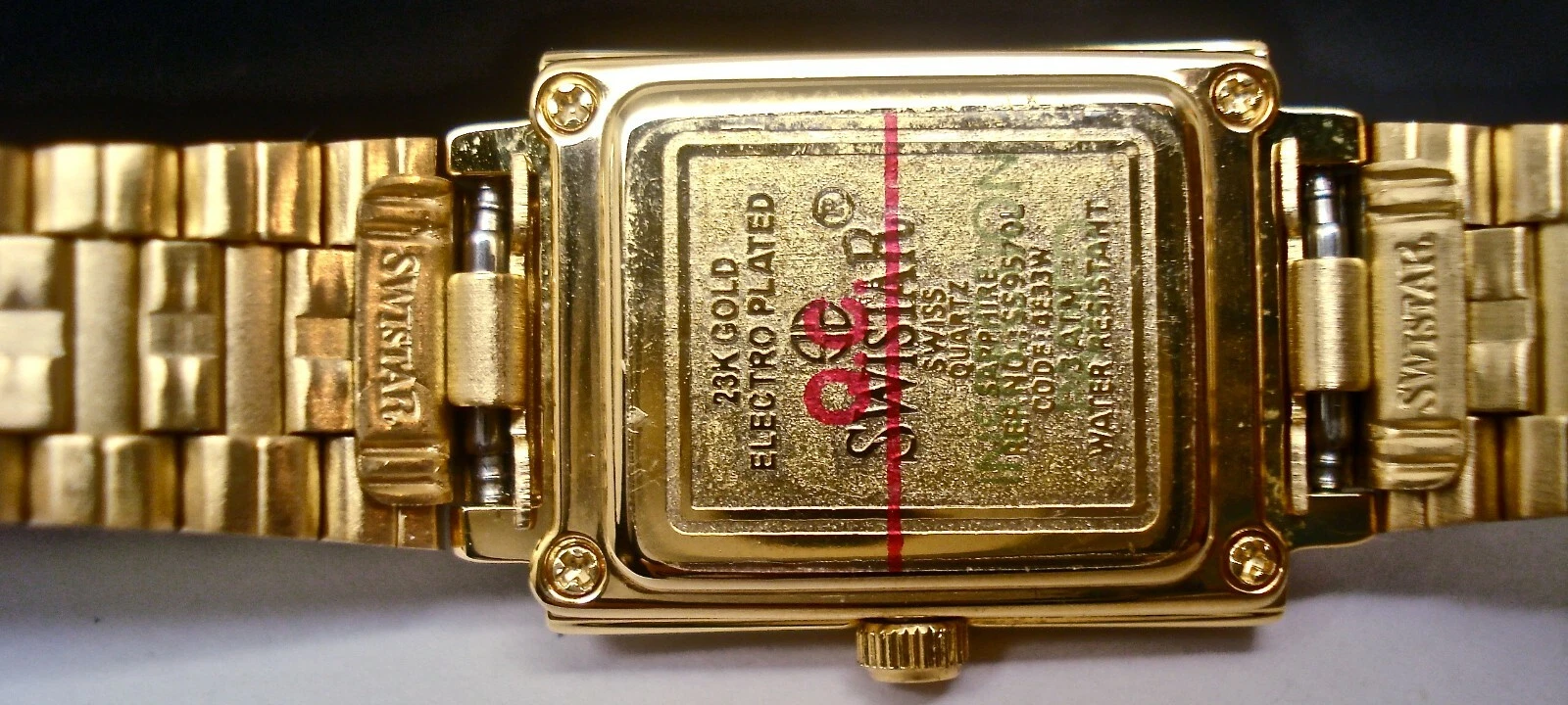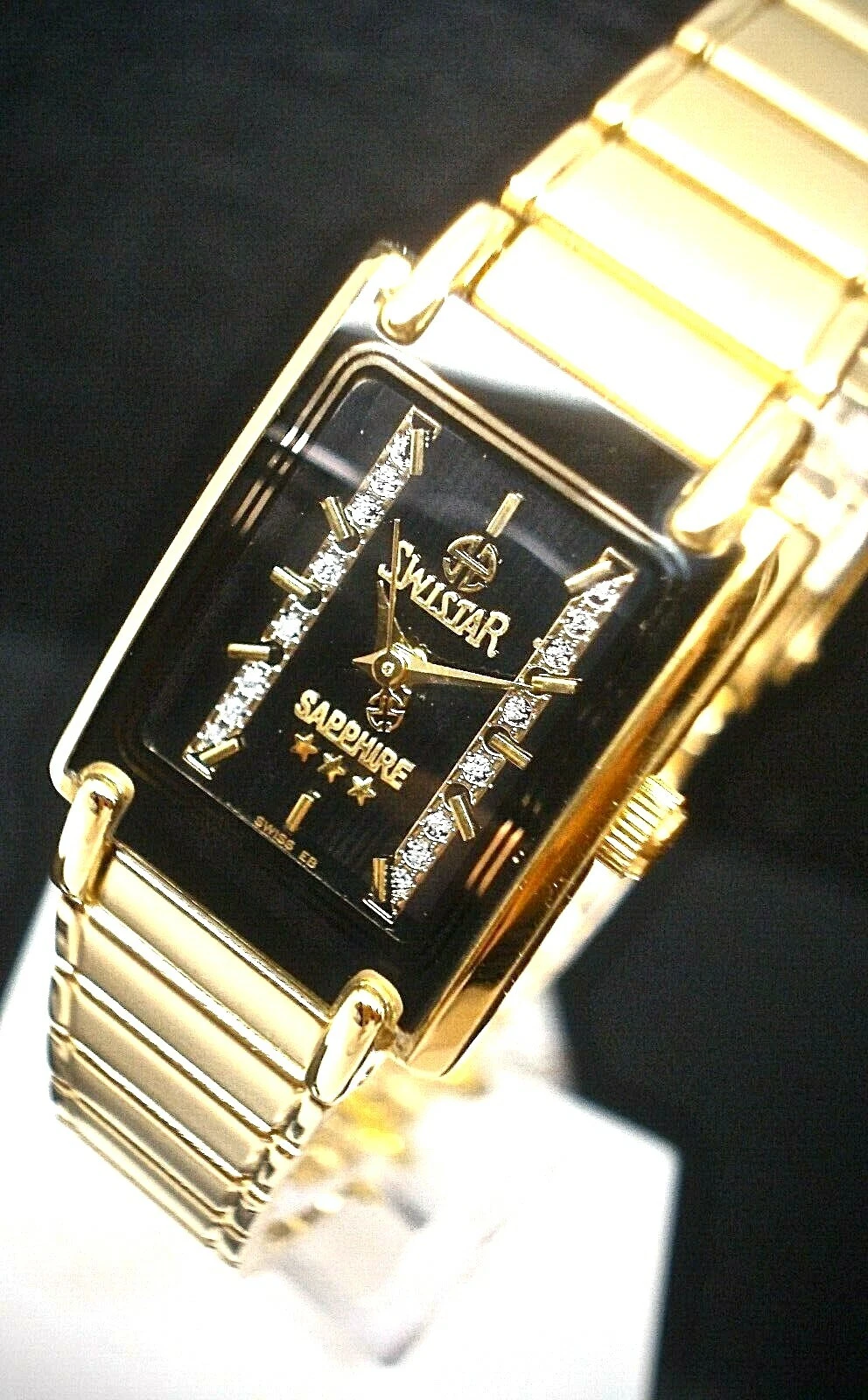 New Swistar 9582L Ladie's Quartz Black Dial and Gold tone Watch .