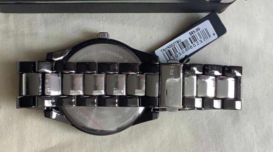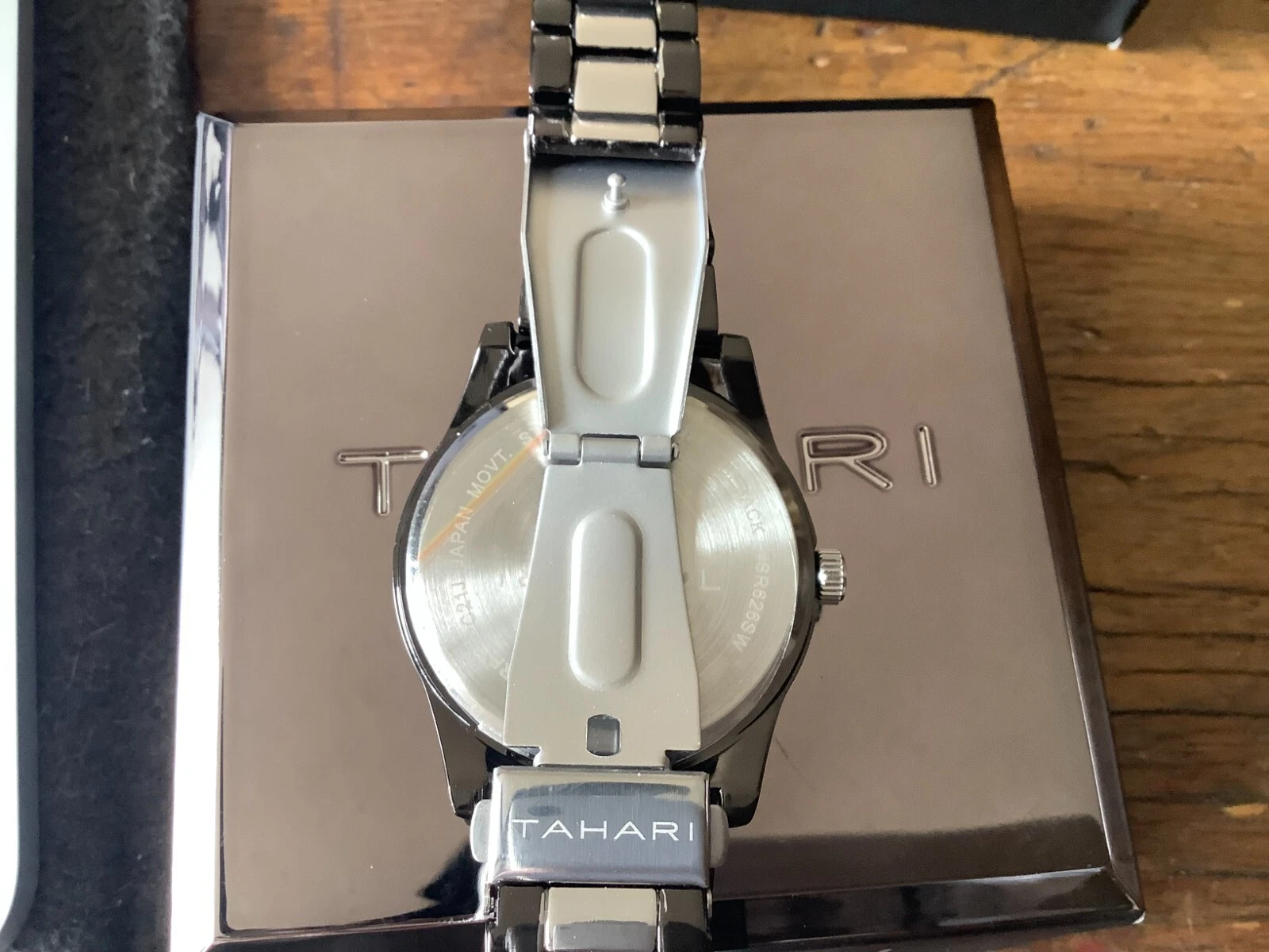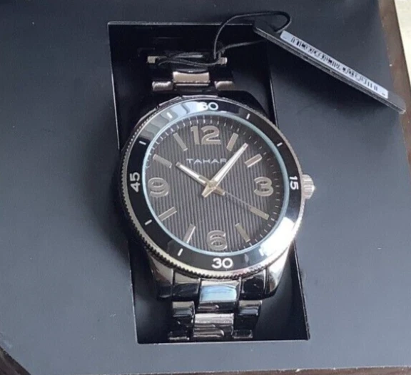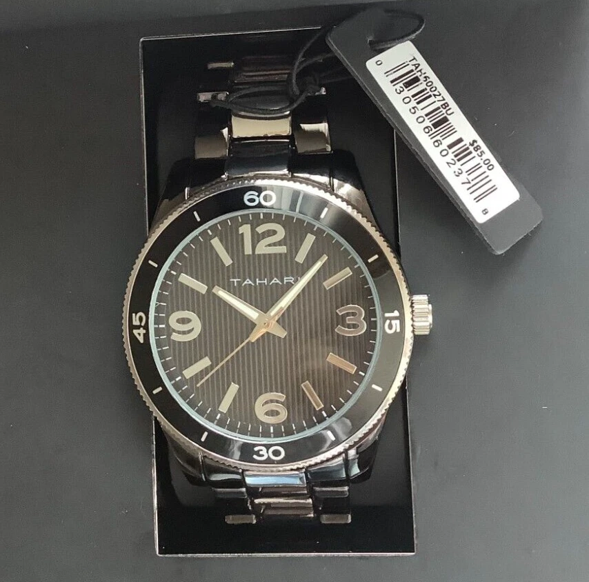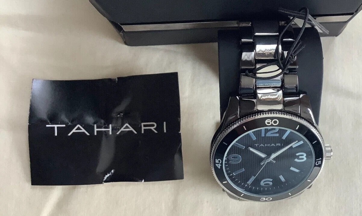Tahari Wristwatch  Black & Silver Stainless Steel Strap w/ folding clip closure