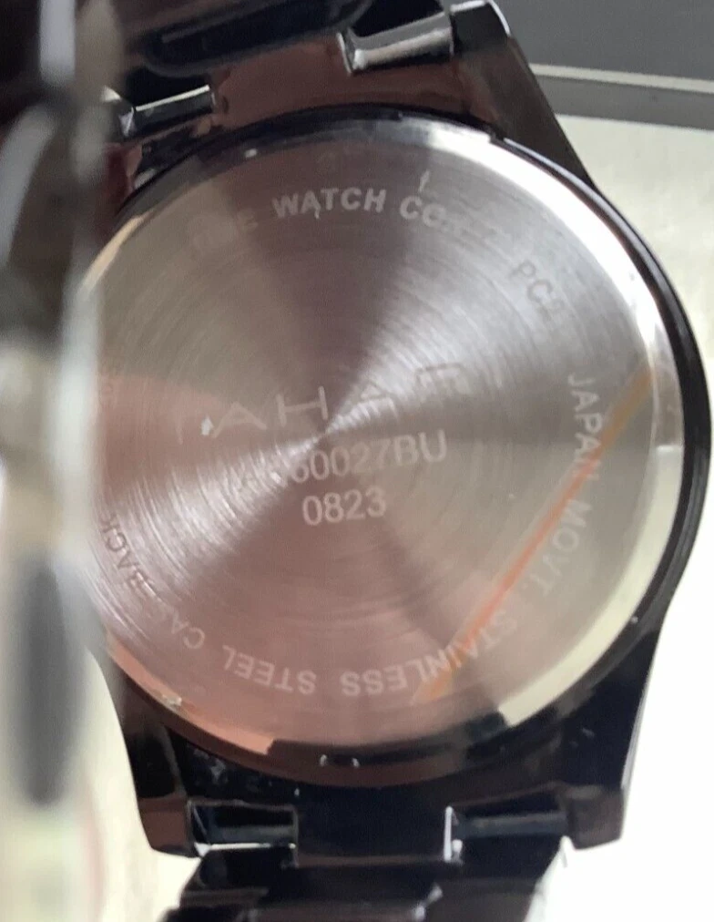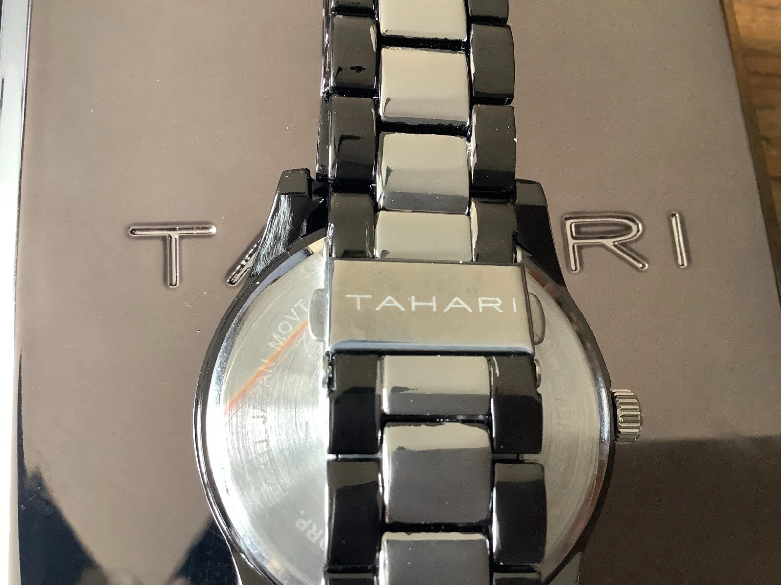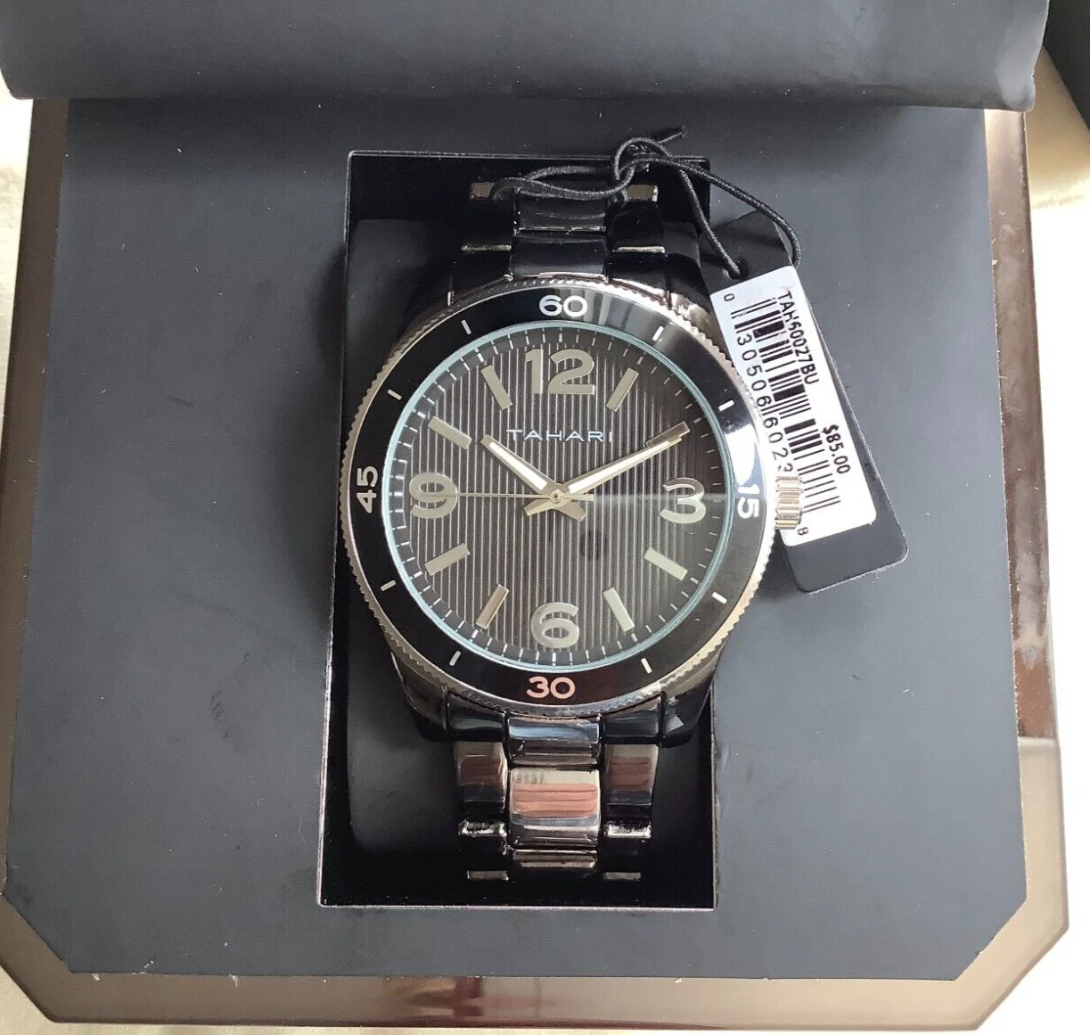 Tahari Wristwatch  Black & Silver Stainless Steel Strap w/ folding clip closure