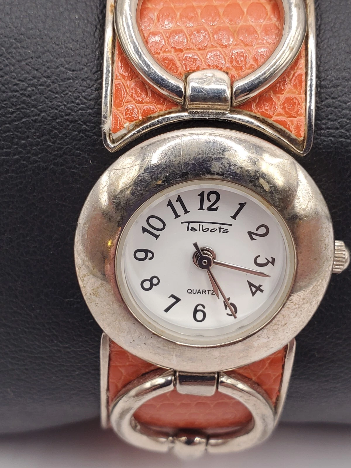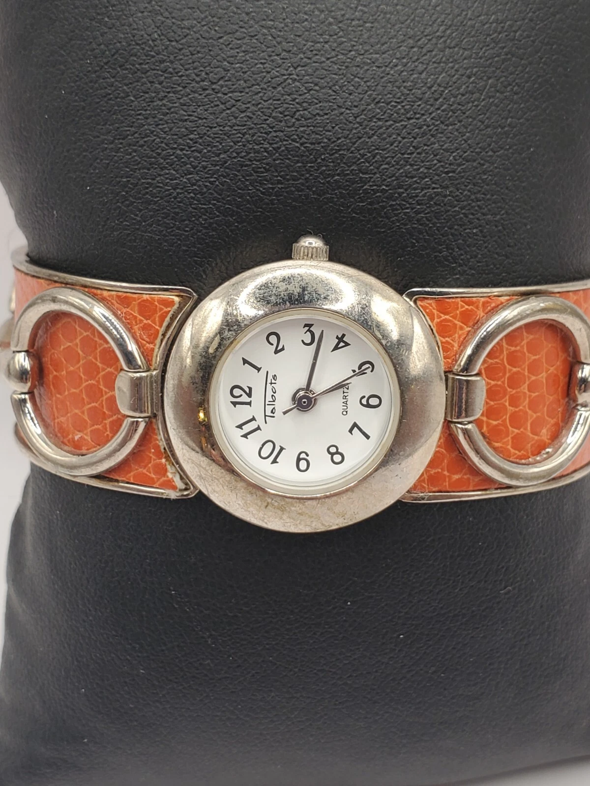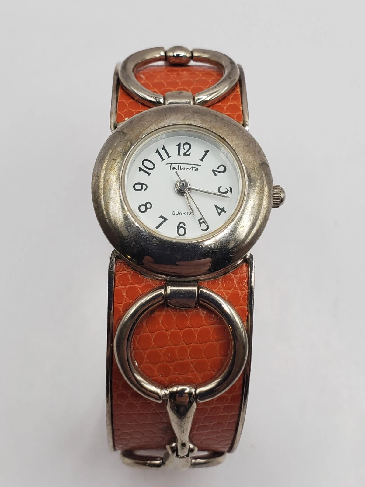 Talbots Ladies Fashion Quartz Watch 22mm Round Silver Tone Cuff Bracelet