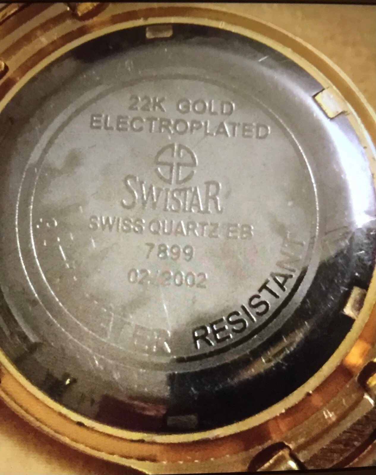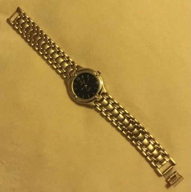 SWISTAR Geneva Swiss 7899 Black Dial Ladies 22K Gold Electroplated Wrist Watch
