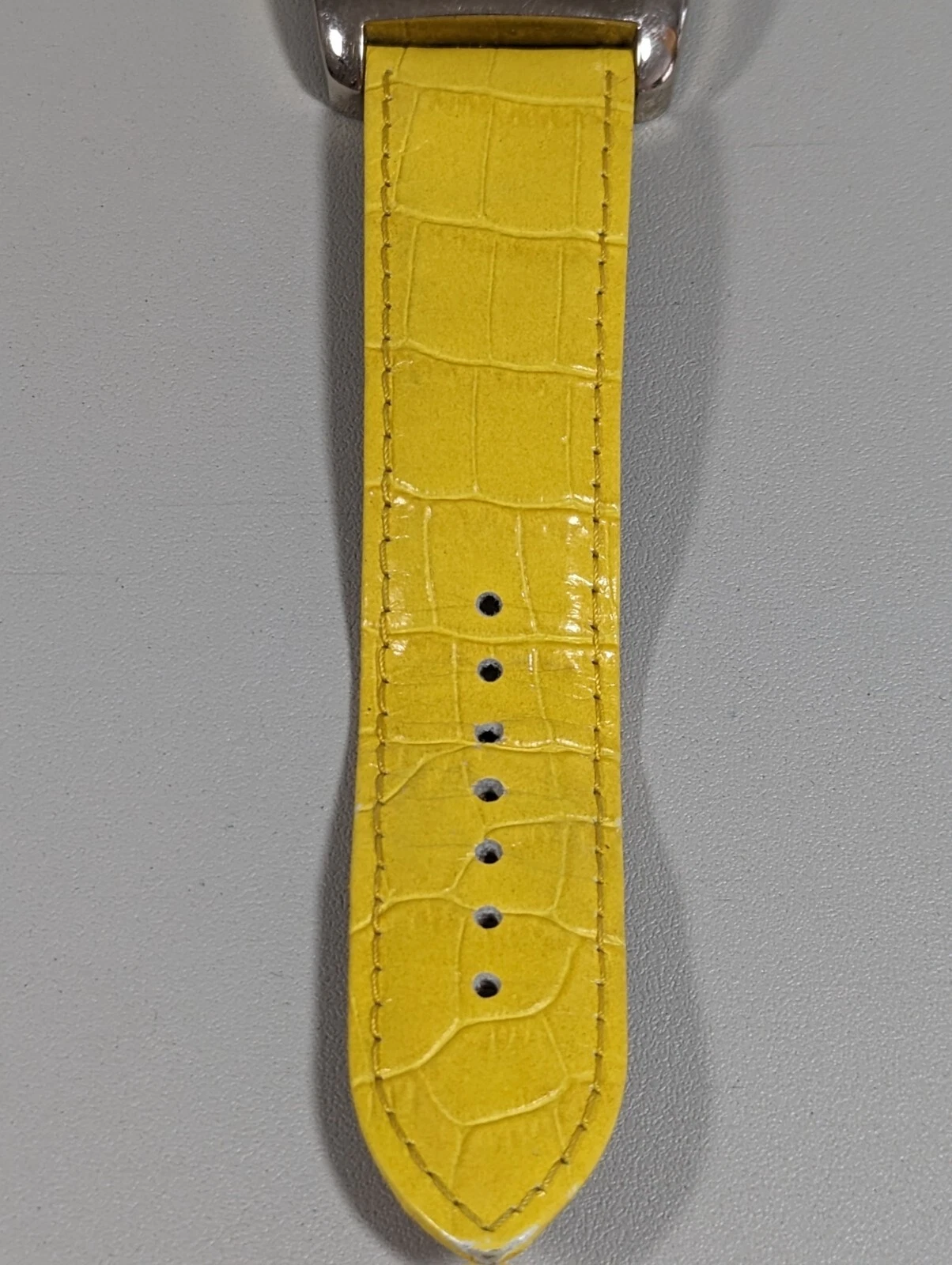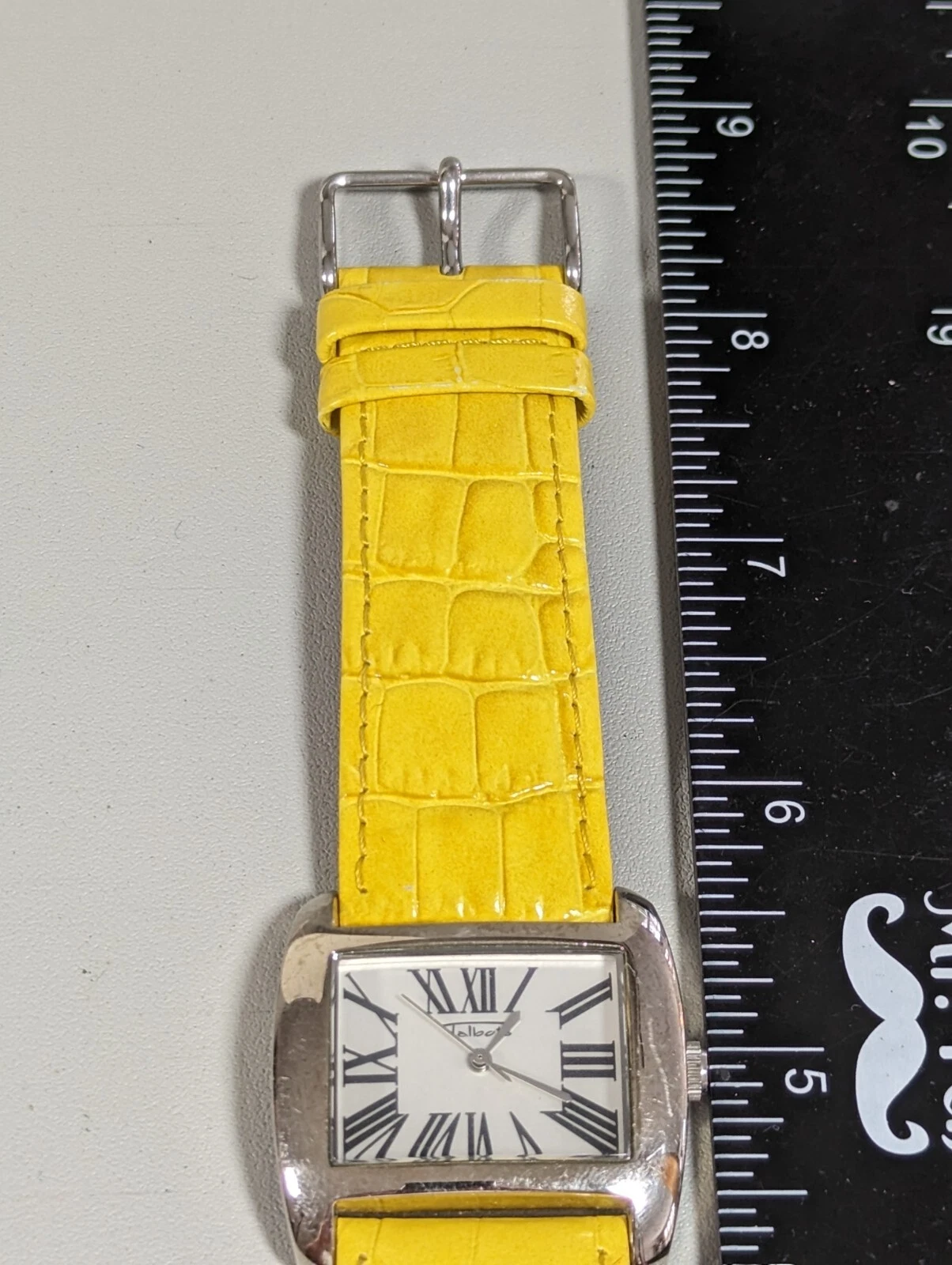 Talbots Silver Tone Dial Rectangle Case Yellow Leather Band Watch