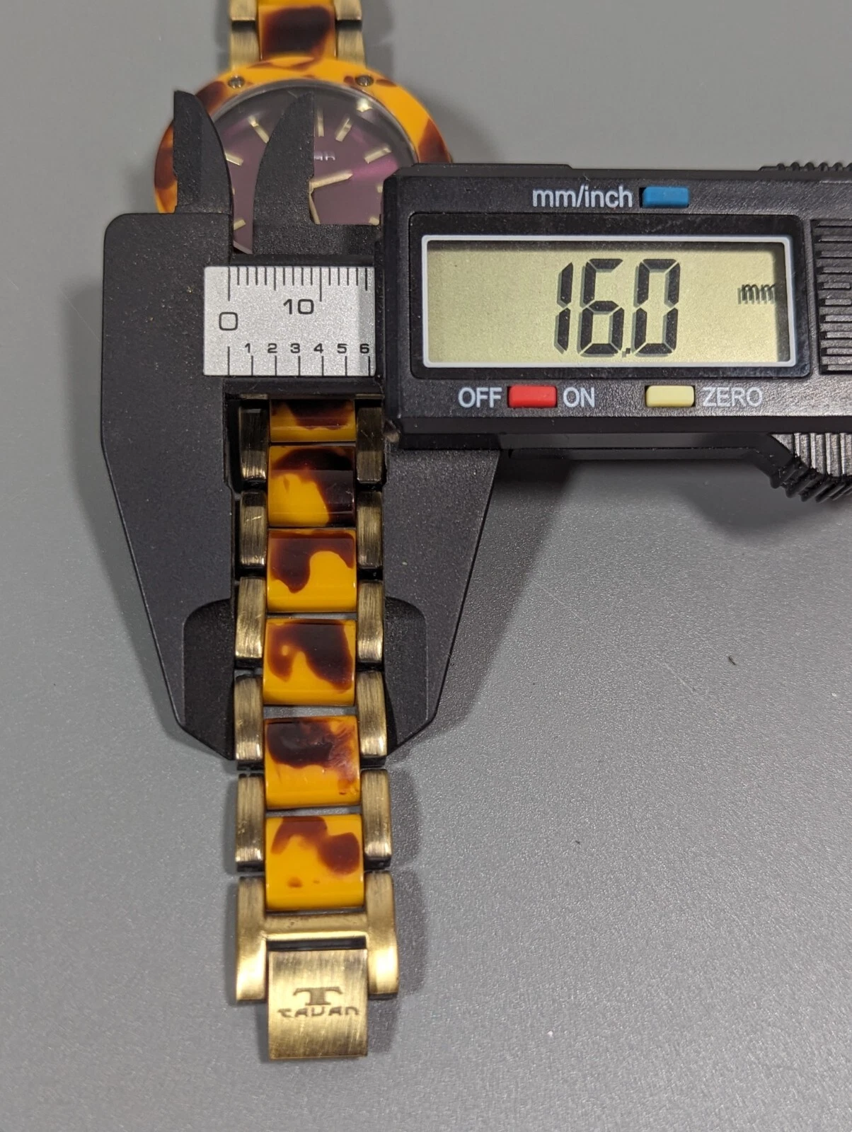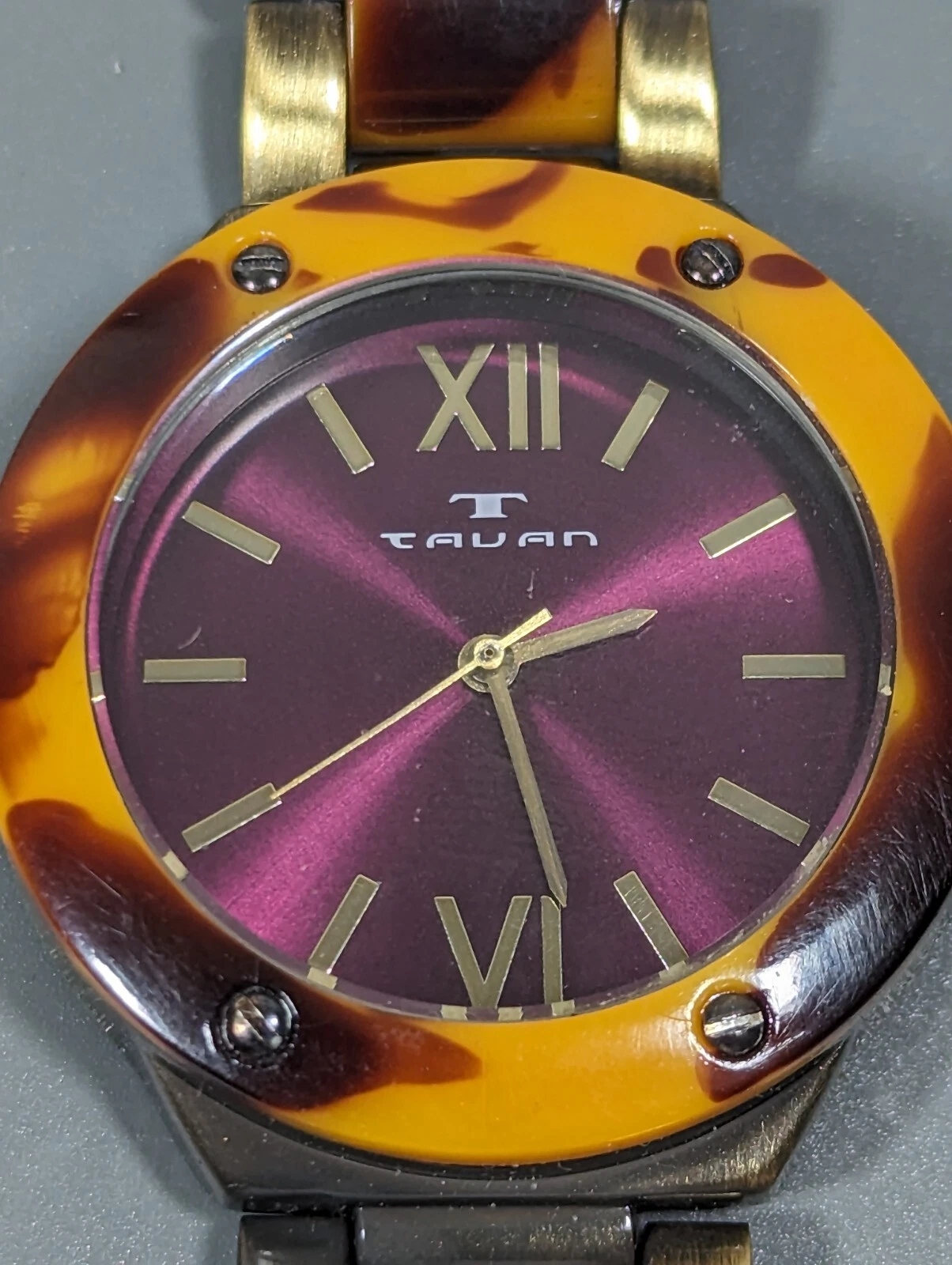 Tavan Purple Dial Brown Faux Tortoise Shell Link Bracelet Band Watch