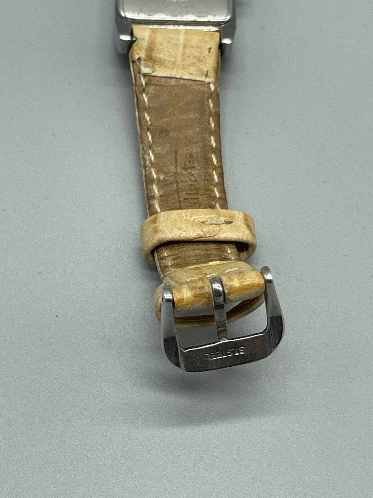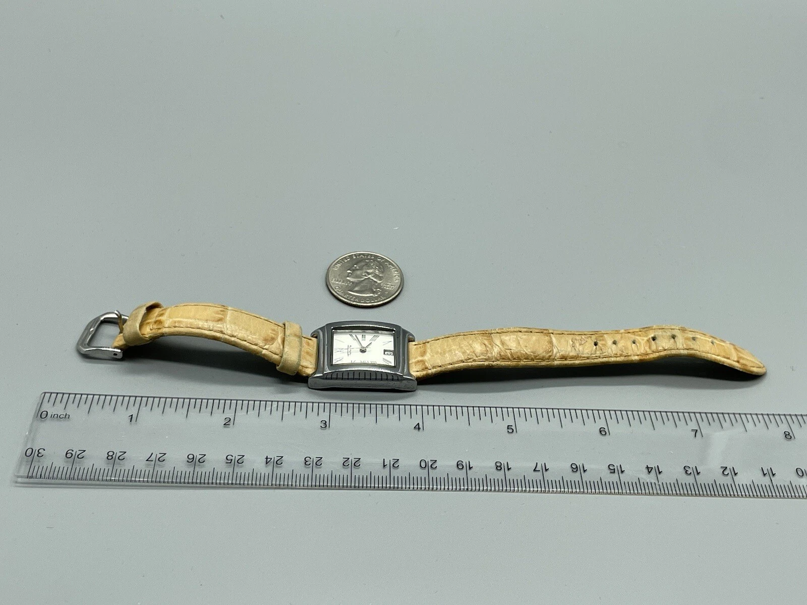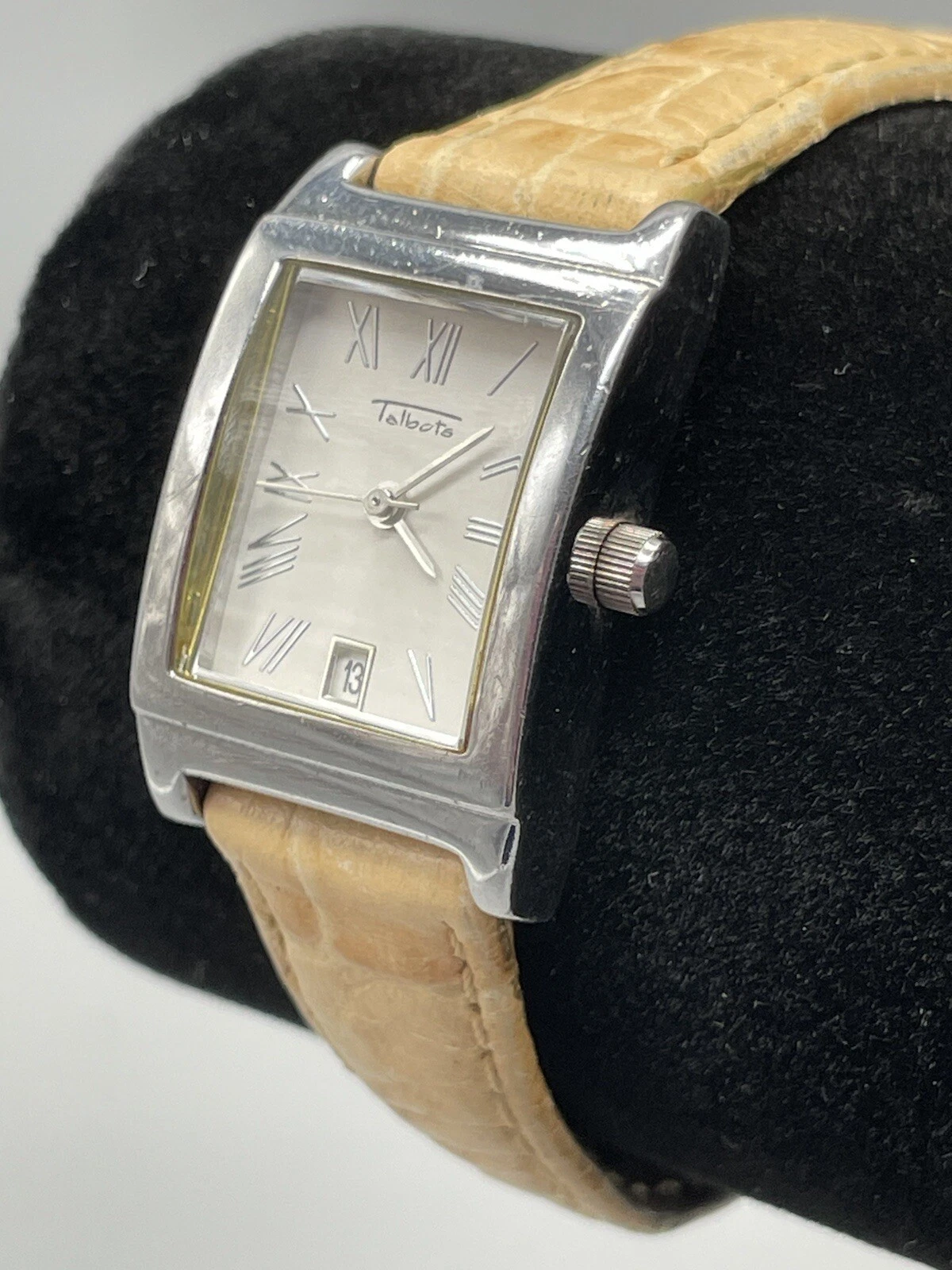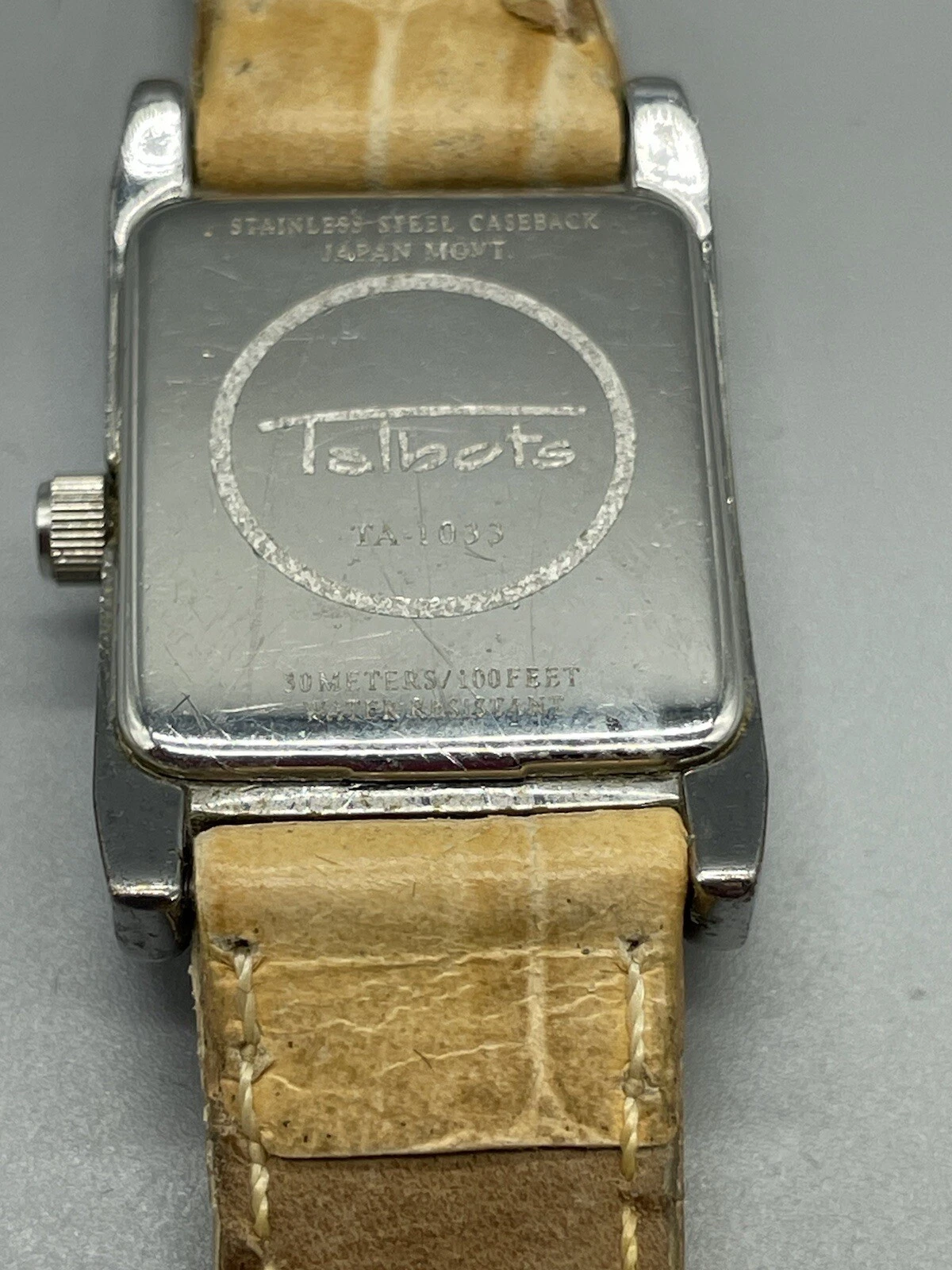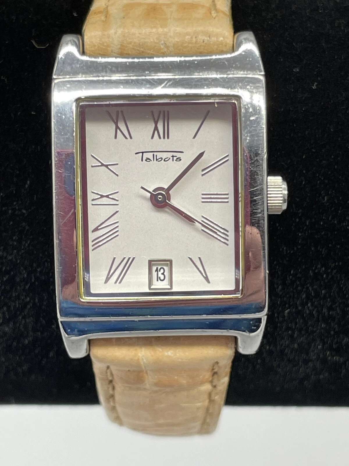 Talbots Tank Watch Neutral Tan Leather Band New Battery Works Great