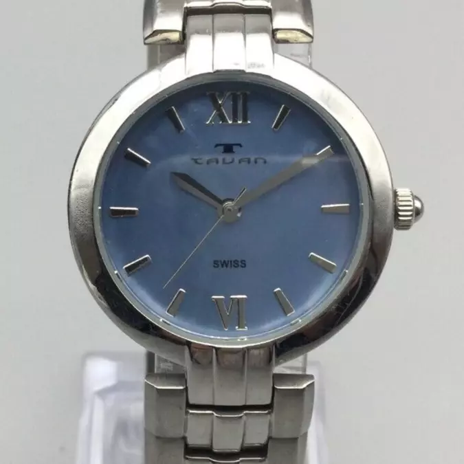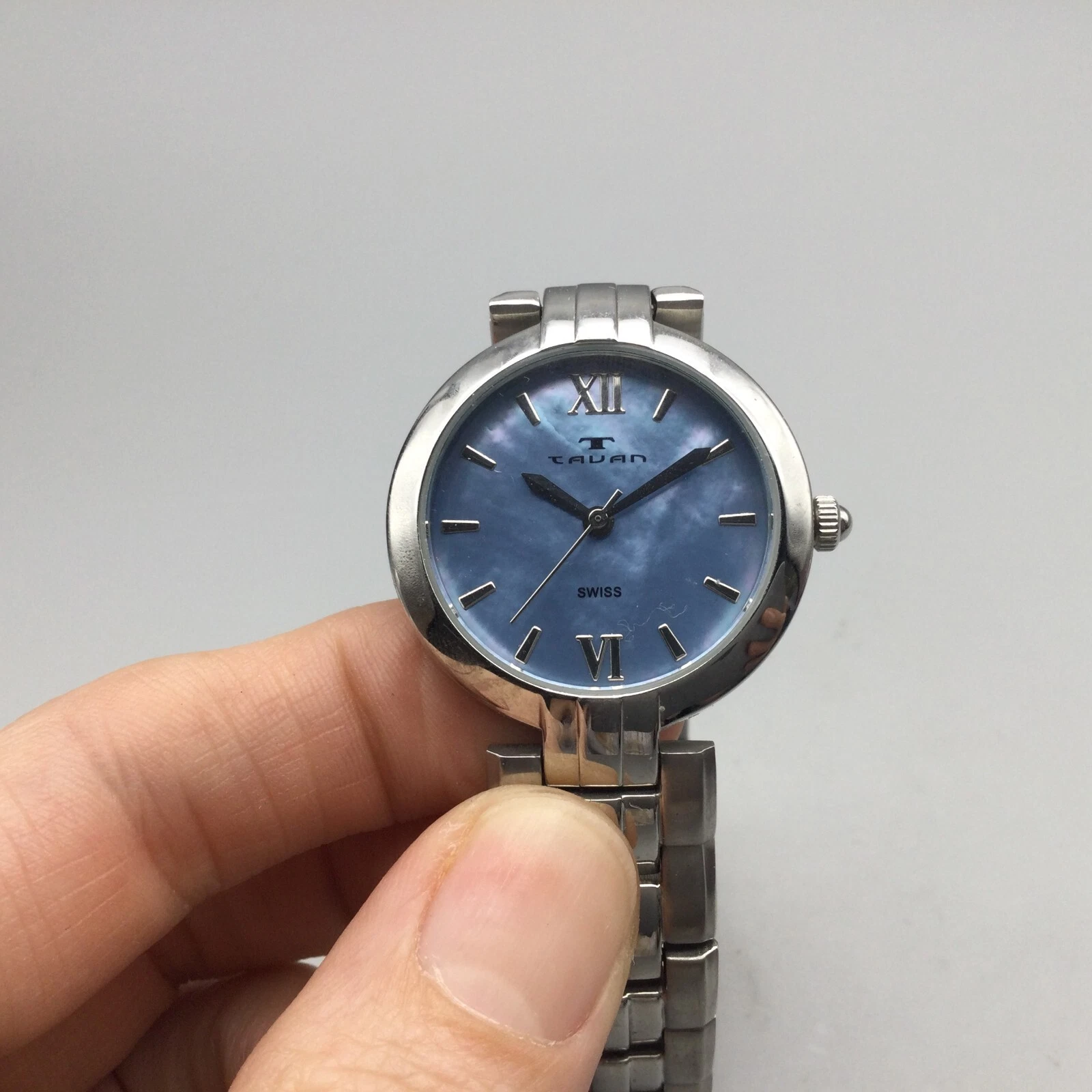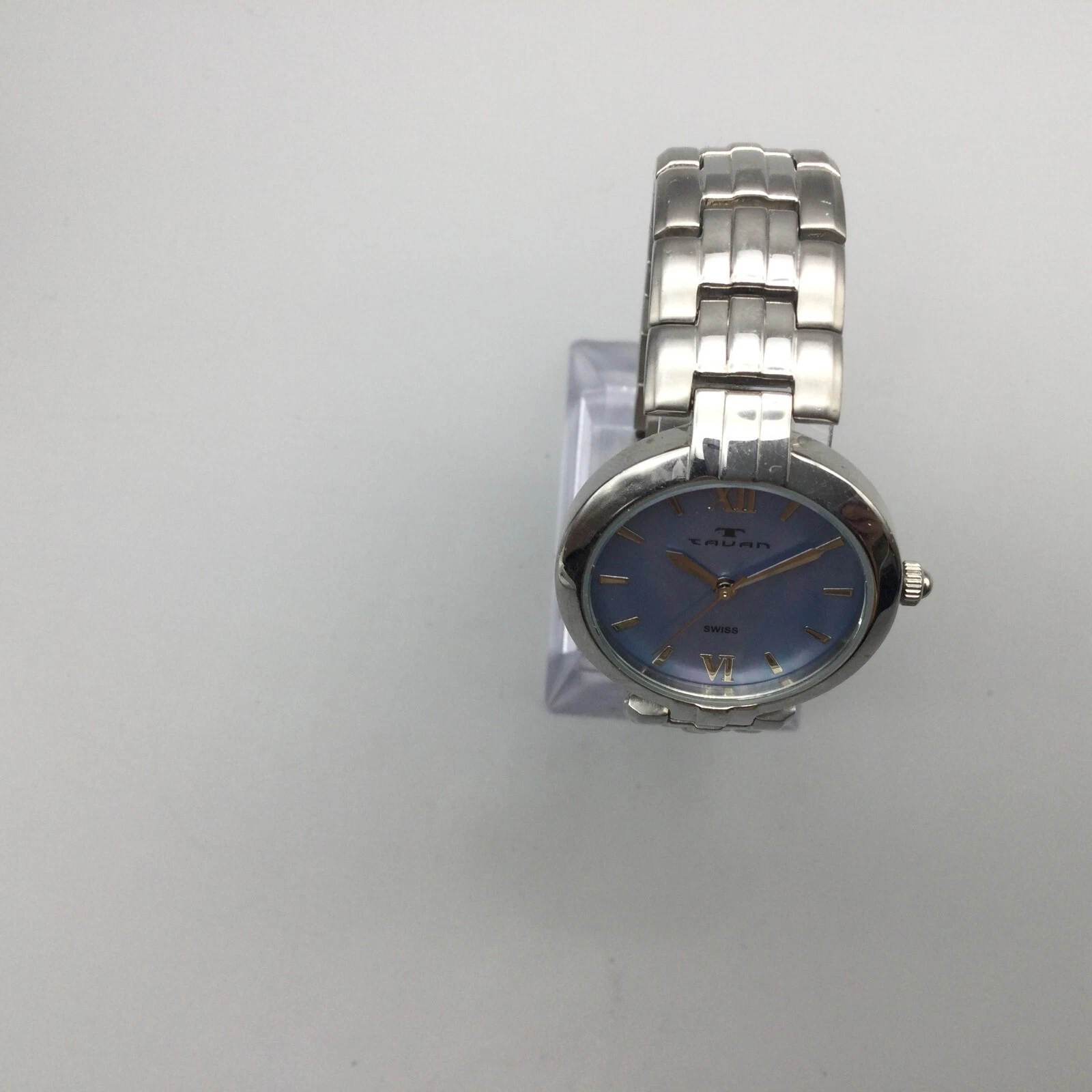 Tavan Watch Women 30mm Silver Tone Blue MOP Dial Stainless New Battery 7.25"