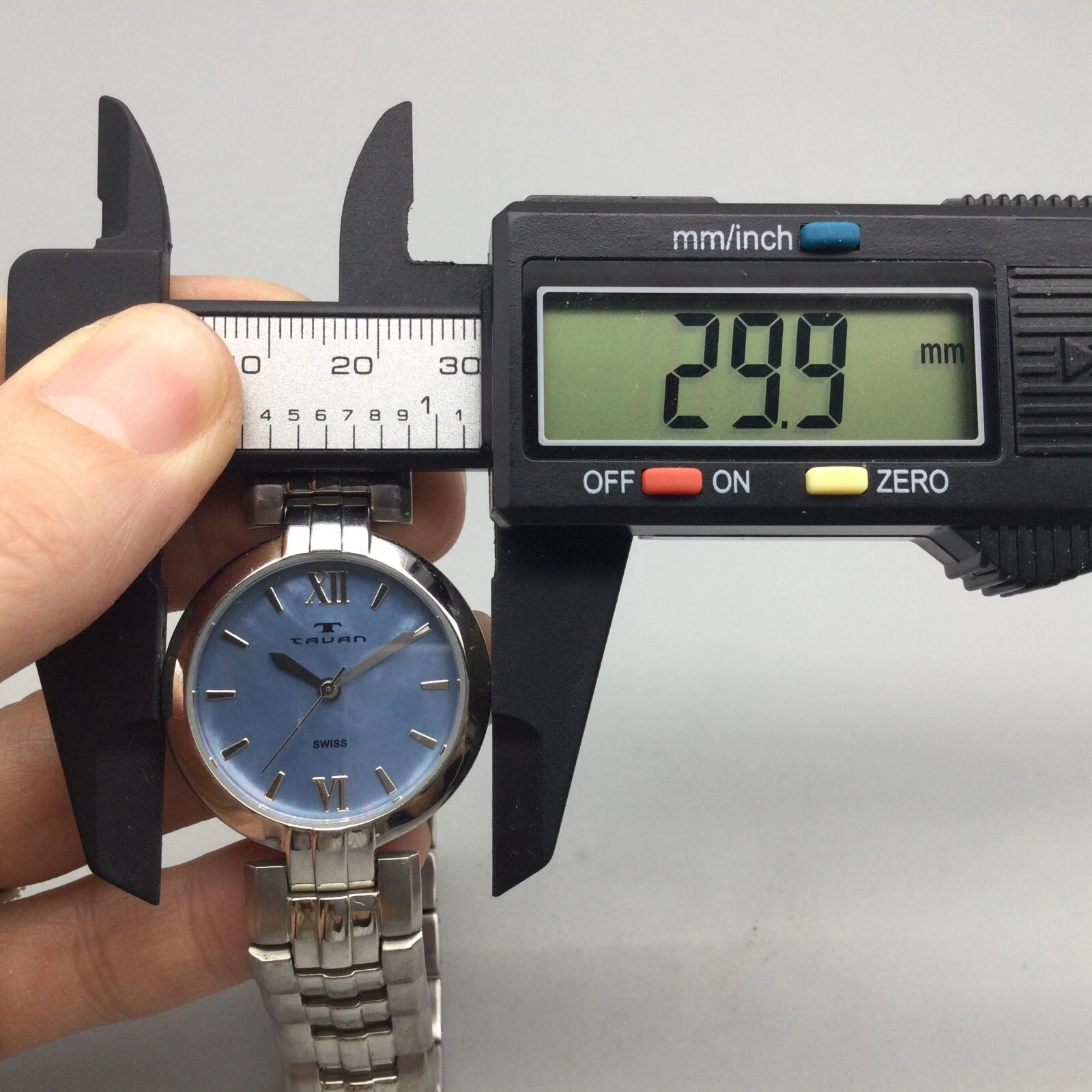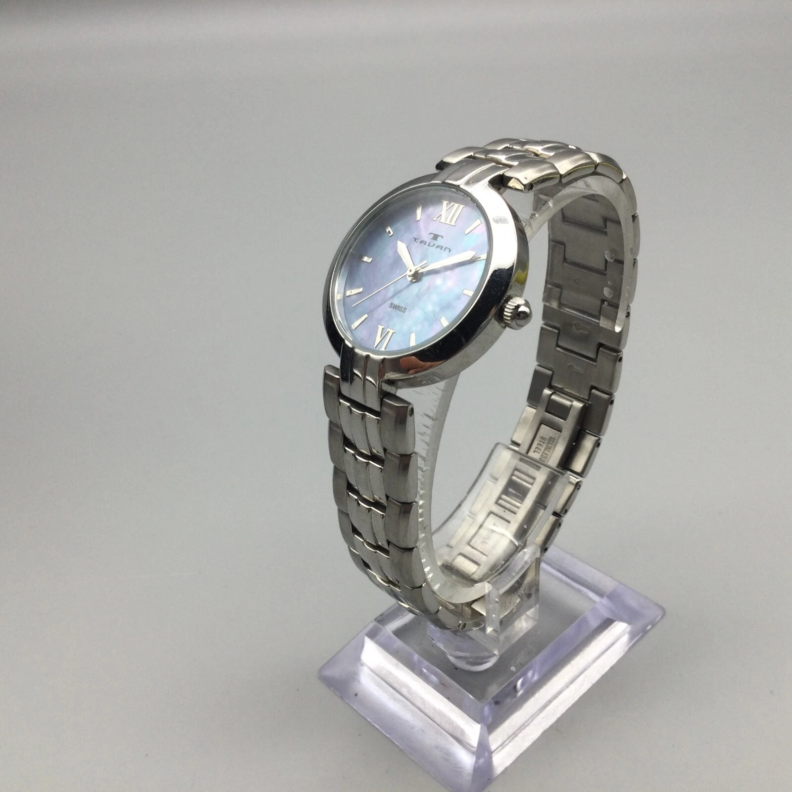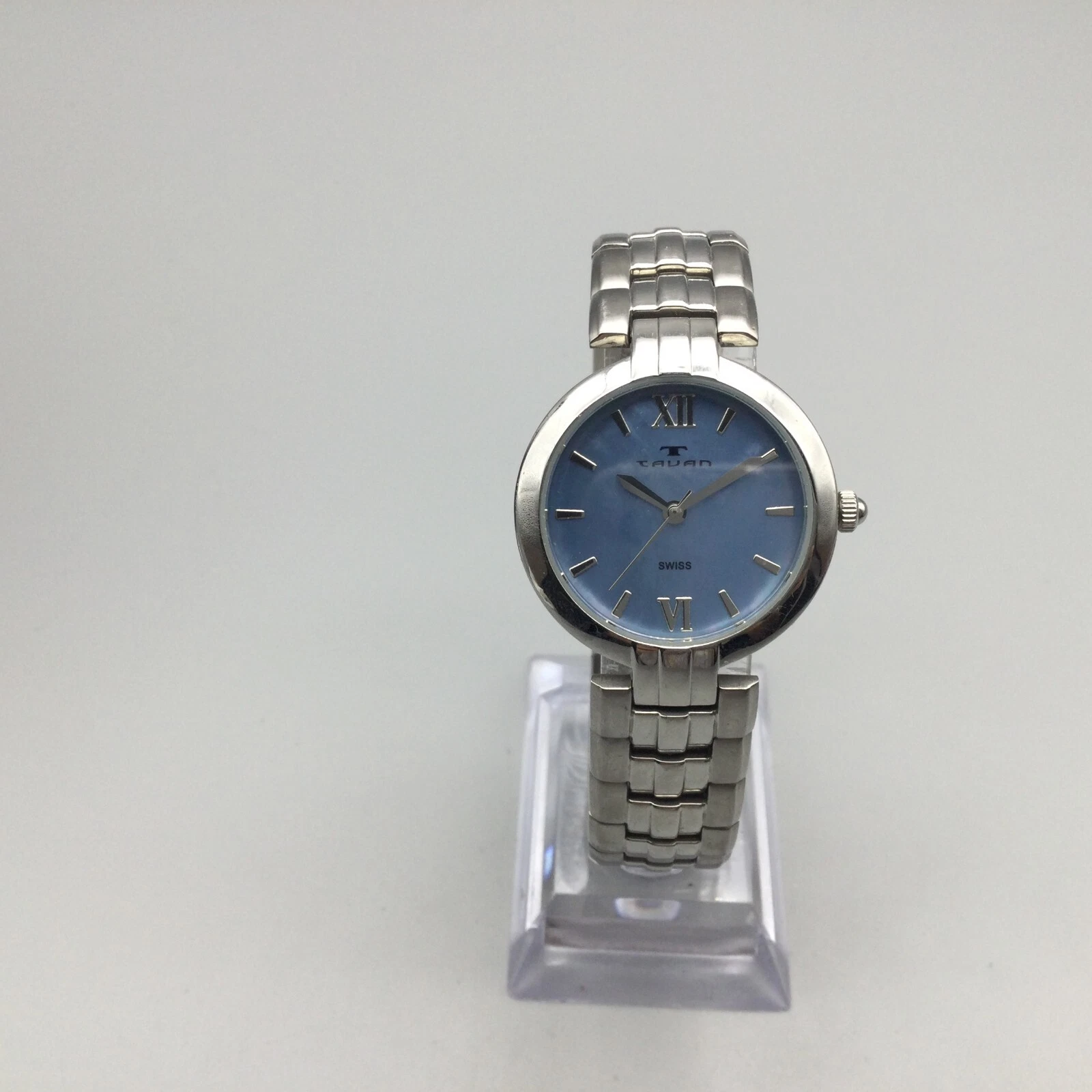 Tavan Watch Women 30mm Silver Tone Blue MOP Dial Stainless New Battery 7.25"