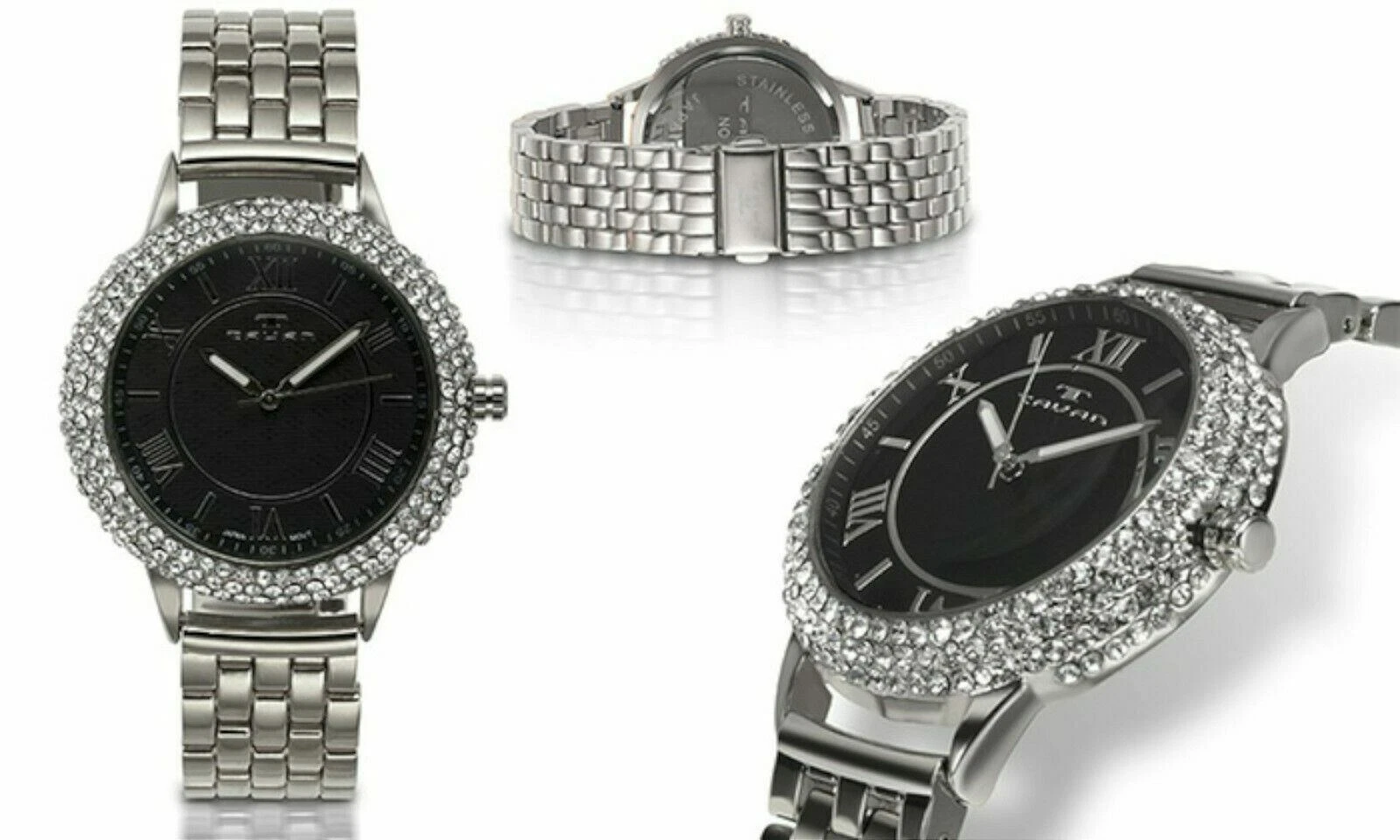 NEW Tavan 1436 Crichett Diamond Pave Bezel Roman Numeral Black Dial Silver Watch