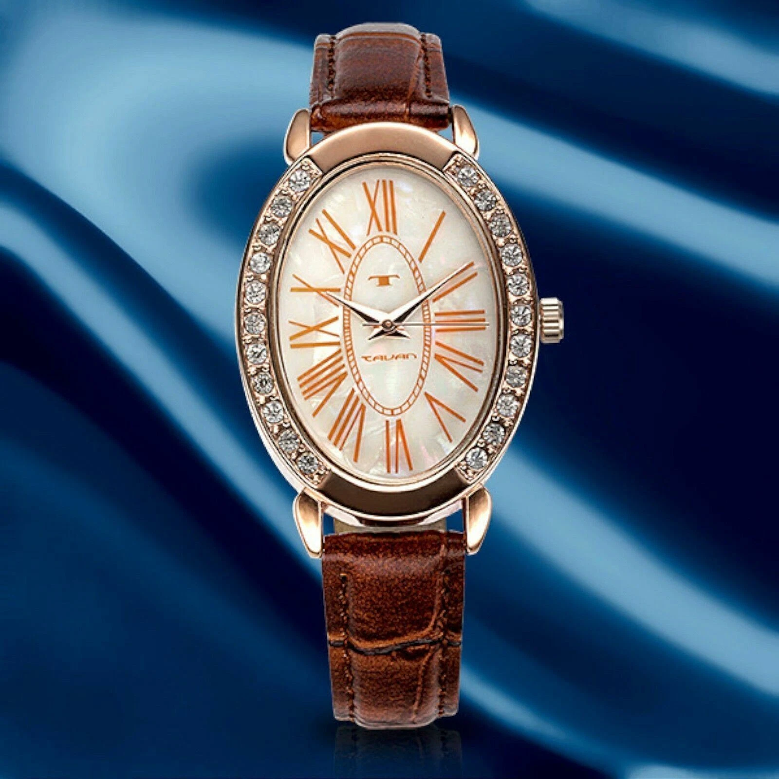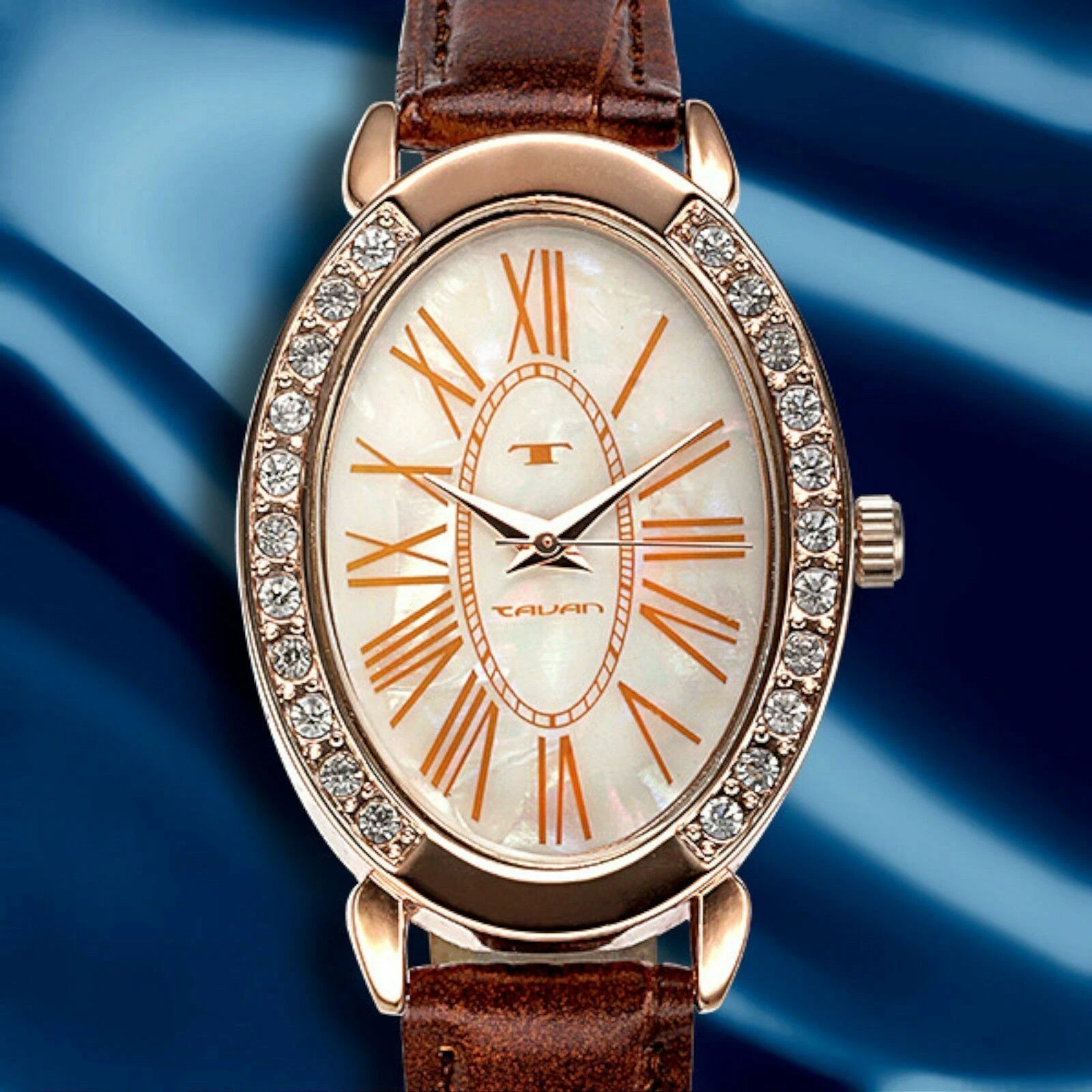 NEW Tavan Jeanne 1623L-BRN Womens Brown Watch Mother Of Pearl Dial W/ Crystals
