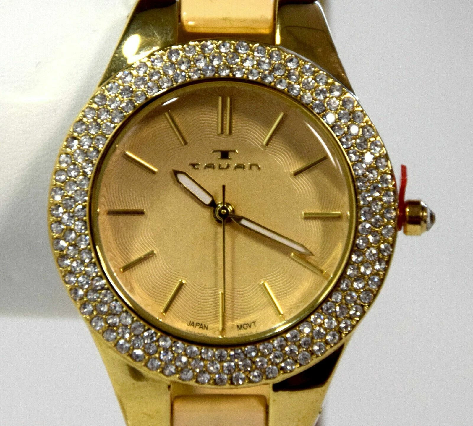 NEW Tavan 1432 Womens Alvilda Crystal Bezel Gold Guilloche Dial Cream/Gold Watch
