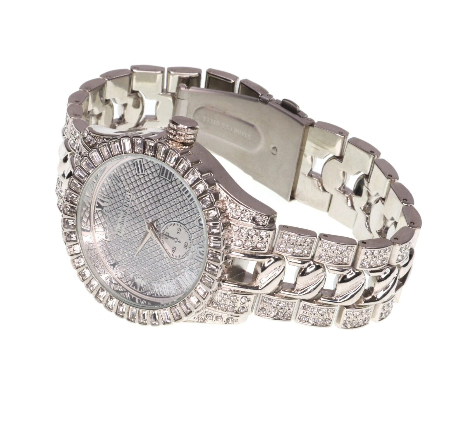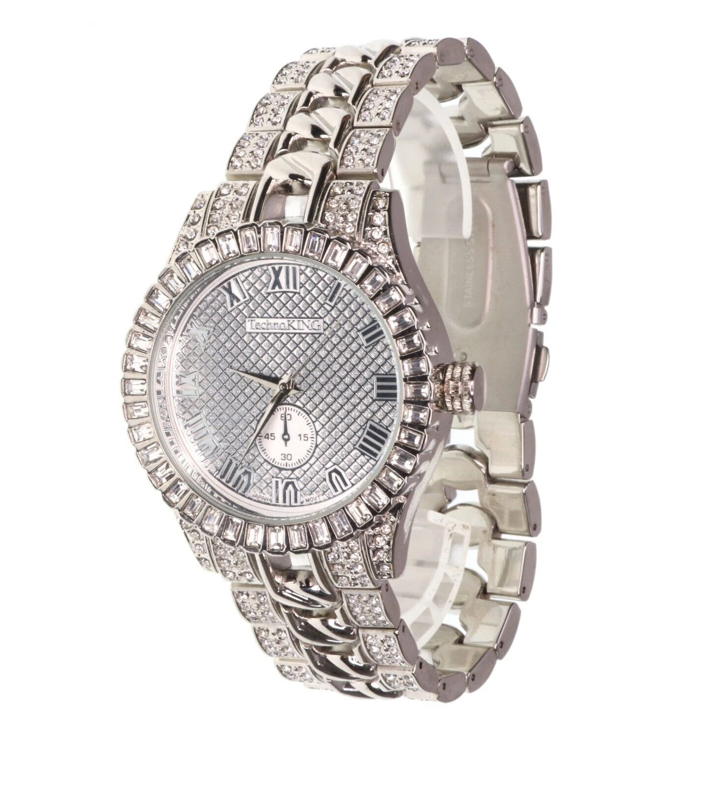 Men's Techno King Silver Finish Metal Band Fashion Hip Hop Watch