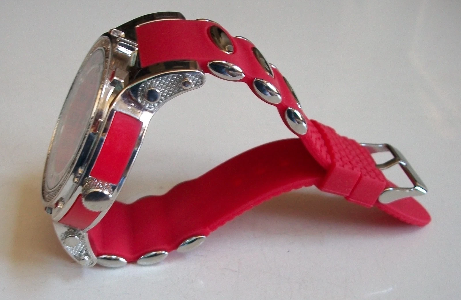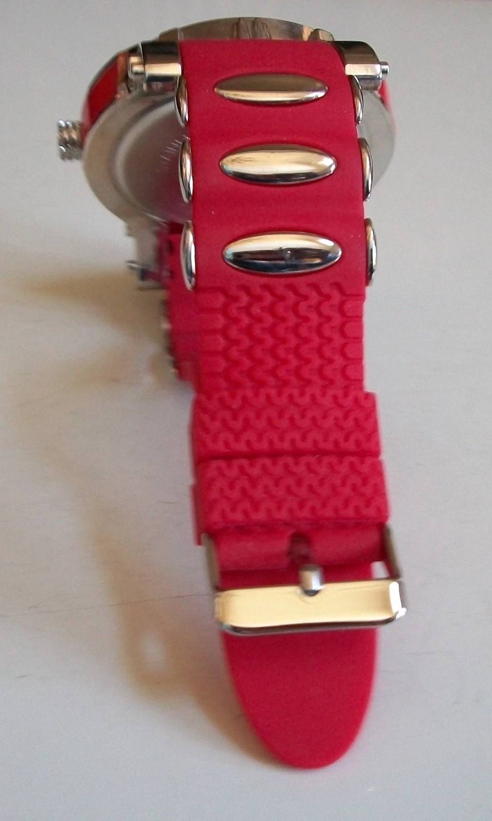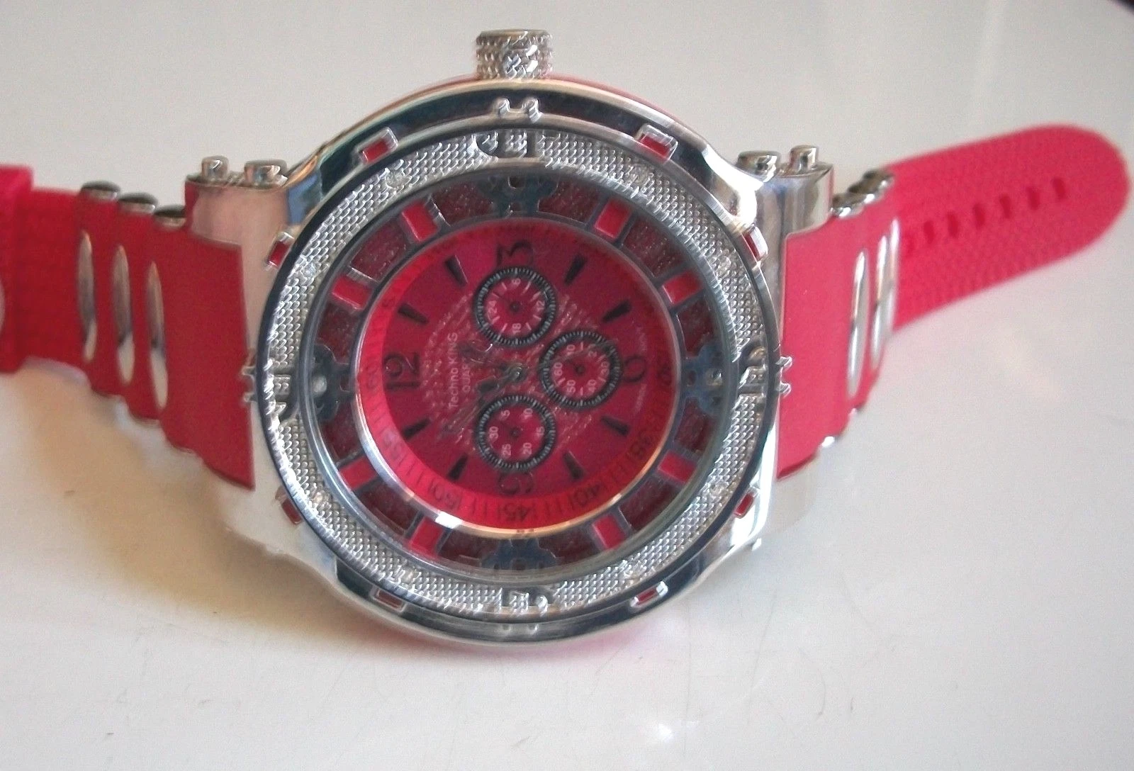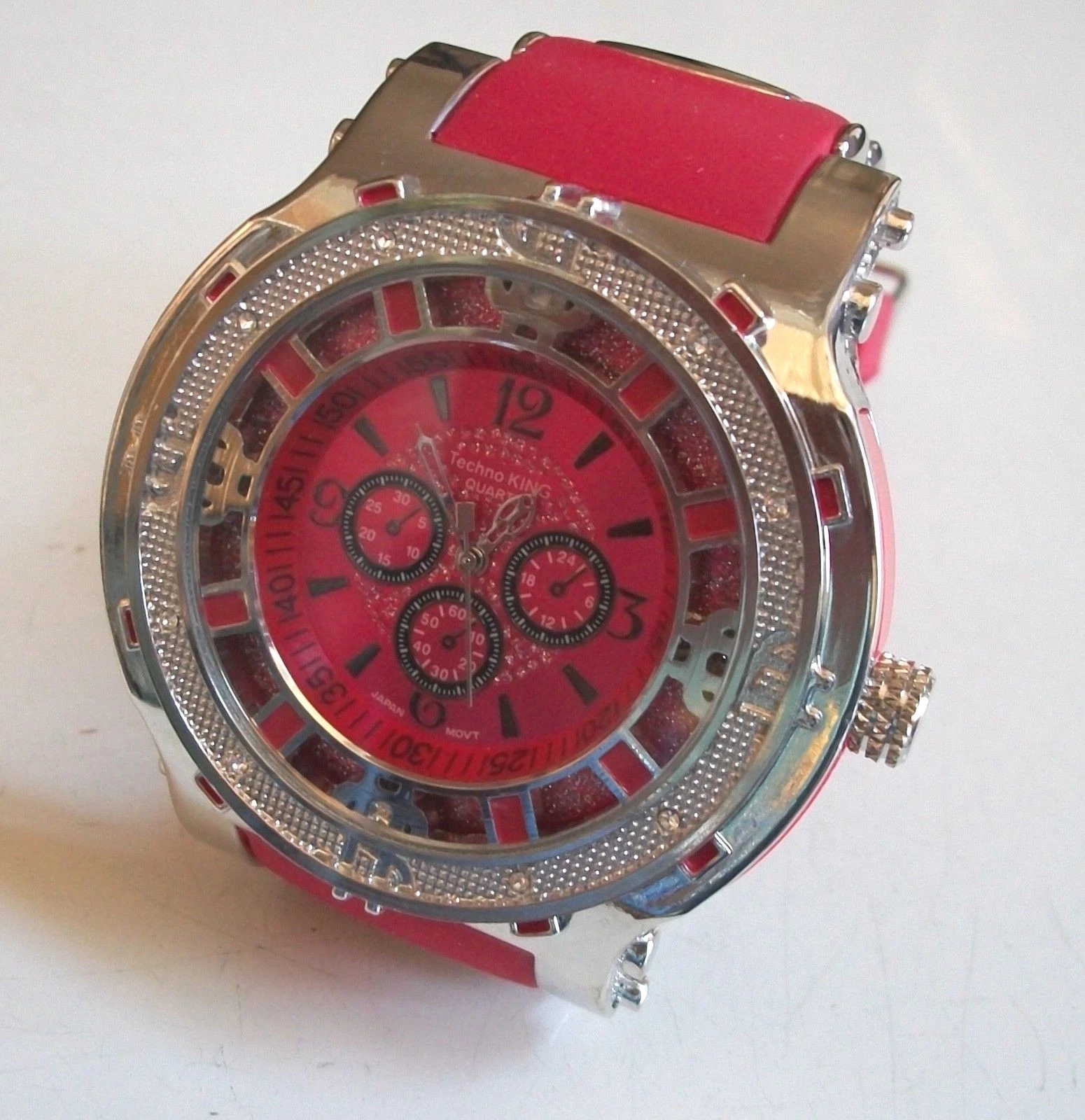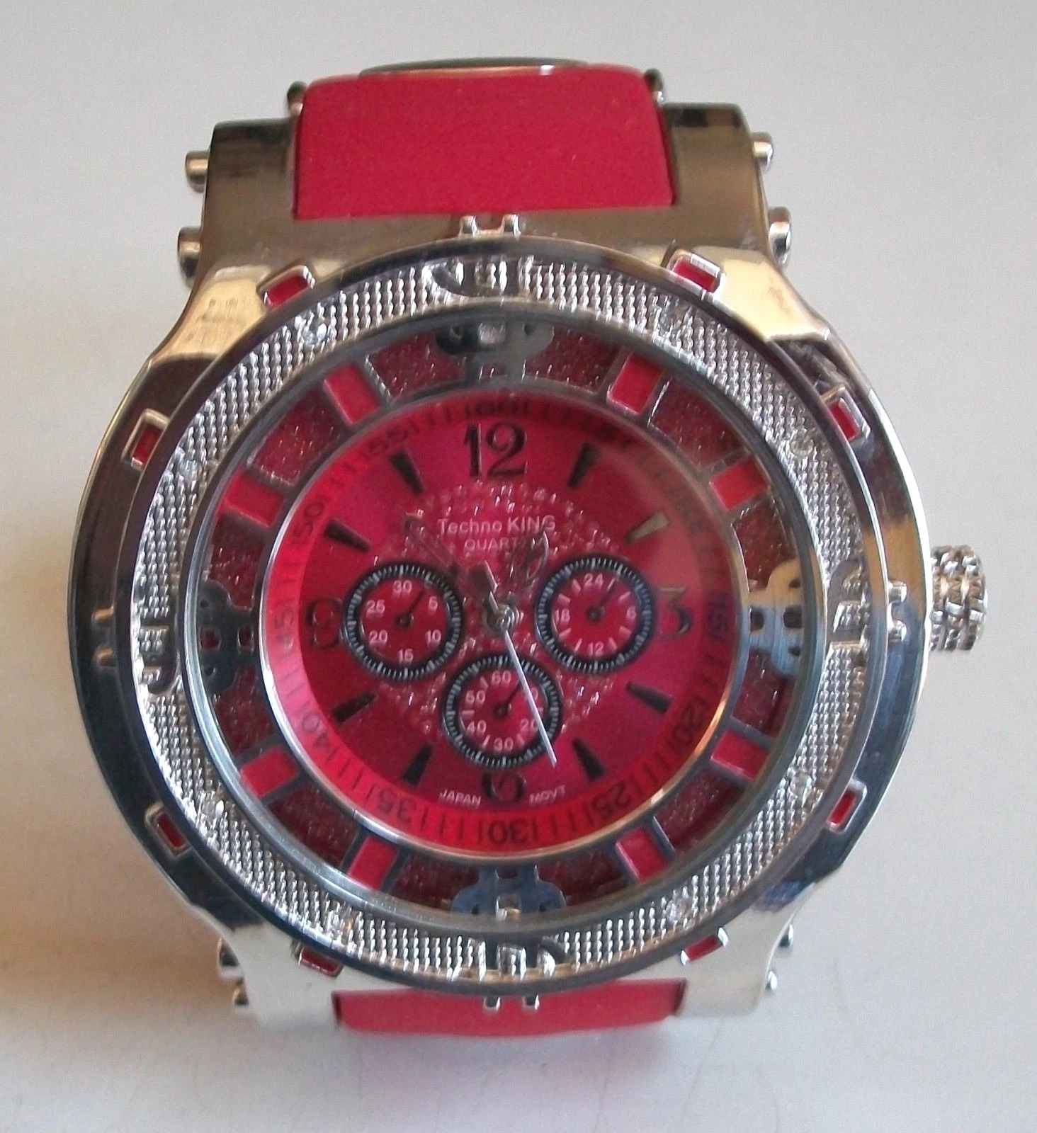 MEN'S TECHNO KING RED & SILVER SILICONE BAND DRESSY FASHION HIP HOP WATCH