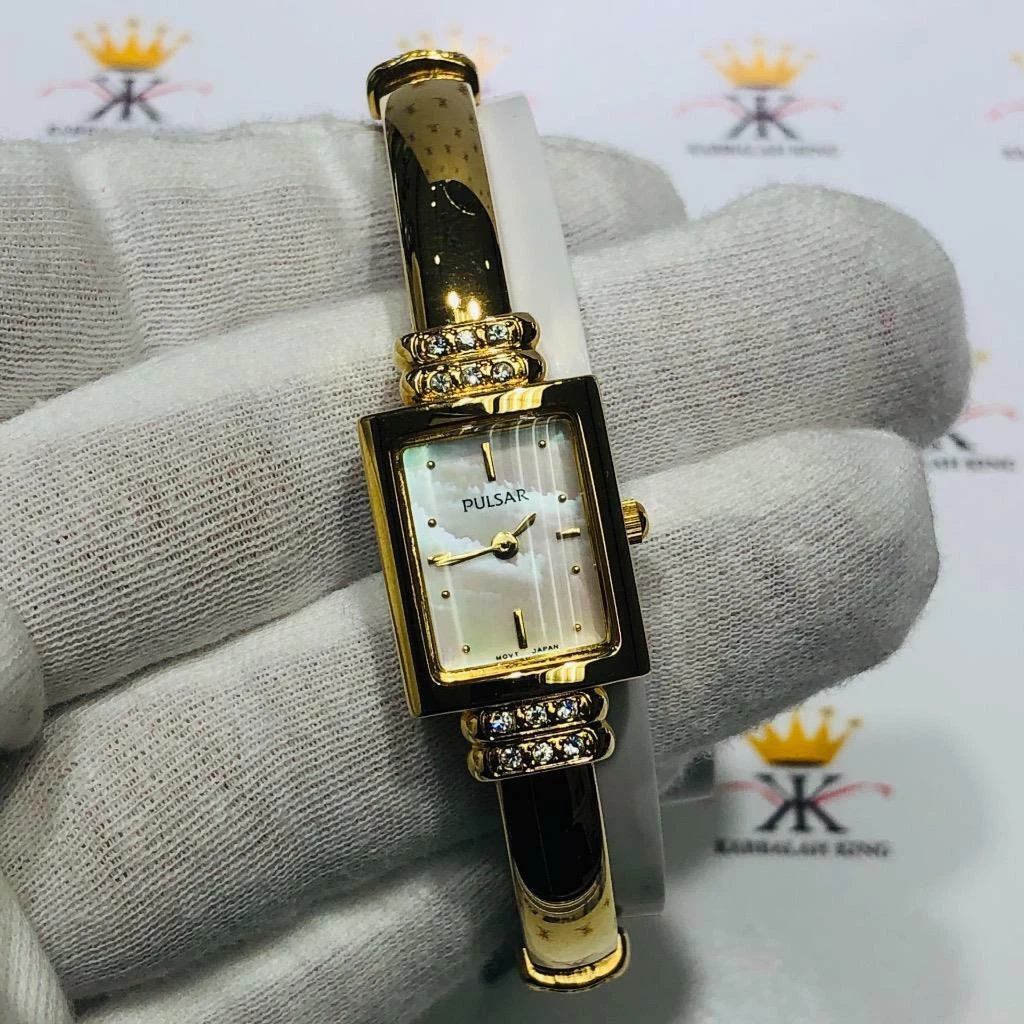 Pulsar Gold Tone Mother of Pearl Rectangular Dial Quartz Women's Watch Gift
