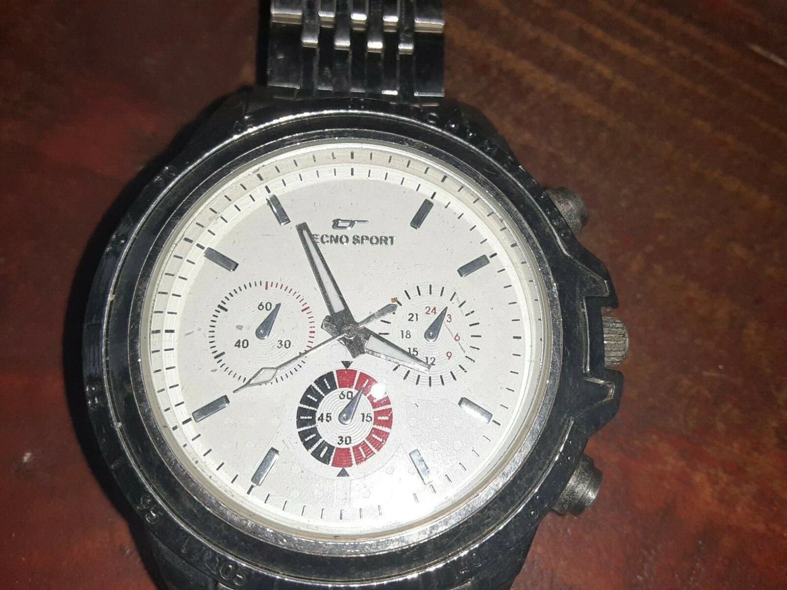Techno Sport White Face with Silver Metal Band Pre owned Good condition