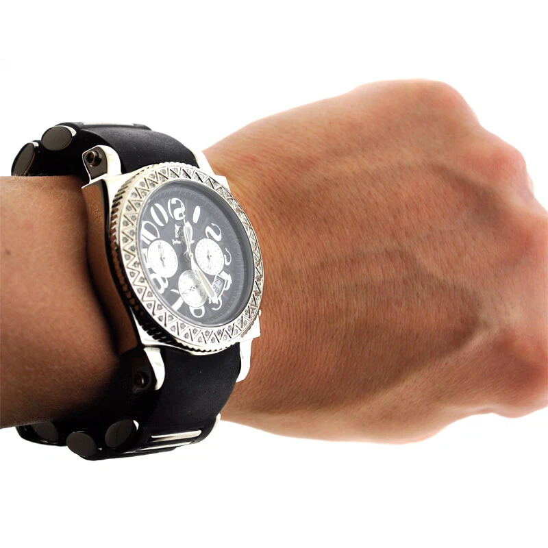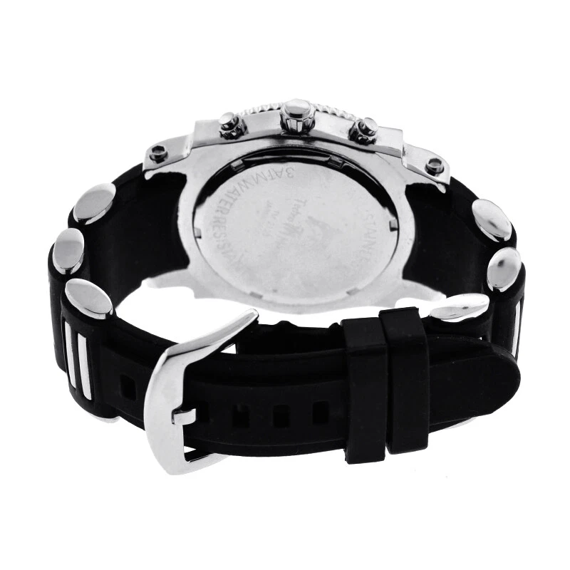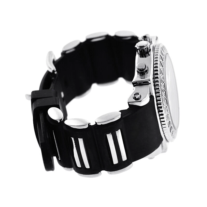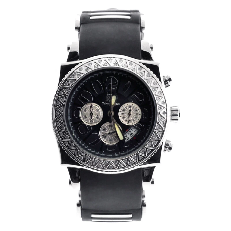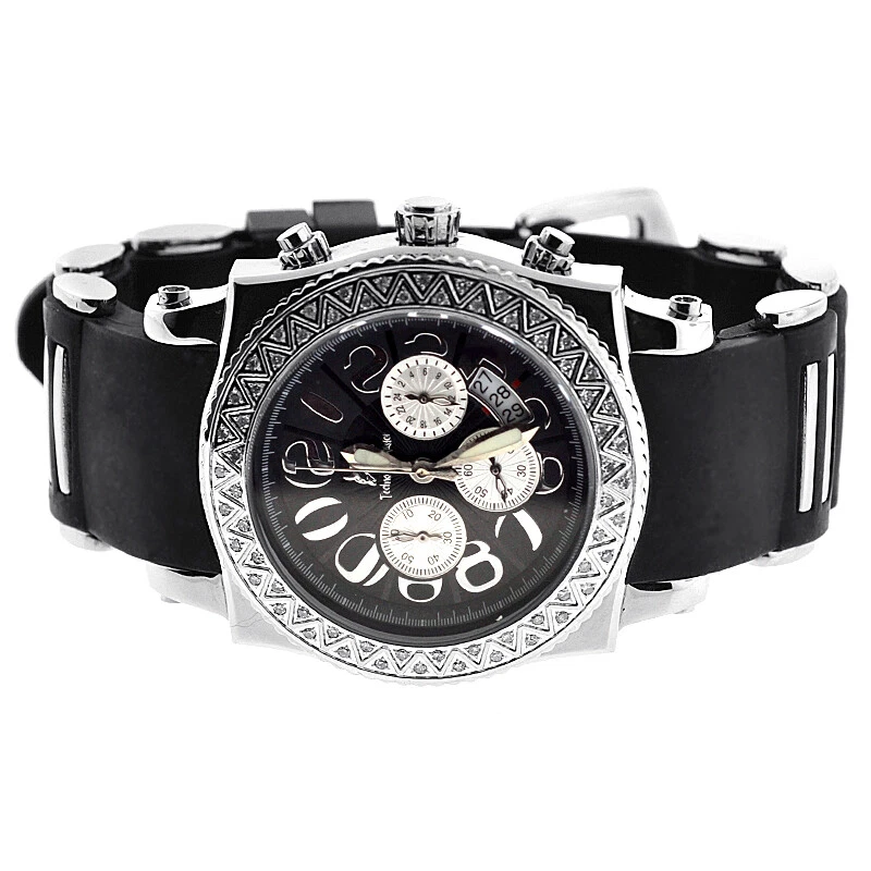 Techno Master Mens Real Diamond Bezel Watch Chronograph Rubber Band 1.0 Carat
