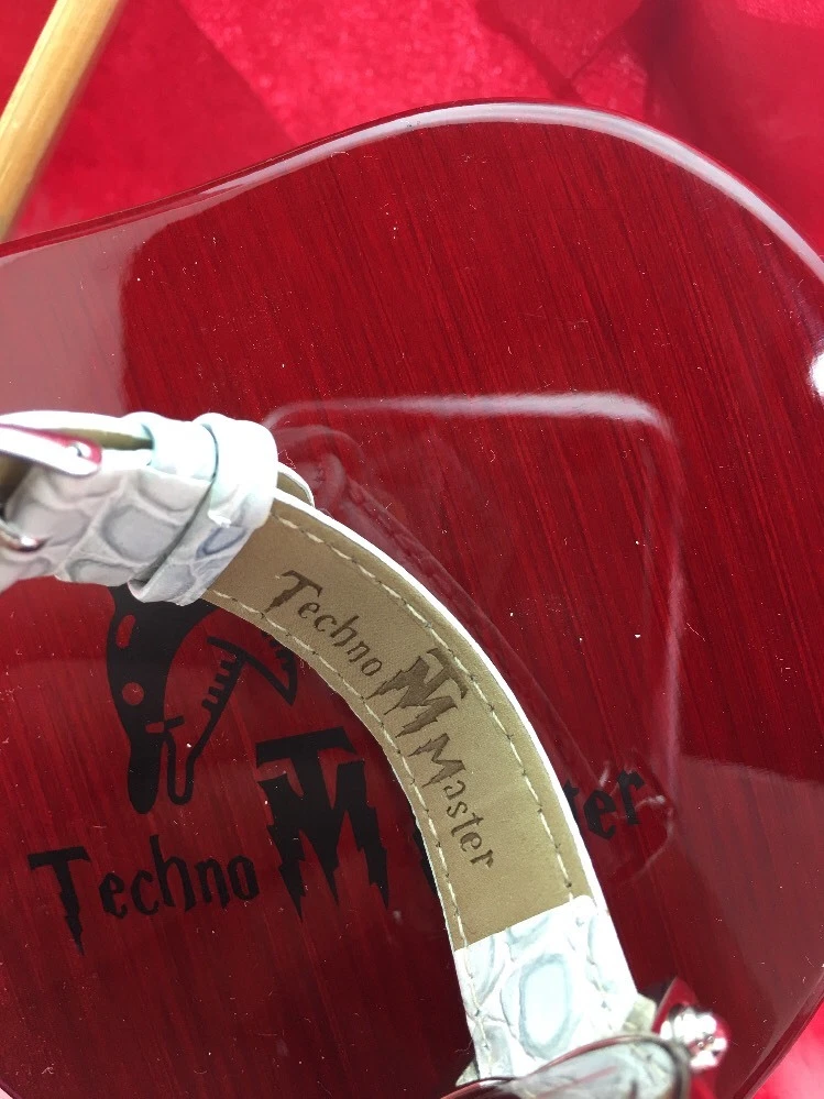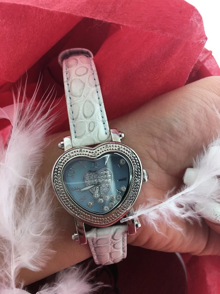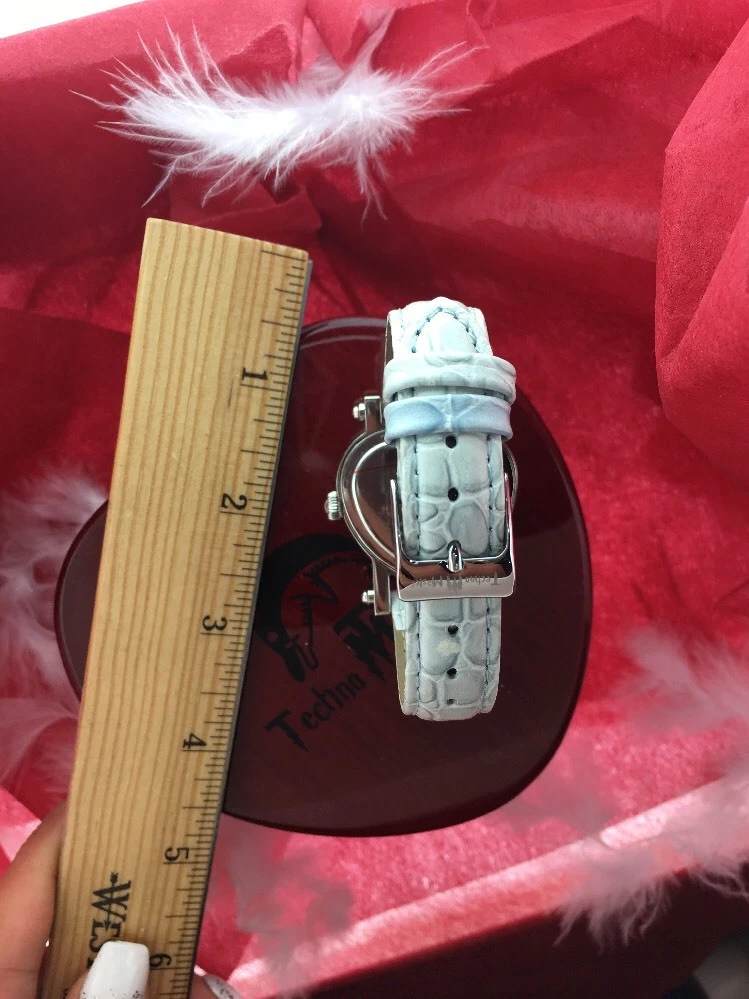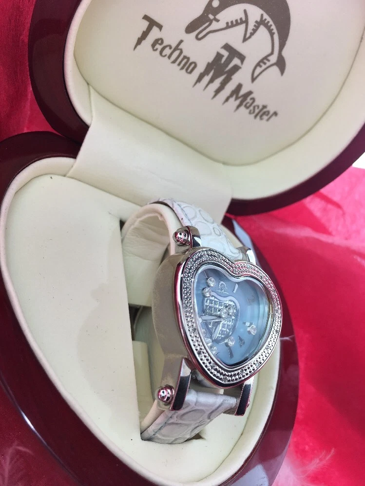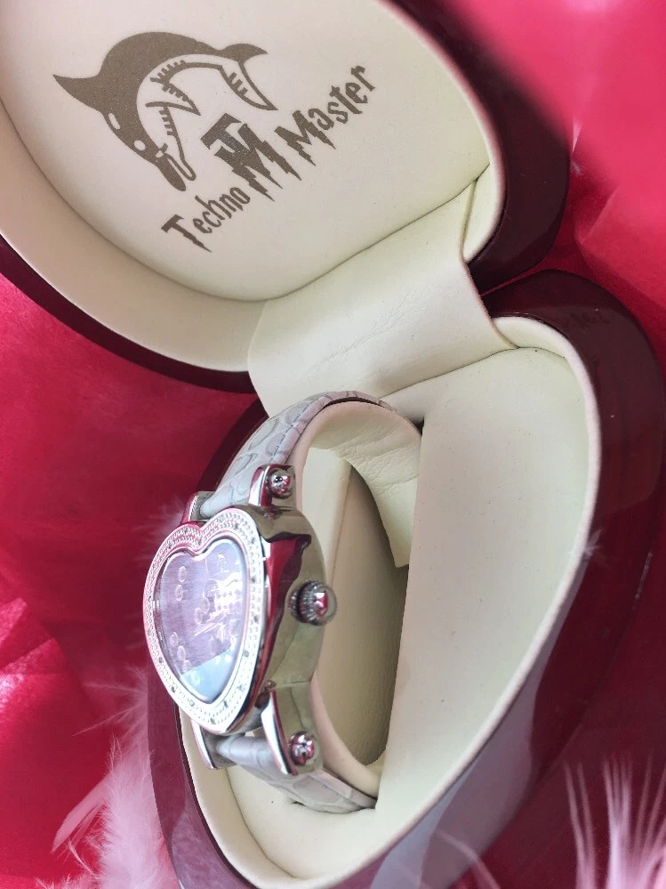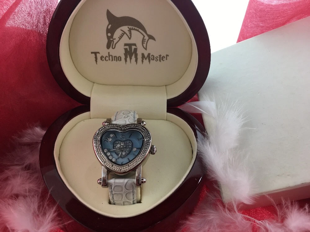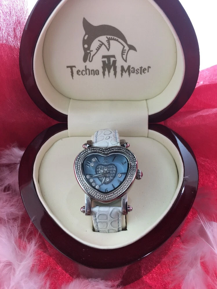 BRAND NEW LEATHER TECHNO MASTER BLUE DIAMOND 0.65CT HEART LADIES WATCH WITH BOX