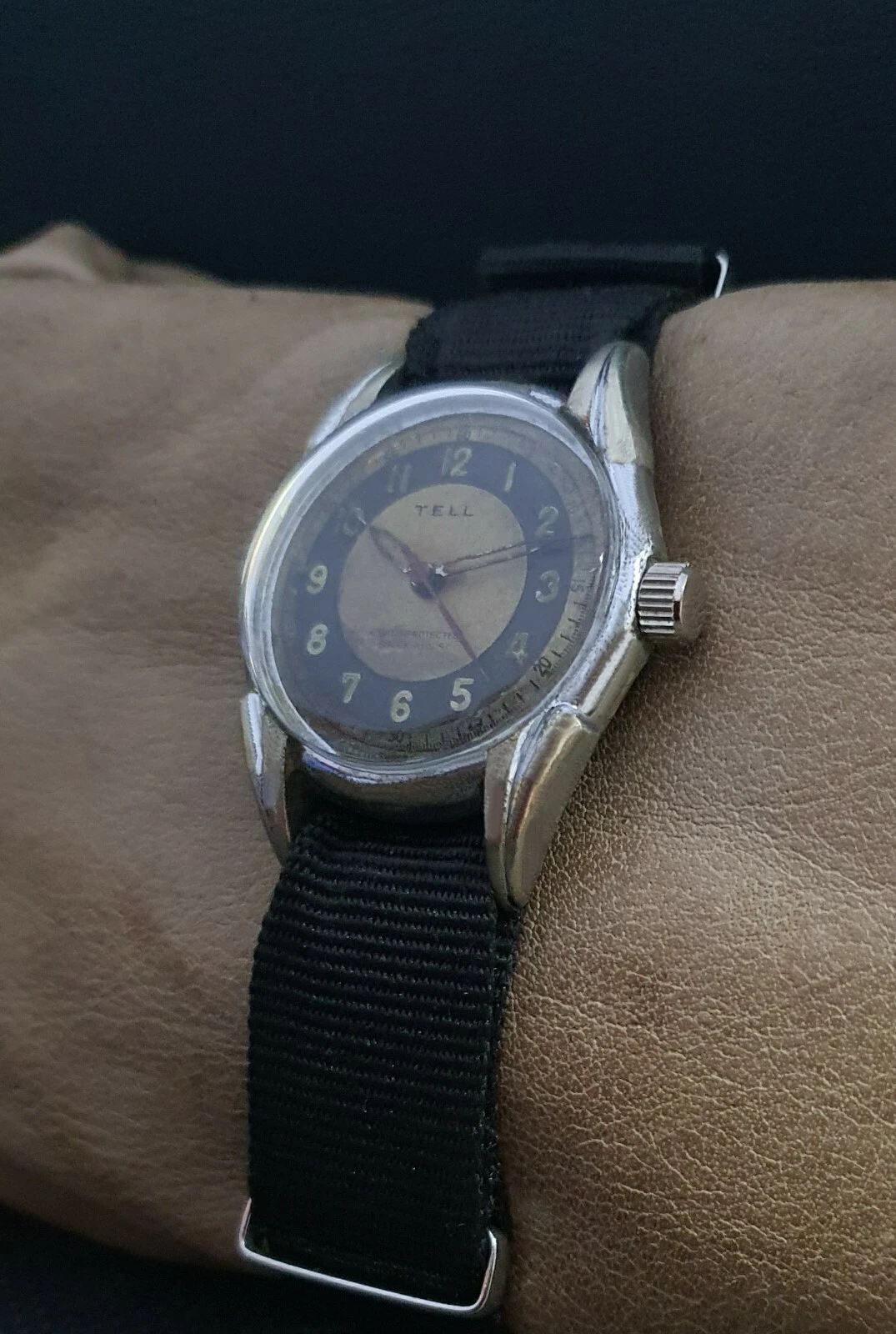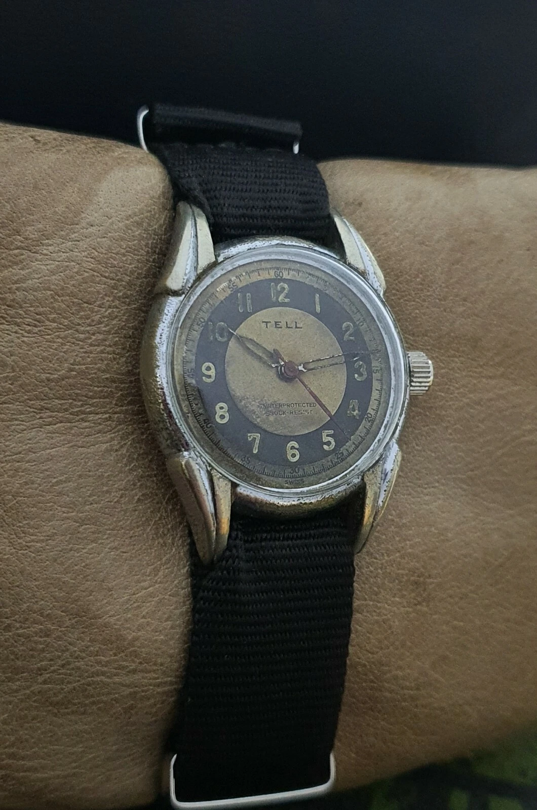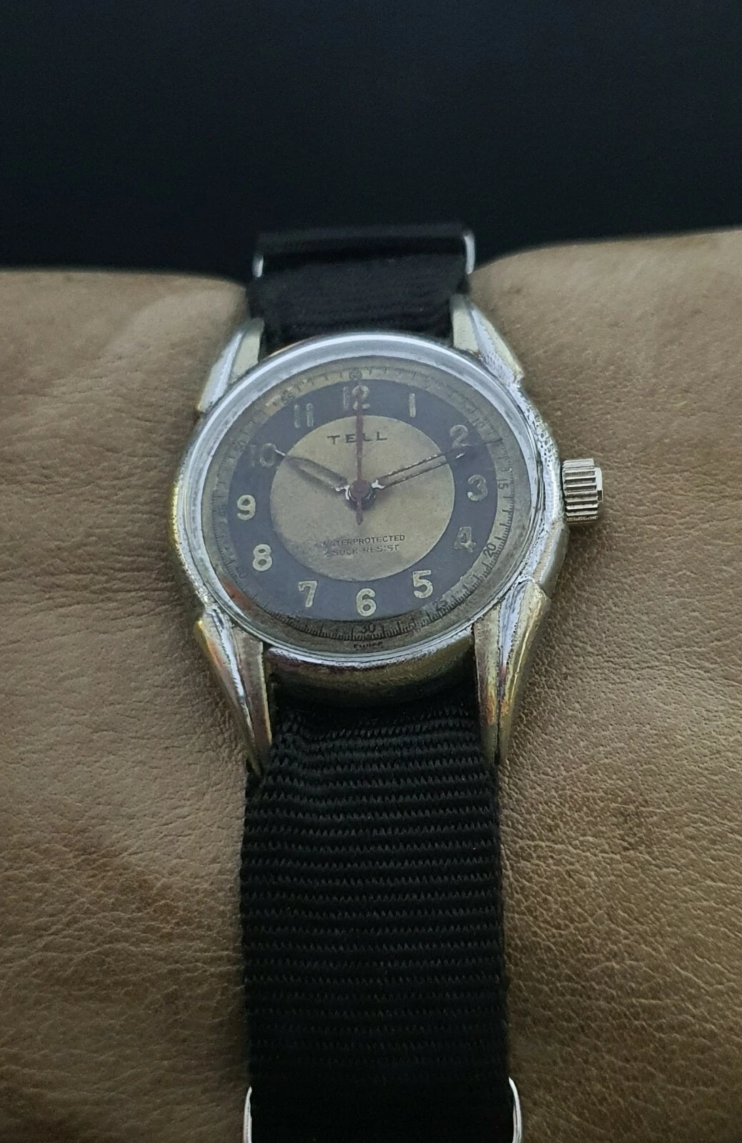 RARE!! TELL WWII 40's MILITARY VINTAGE 15J TWO-TONE SWISS WATCH.