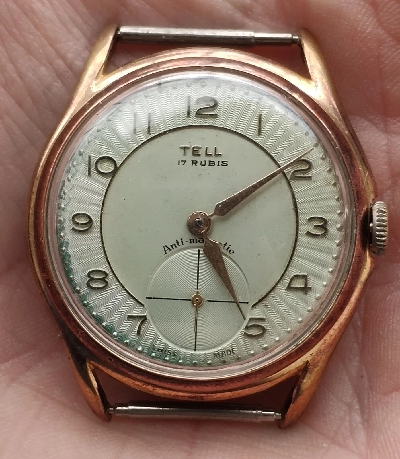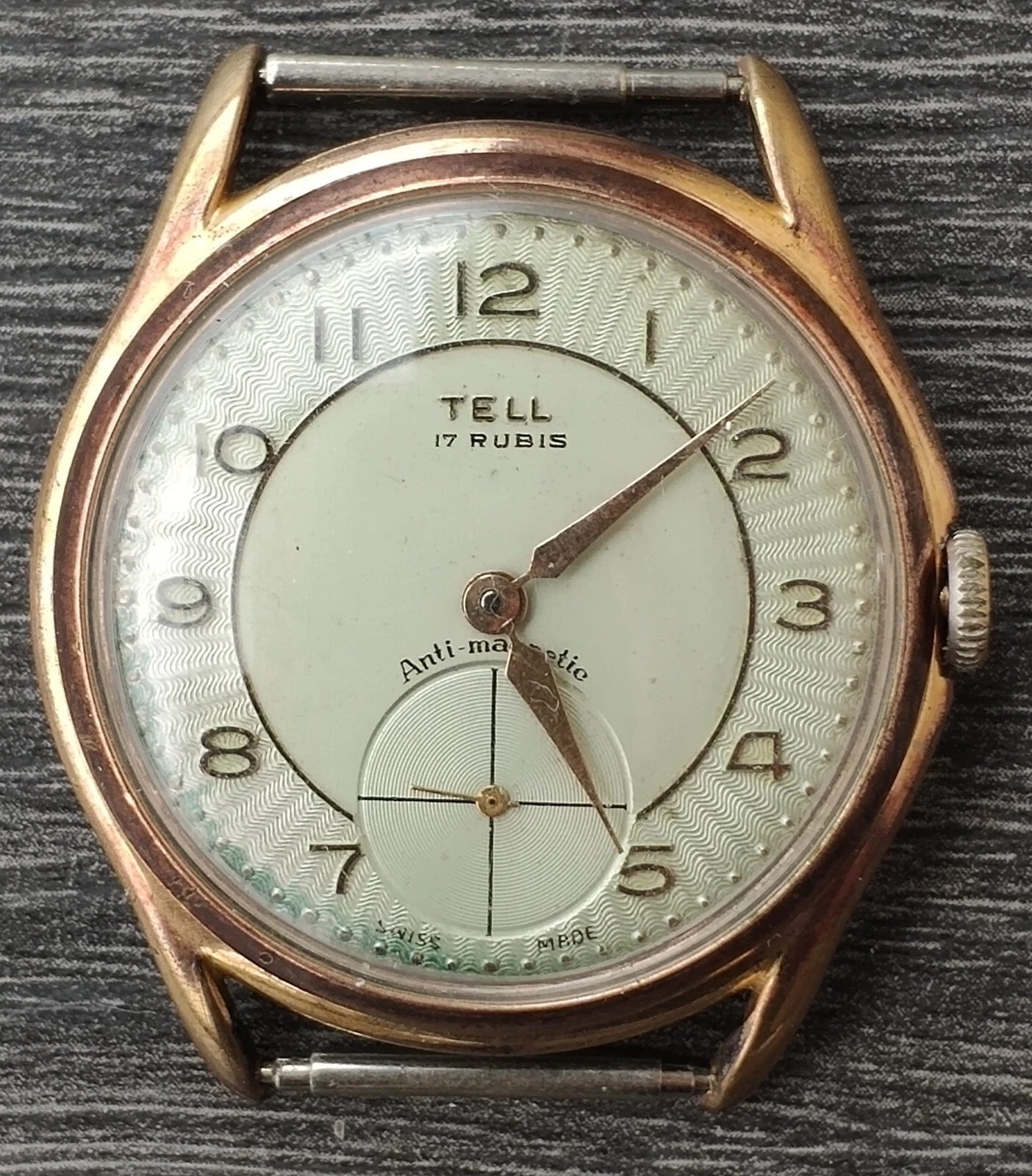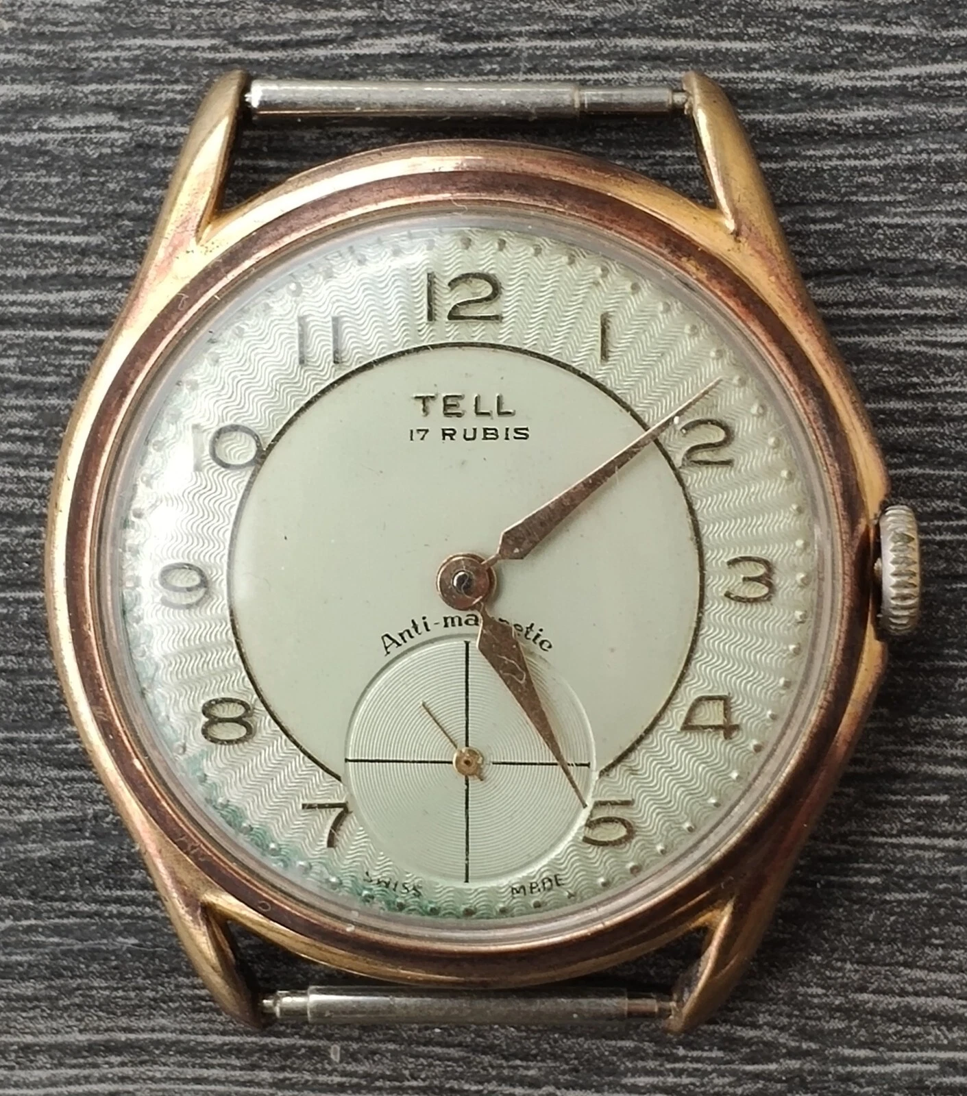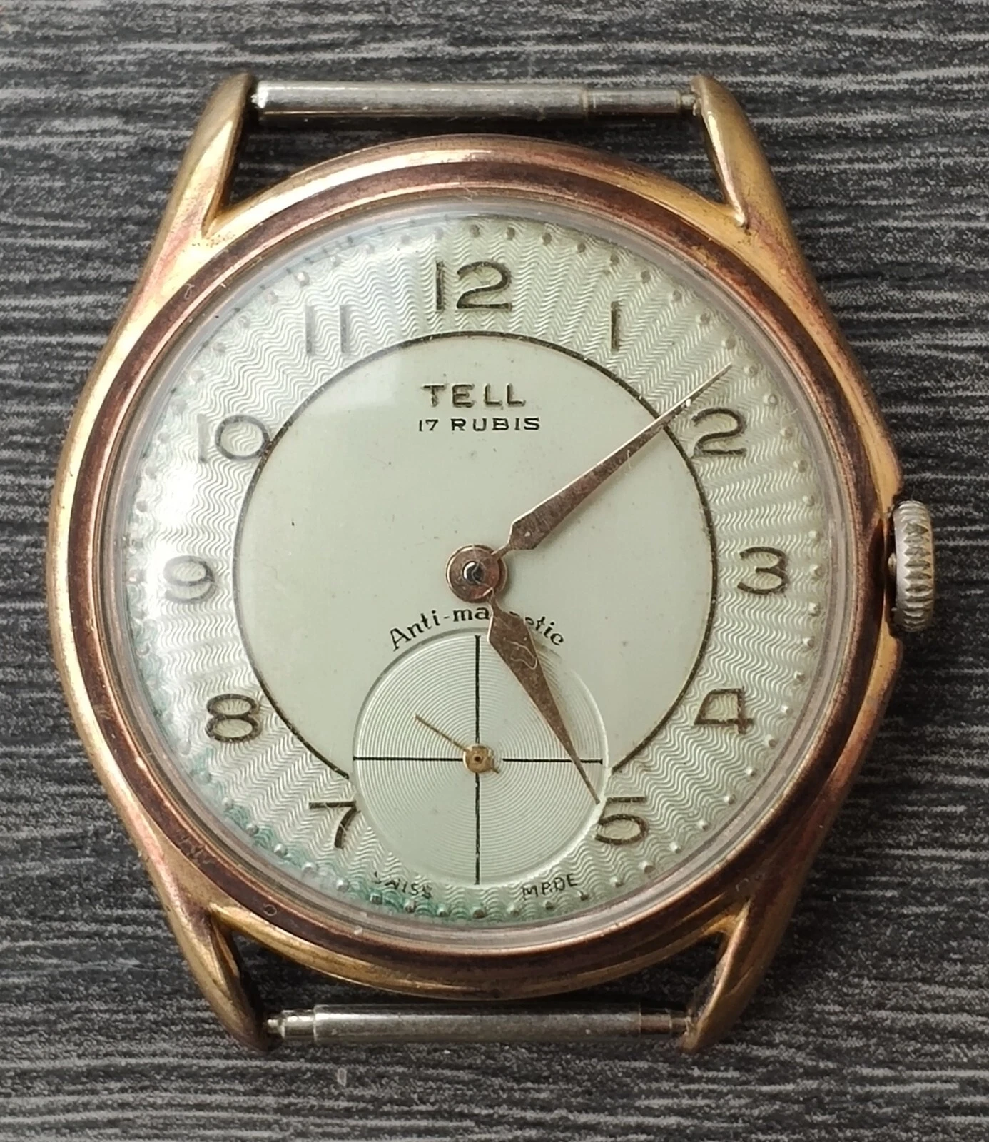 Vintage men's Tell hand-winding watch Unitas 6310 textured dial