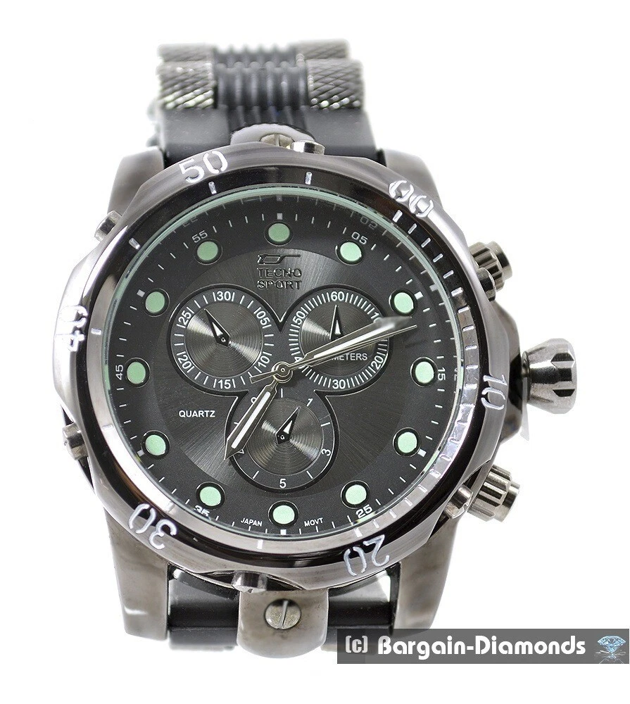 Mens Black Clubbing Watch Black Bezel Black Dial Bullet Strap Up to 9.5"