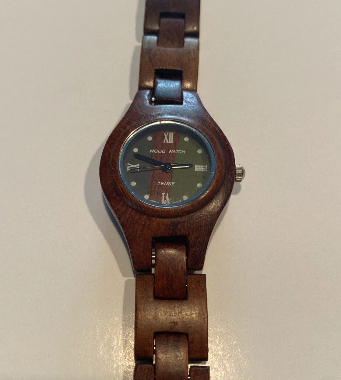 Vintage Women's TENSE Wooden Watch Canadian w/ Japan Movement 1971 EXC