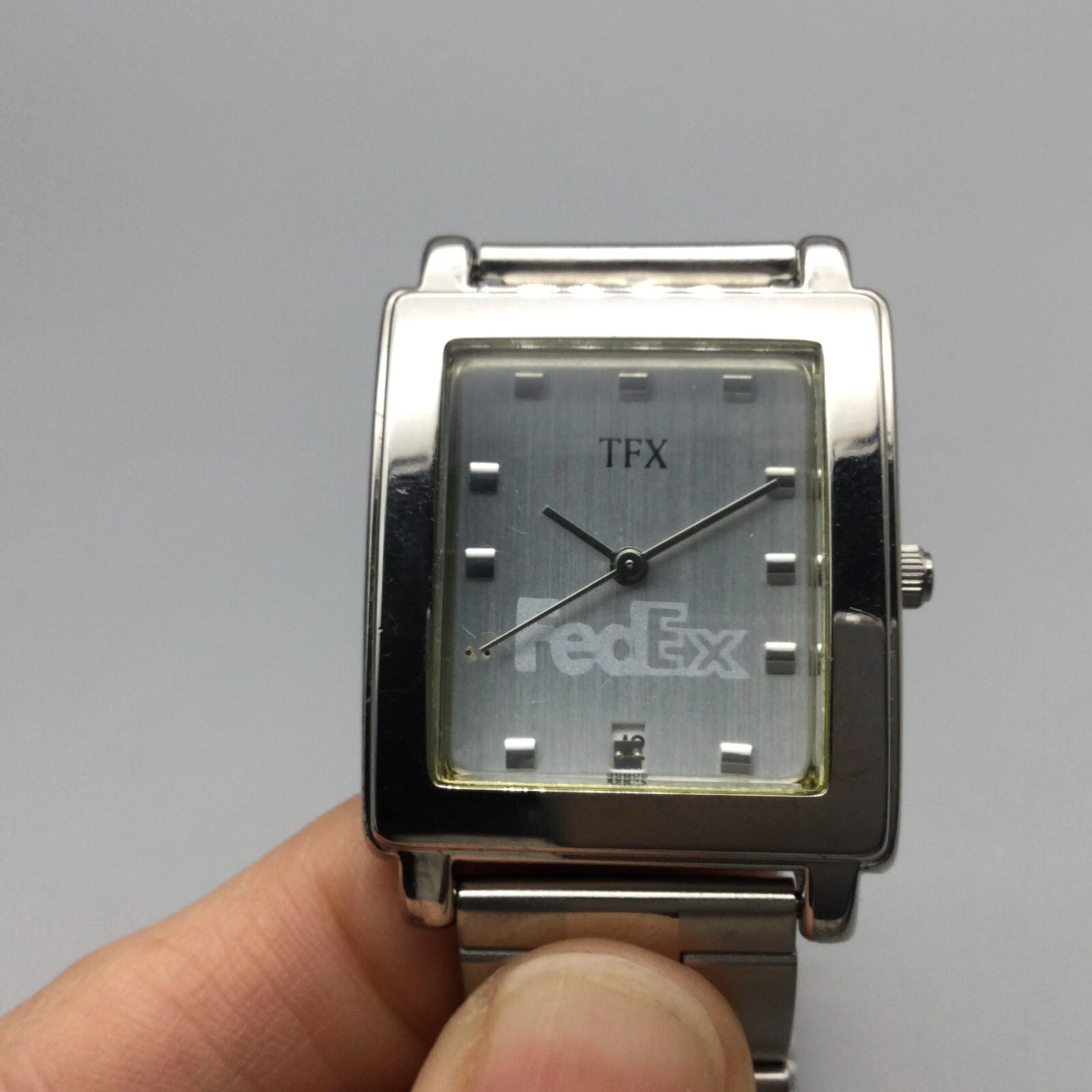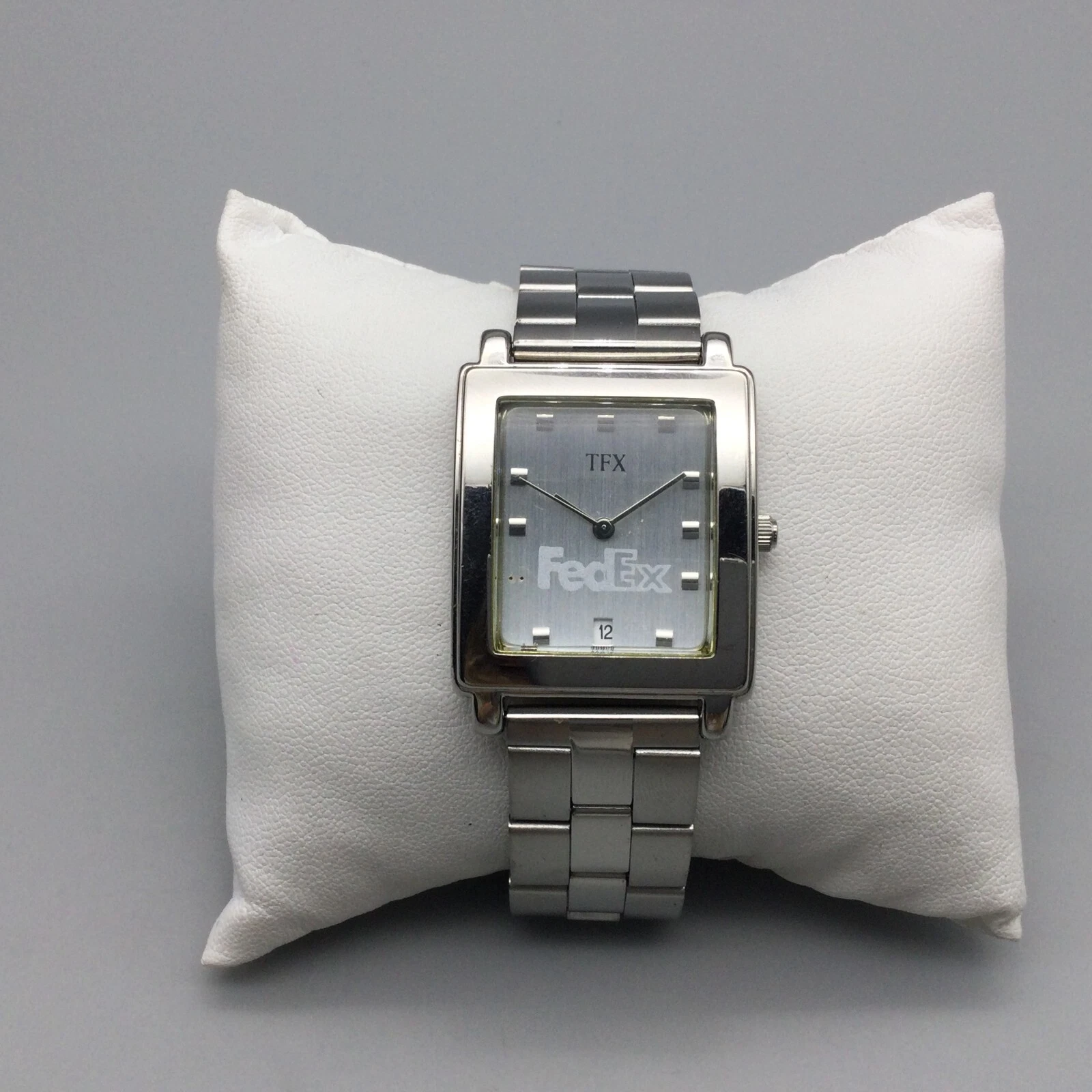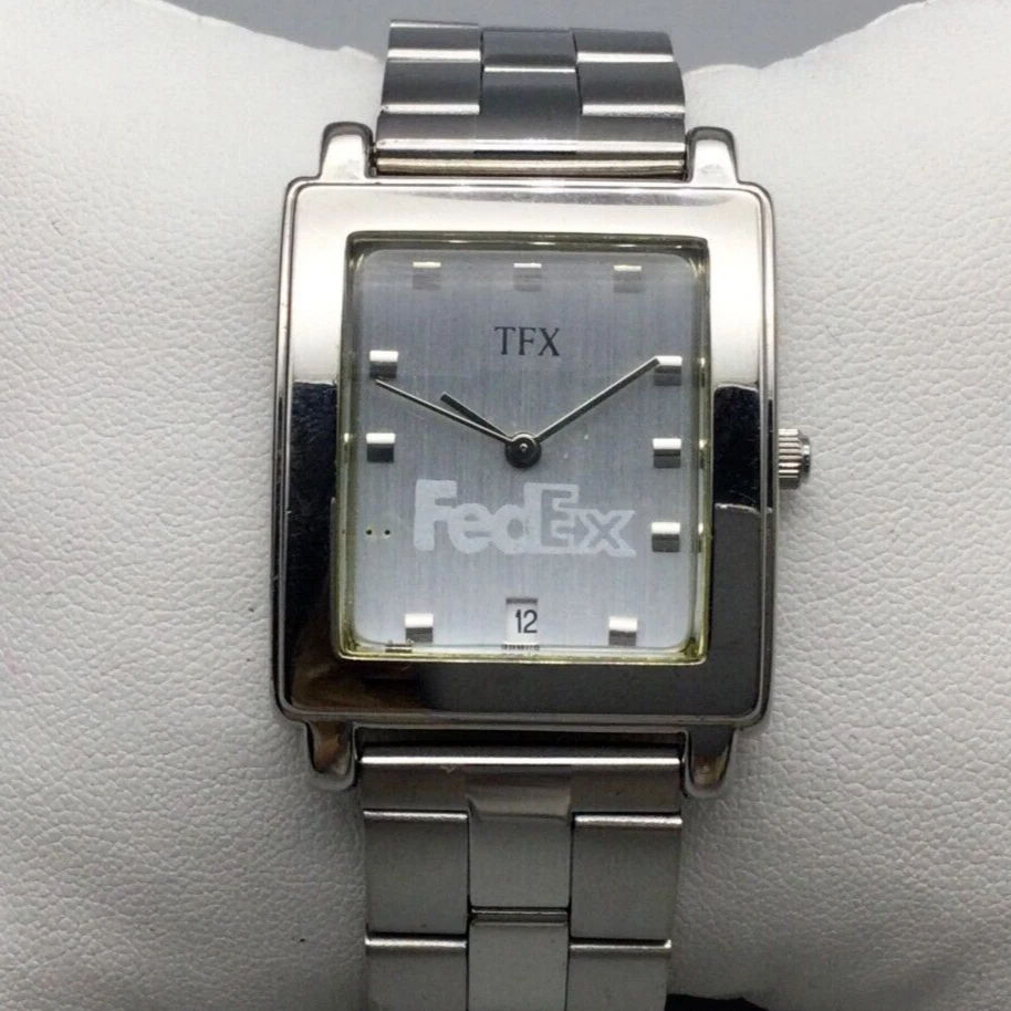 TFX Bulova Fedex Promo Tank Watch Women 28mm Silver Tone Date New Battery 8.5"
