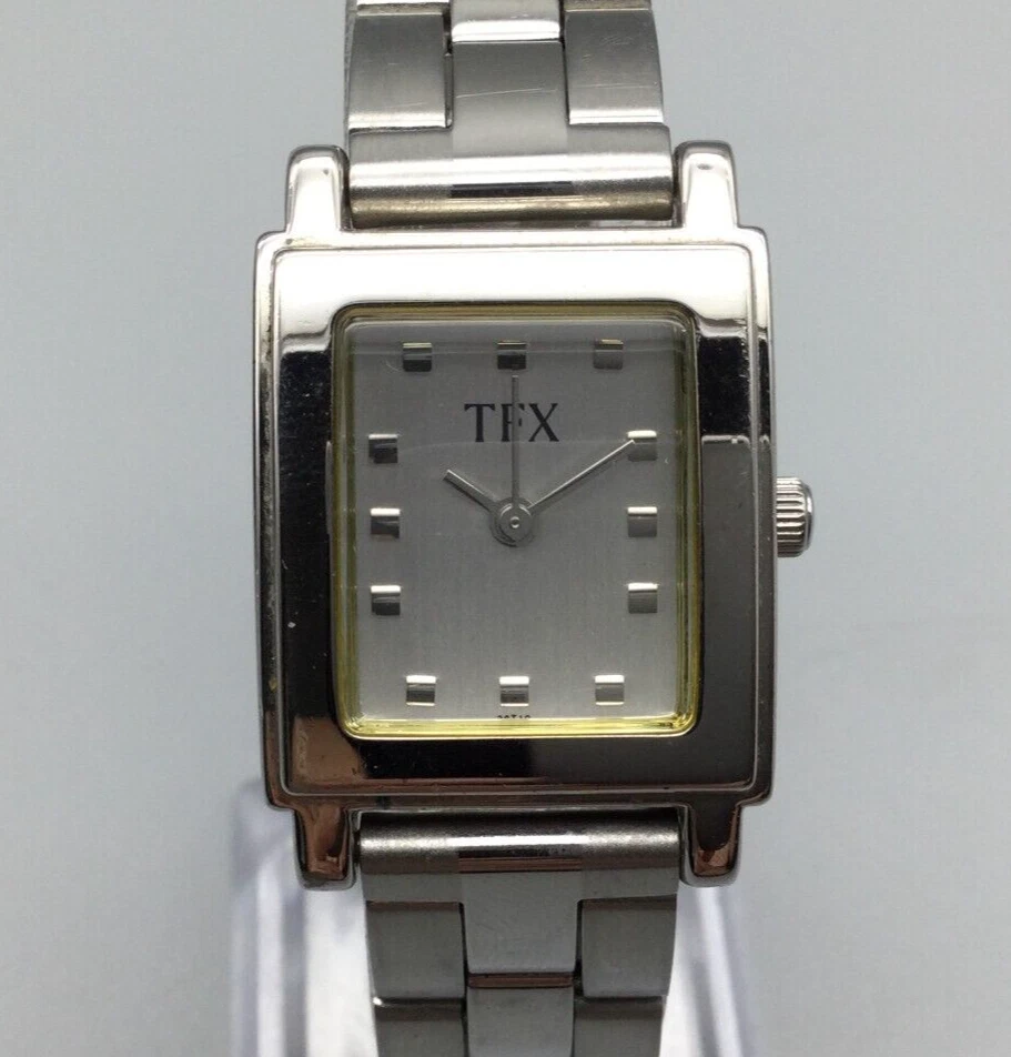 TFX by Bulova Watch Women Silver Tone Tank 2005 36T10 New Battery 6"