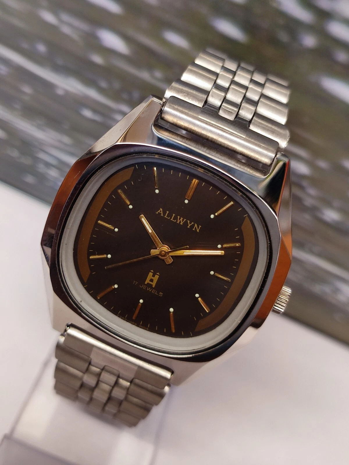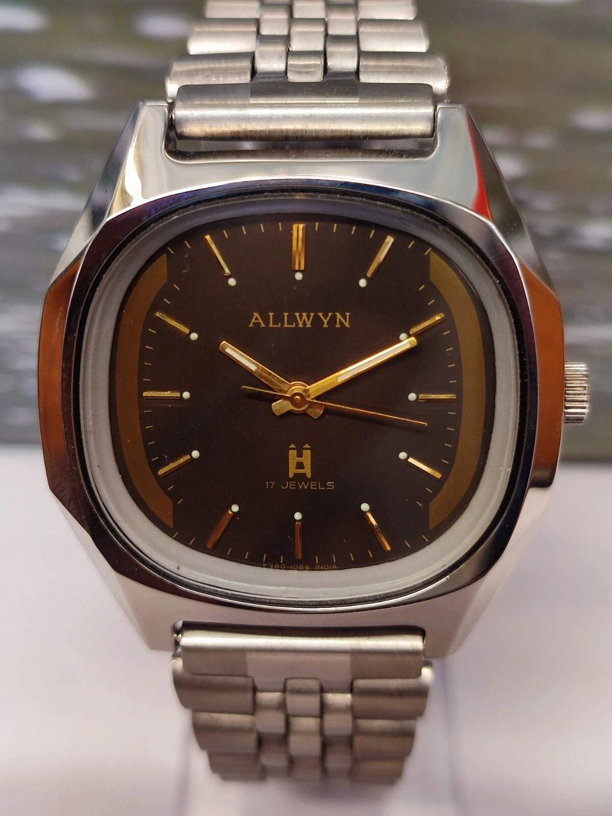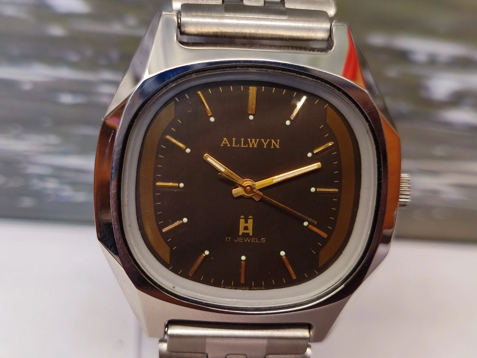 ALLWYN 17 JEWELS WINDING NEW OLD STOCK Y380-6010 INDIA MEN FULL WORKING VINTAGE