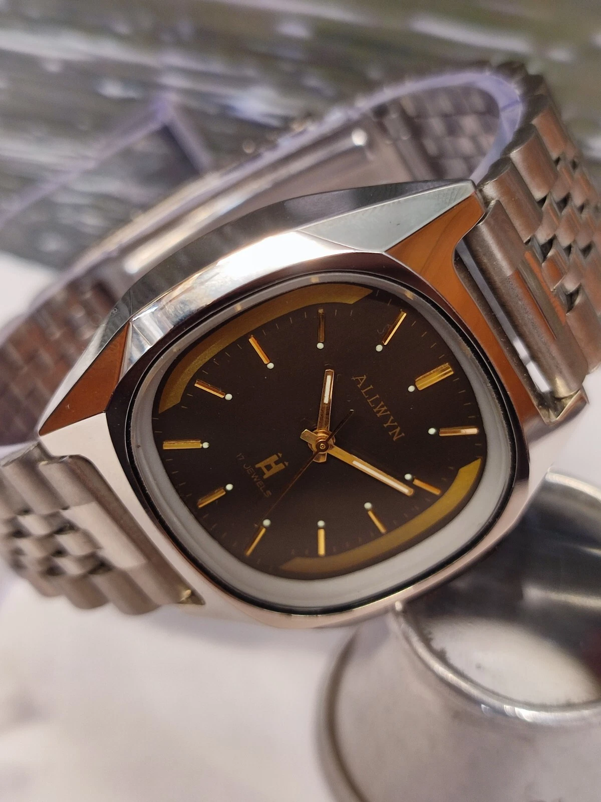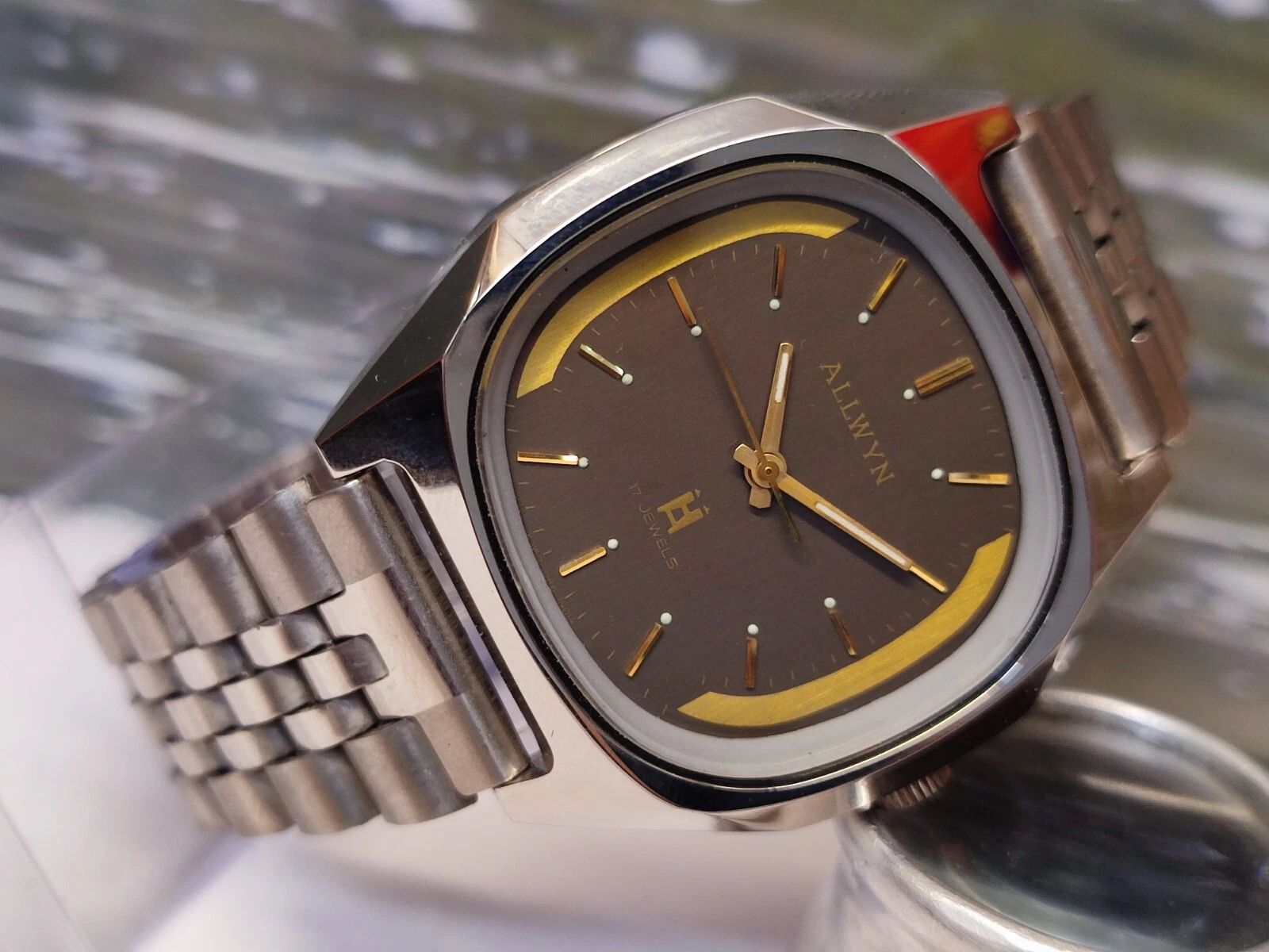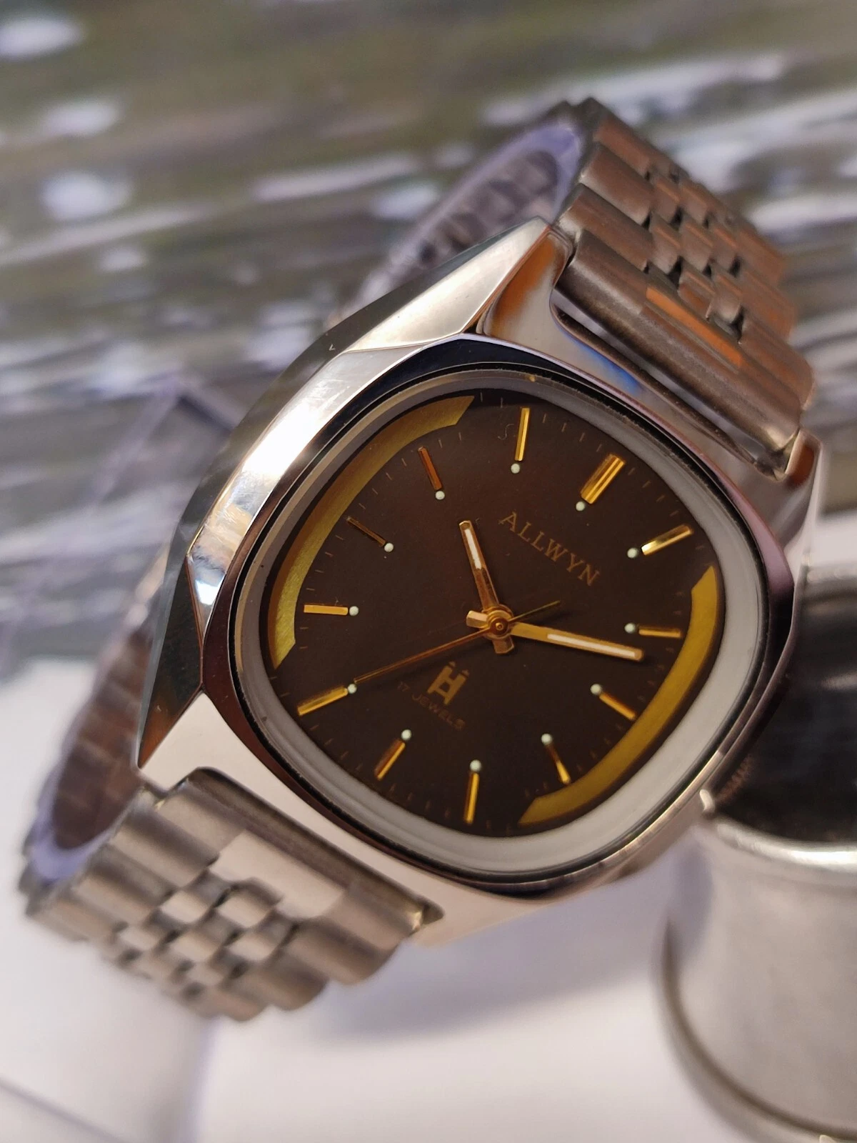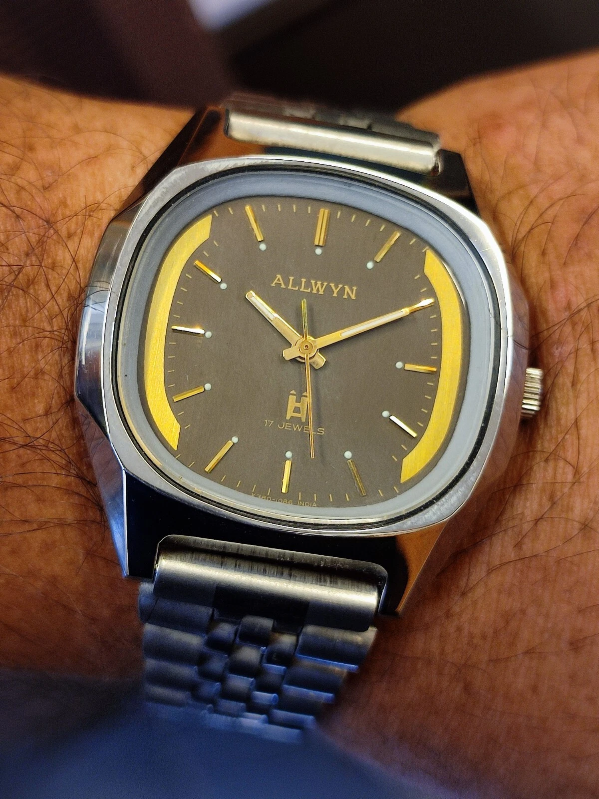 ALLWYN 17 JEWELS WINDING NEW OLD STOCK Y380-6010 INDIA MEN FULL WORKING VINTAGE