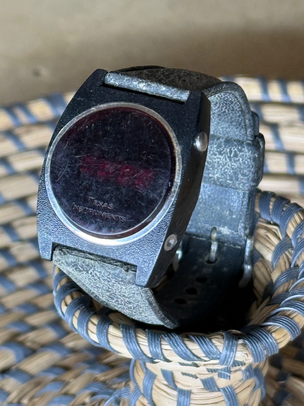Vintage 1970’s Men’s Texas Instruments Red LED Wristwatch RARE Watch READ Black