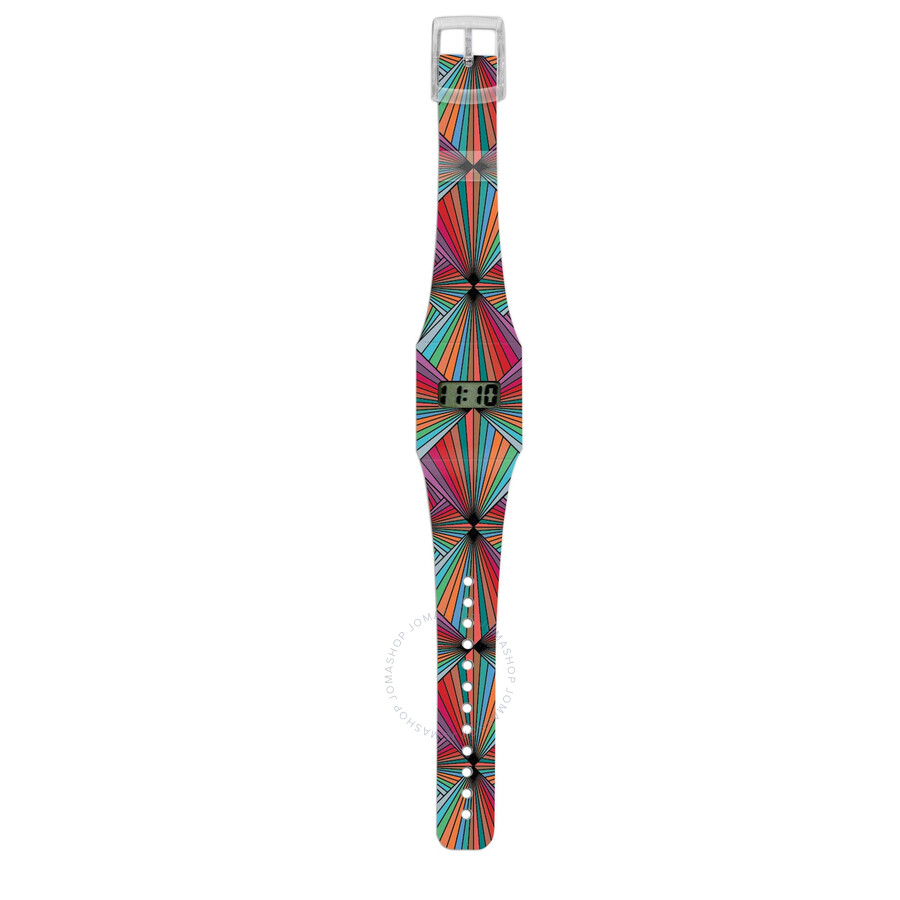 Multicolor tyvek case and band. Digital dial. Dial Type: digital. Quartz movement. Solid case back. Square case shape, case size: 25 mm. Buckle clasp. Functions: hour, minute, second. Lampion Series. Sport watch style. PappWatch Lampion Paperlike Quartz Digital Ladies Watch ILP16466.