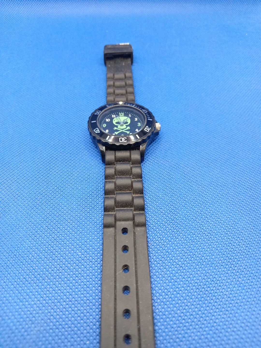 Tikkers Kids Quarts Watch, Working, New Battery, Skull & Cross Bones Design