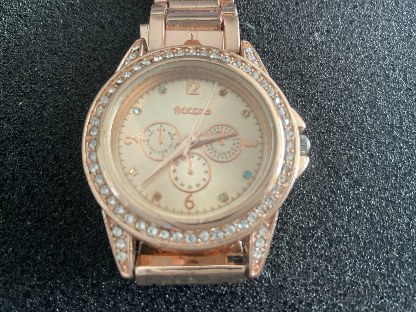Tikkers Girls Rose Gold Metal Bracelet Multicoloured Stone Dial Watch, Preowned