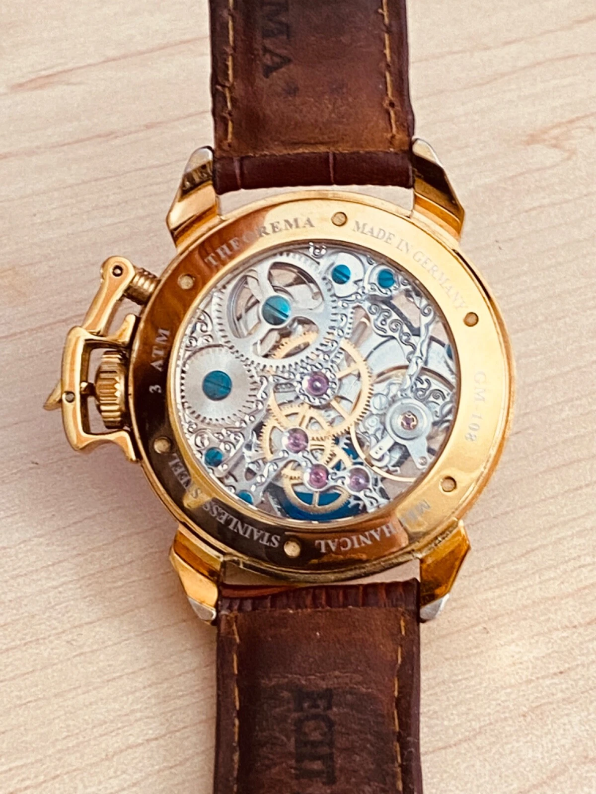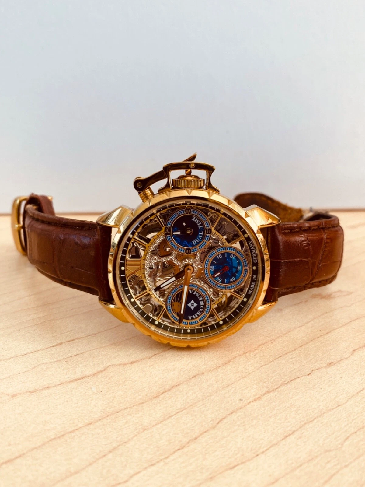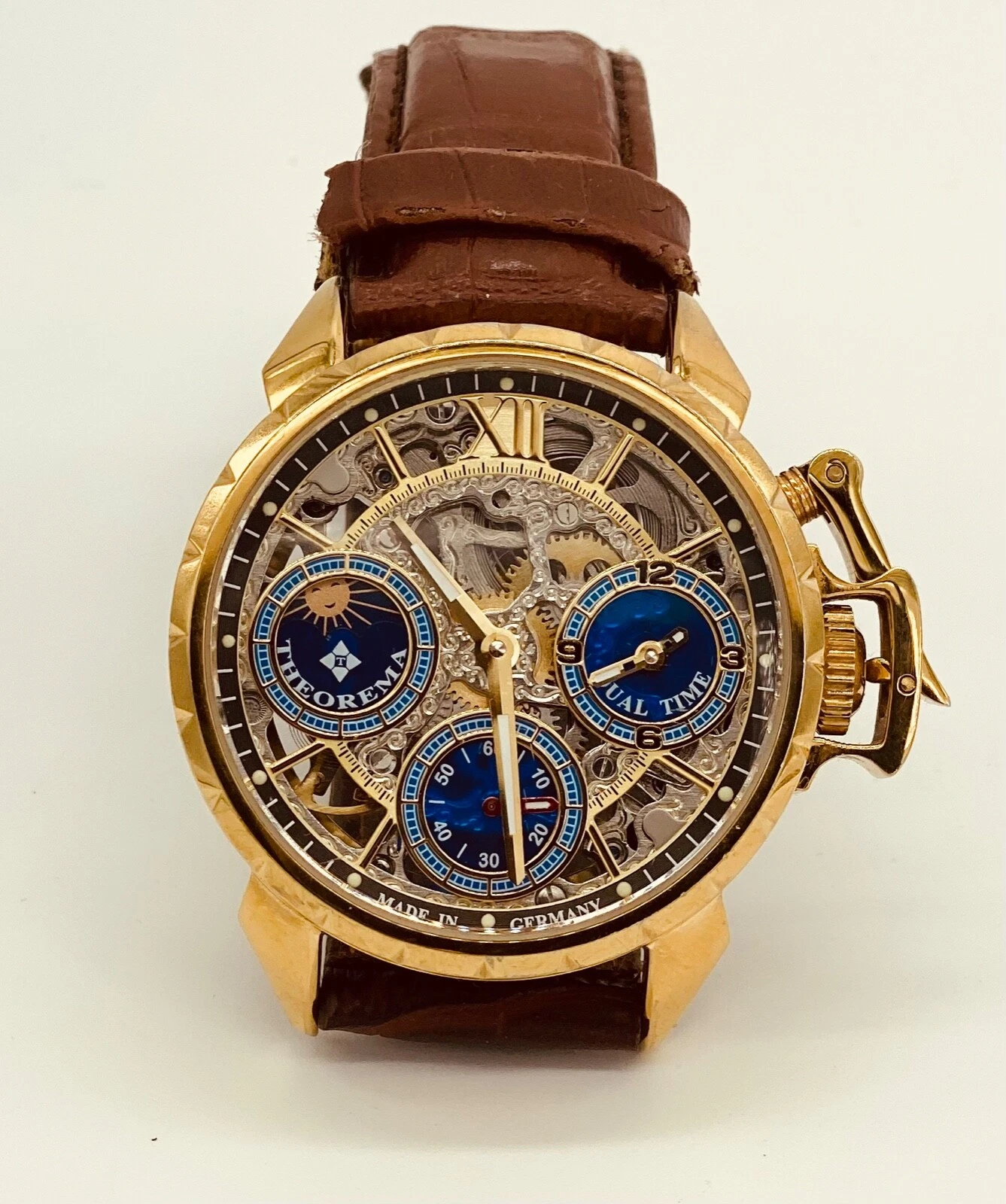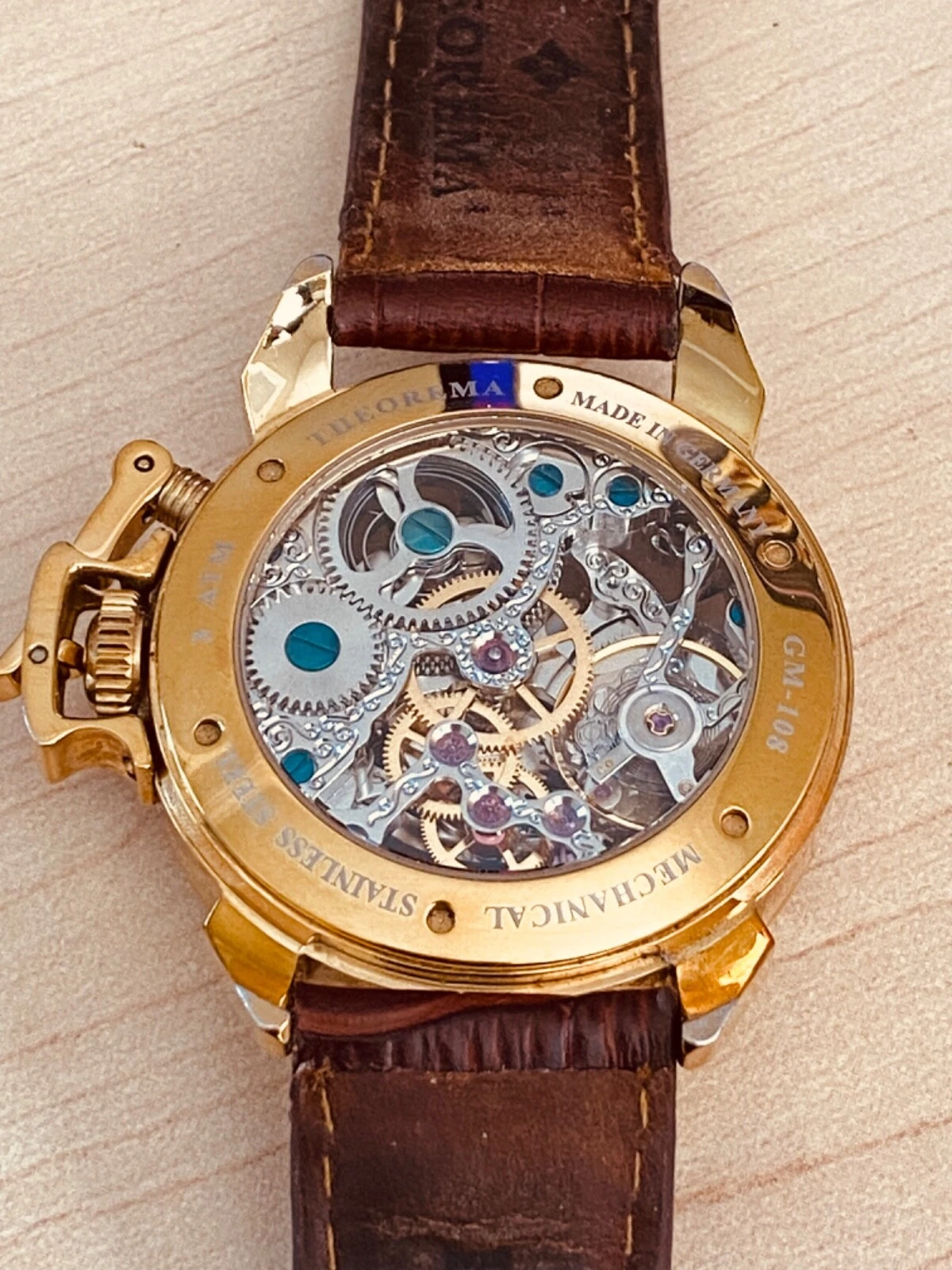Theorema Oman GM-108 Watch Skeleton Dial Display Back Dual Time Tufina **READ**