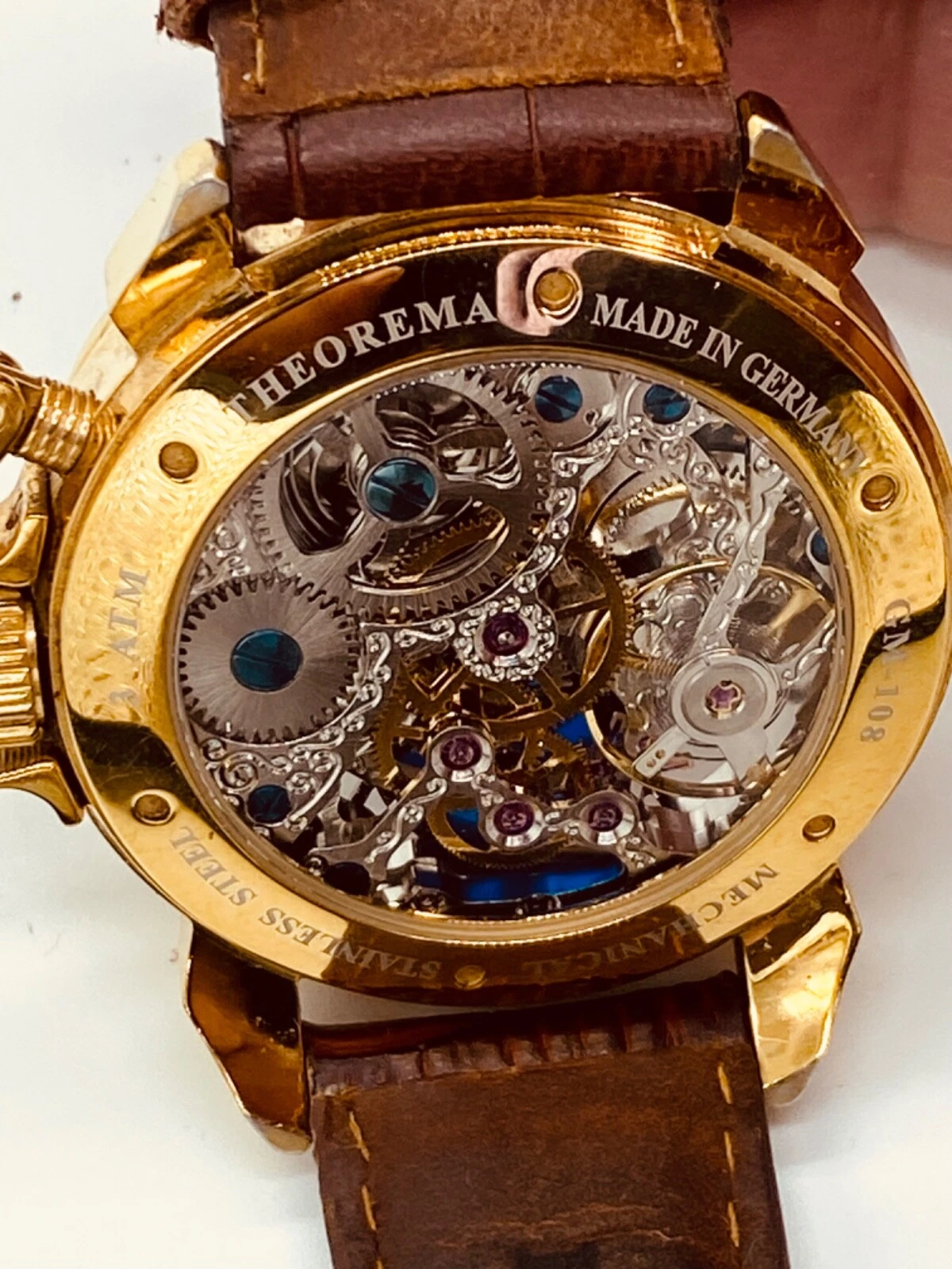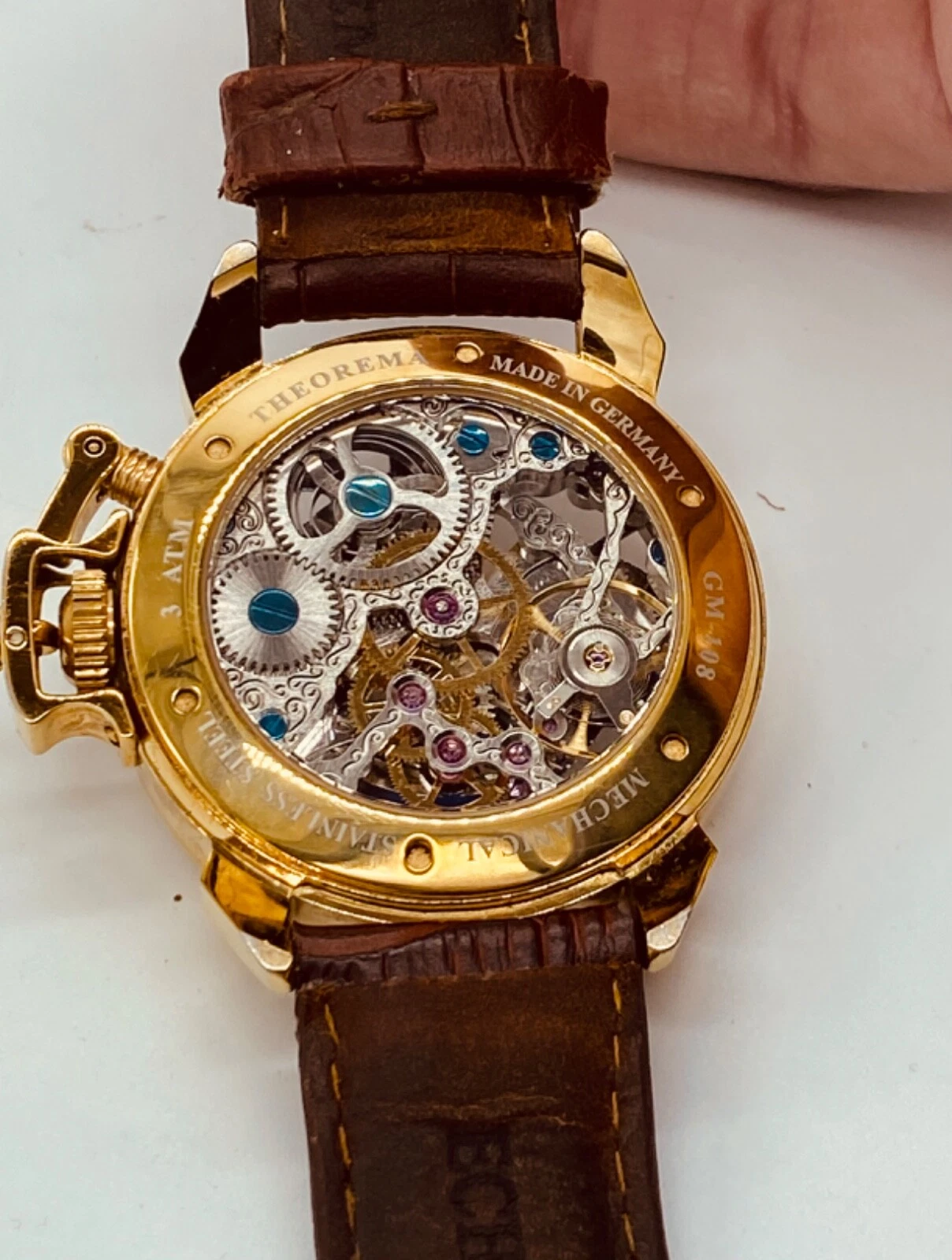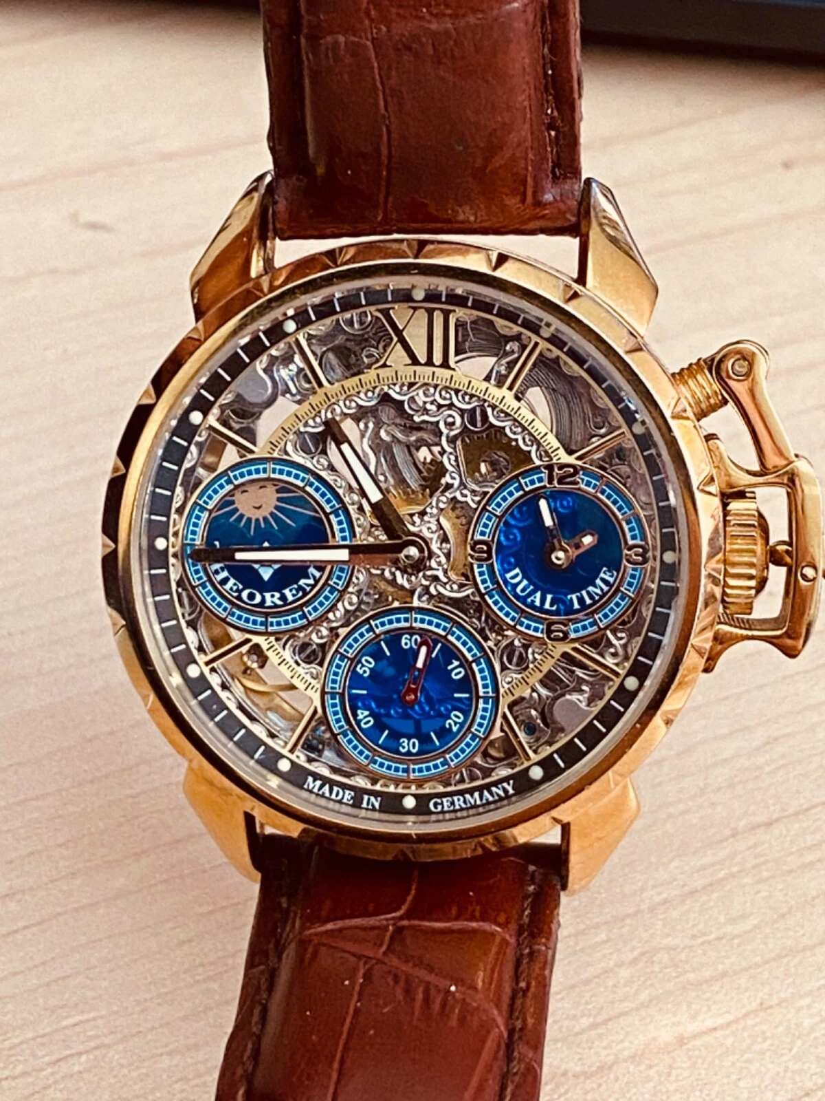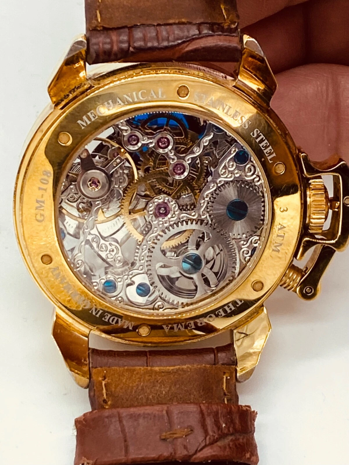 Theorema Oman GM-108 Watch Skeleton Dial Display Back Dual Time Tufina **READ**