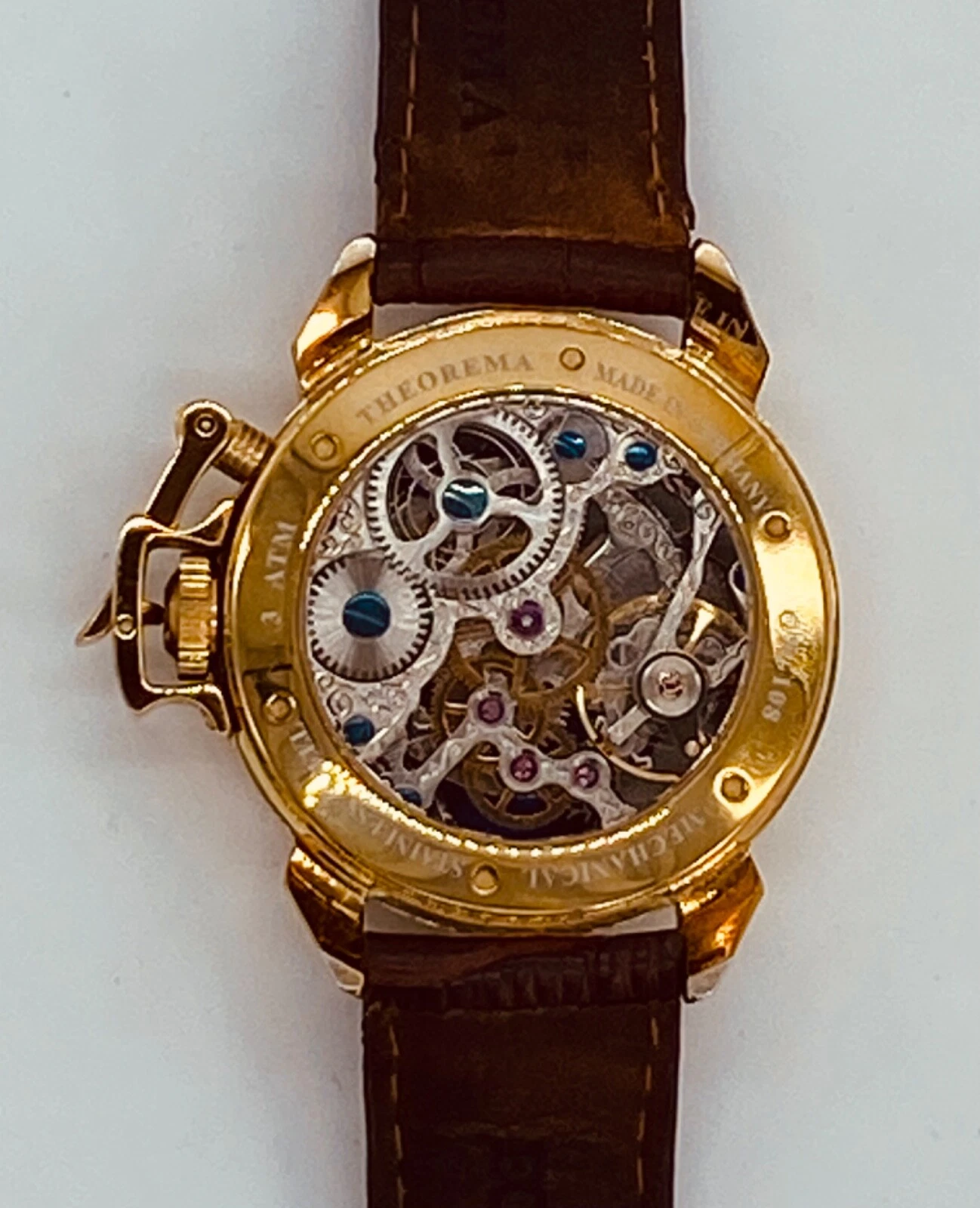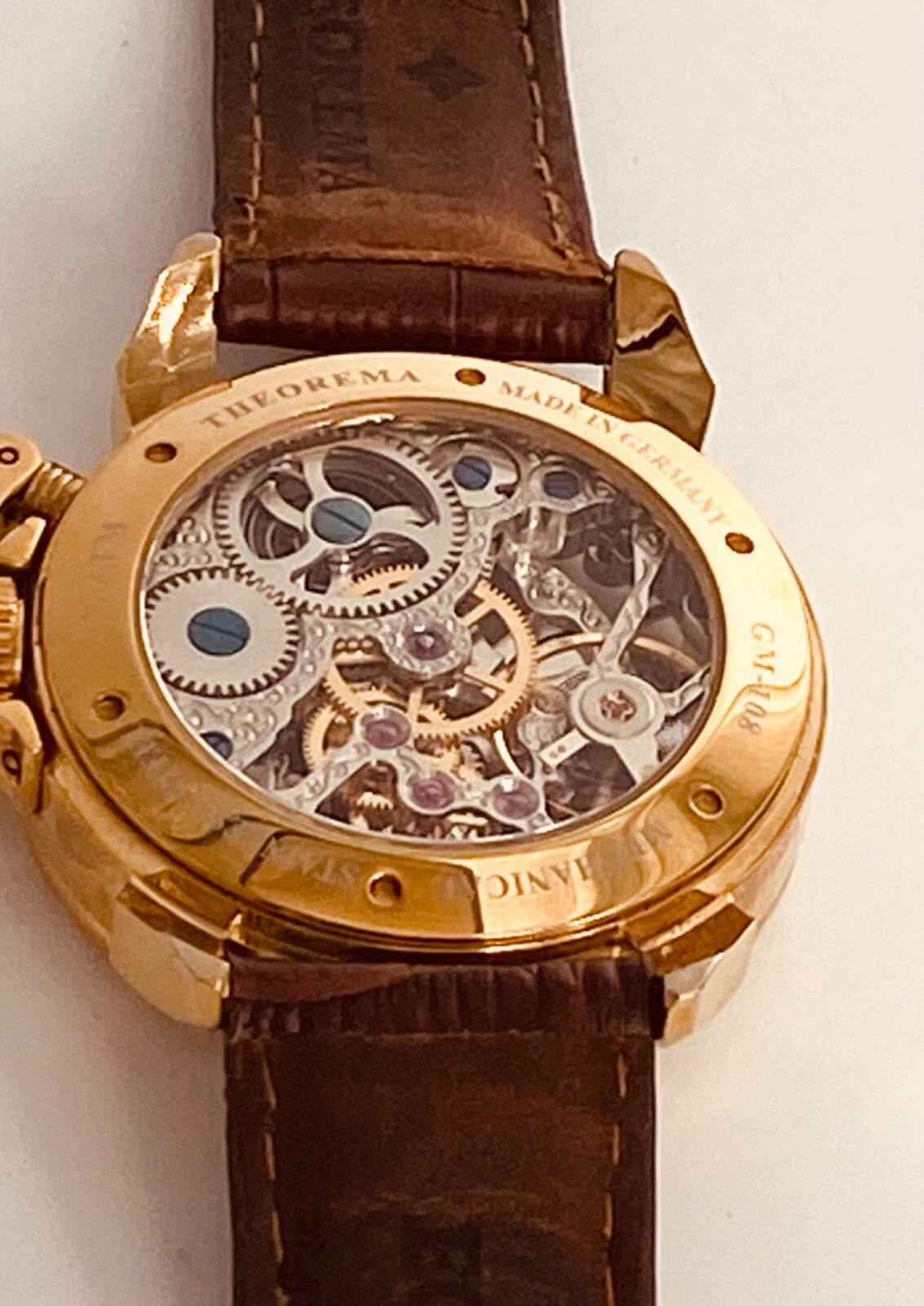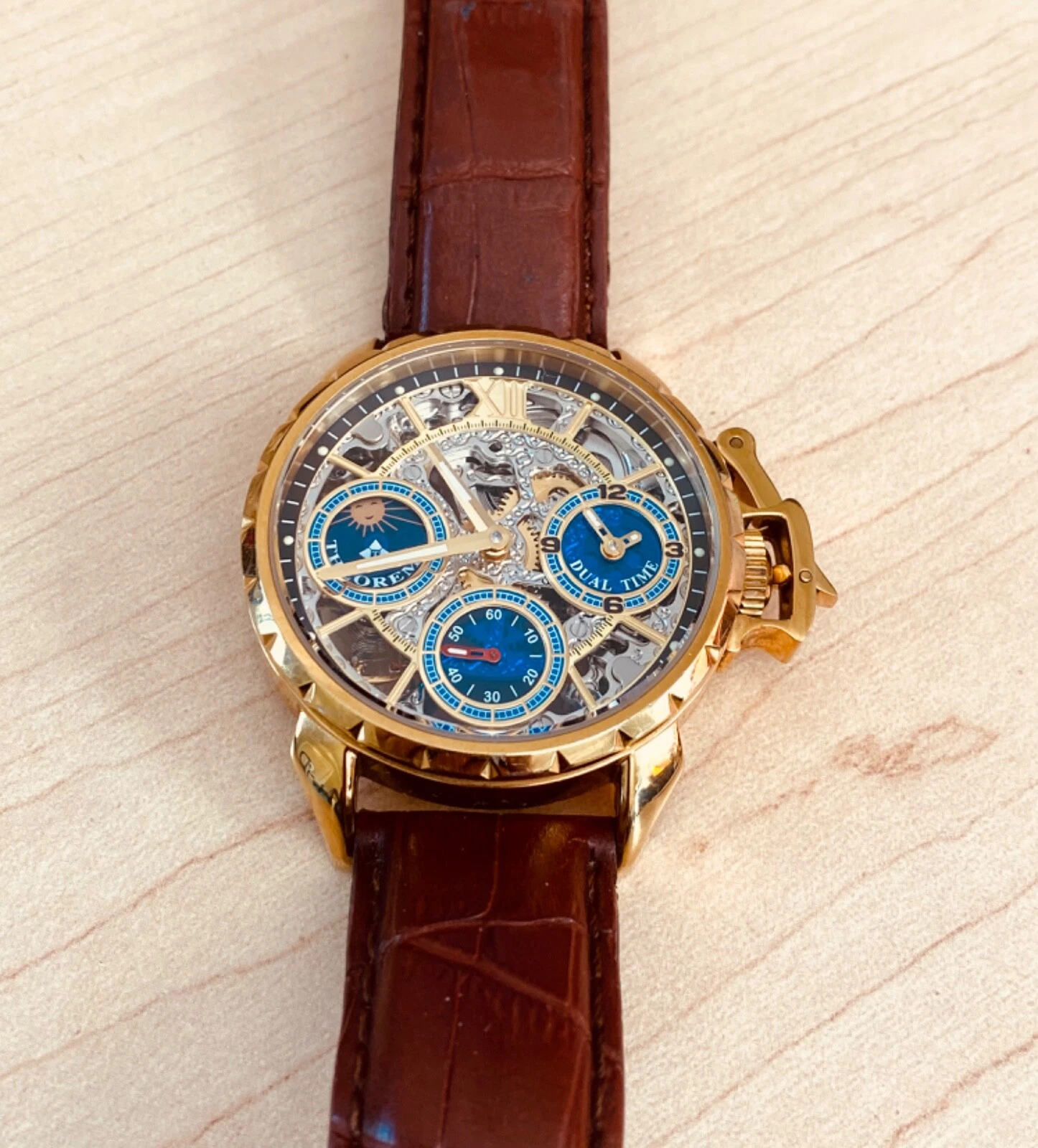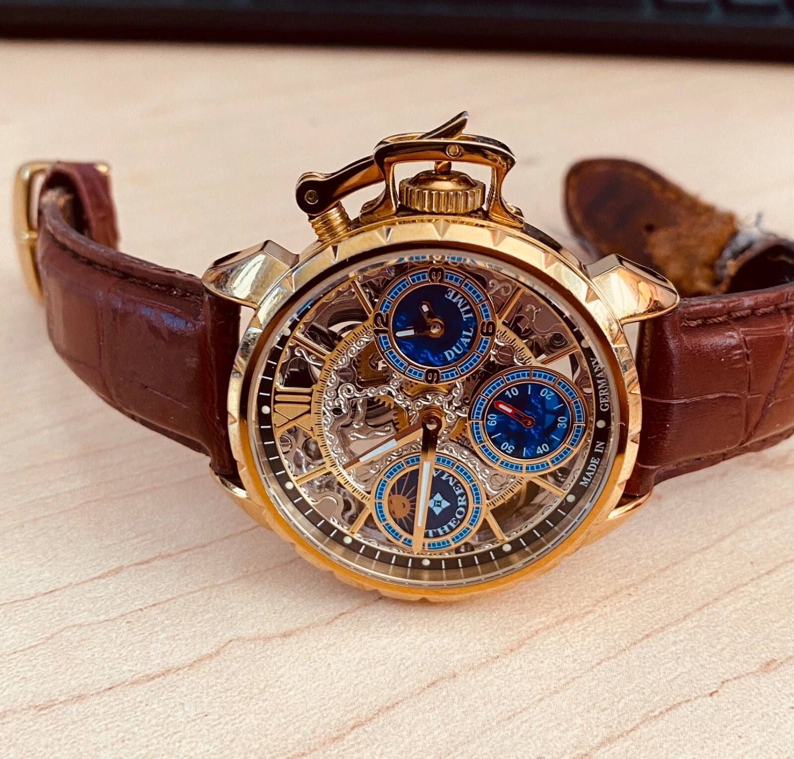 Theorema Oman GM-108 Watch Skeleton Dial Display Back Dual Time Tufina **READ**