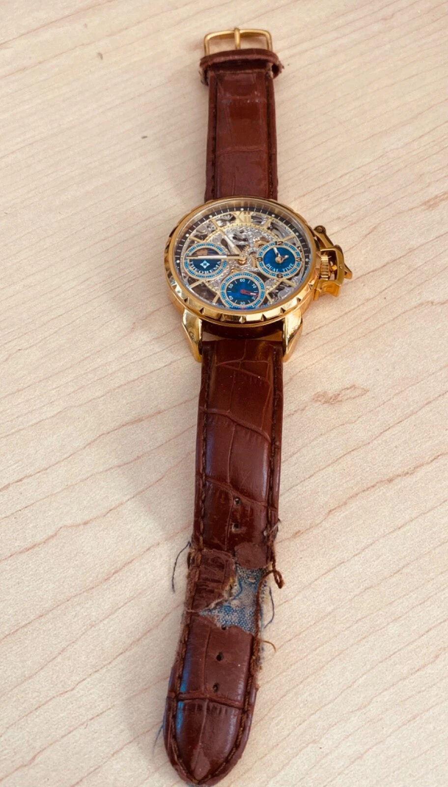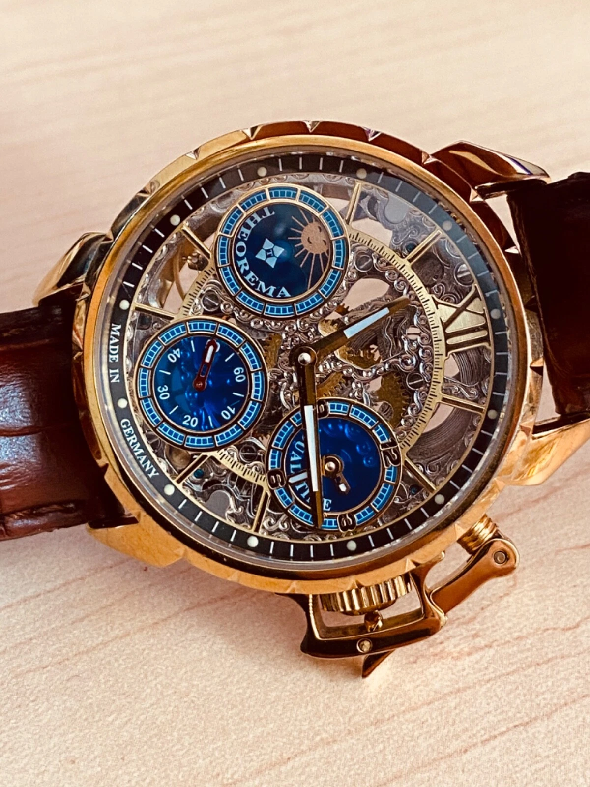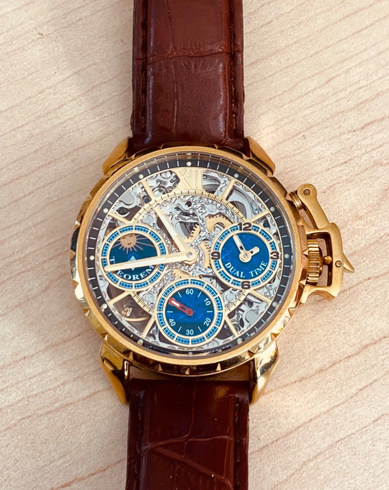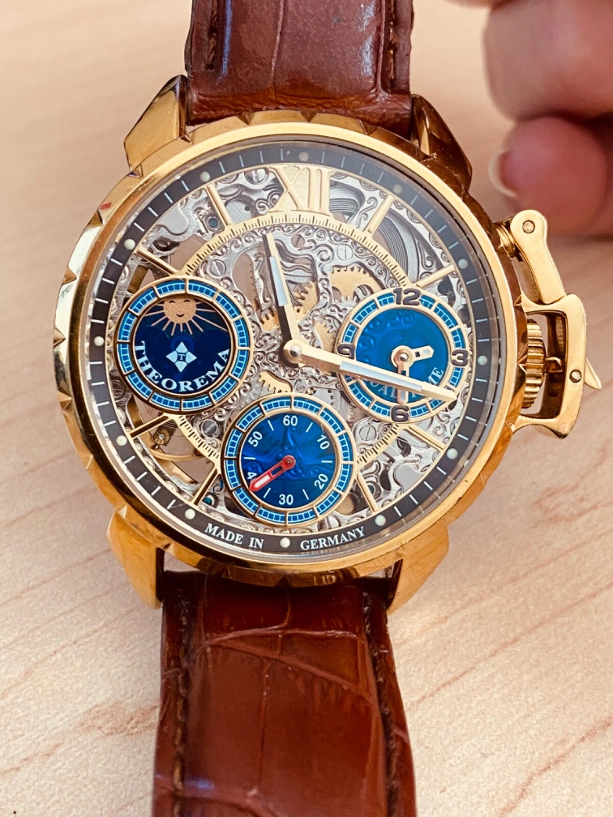 Theorema Oman GM-108 Watch Skeleton Dial Display Back Dual Time Tufina **READ**