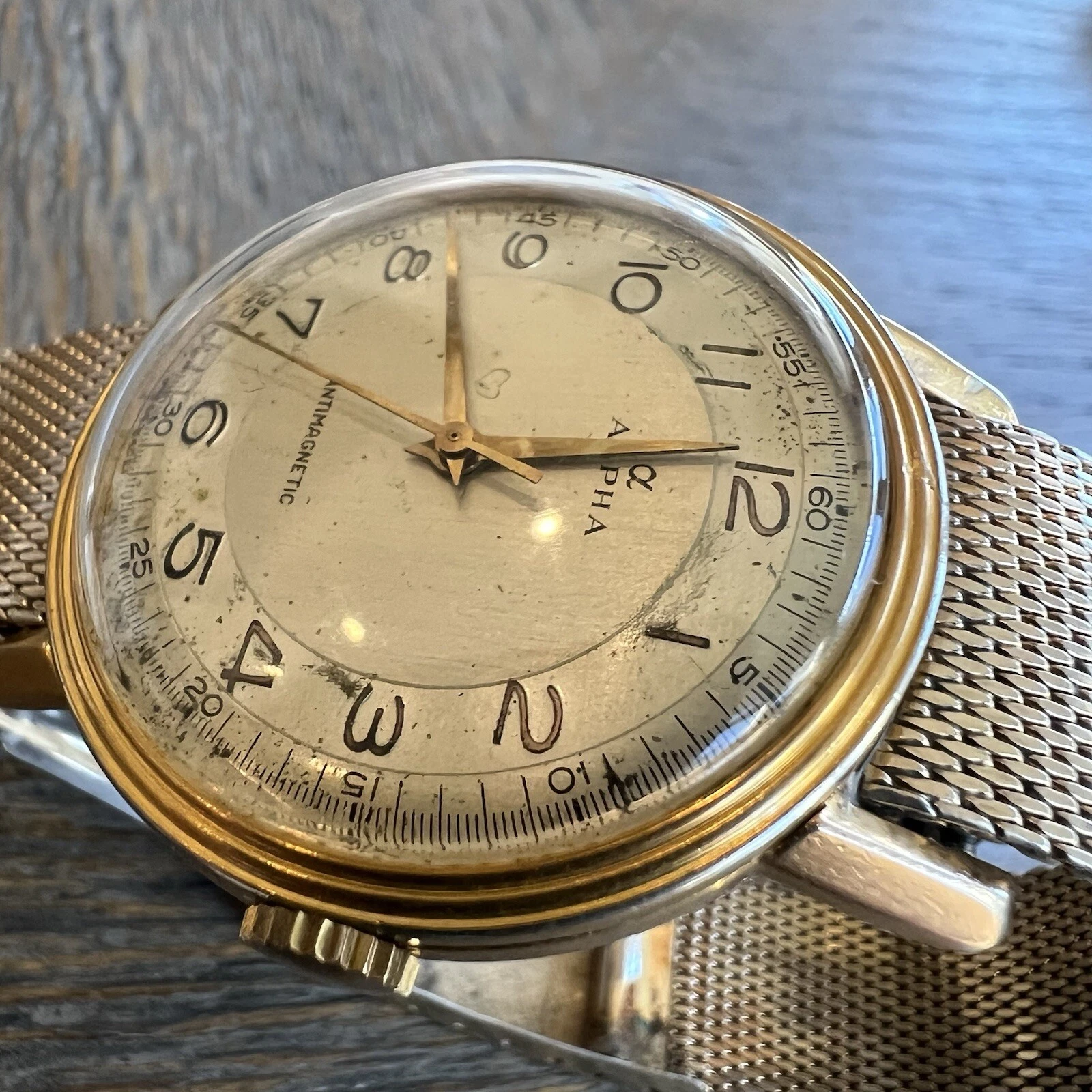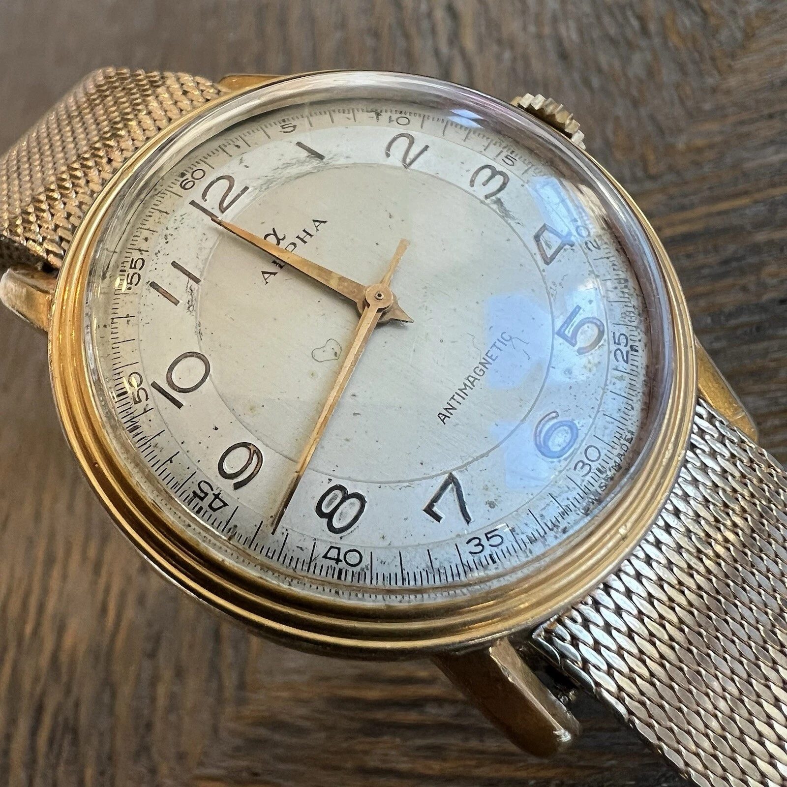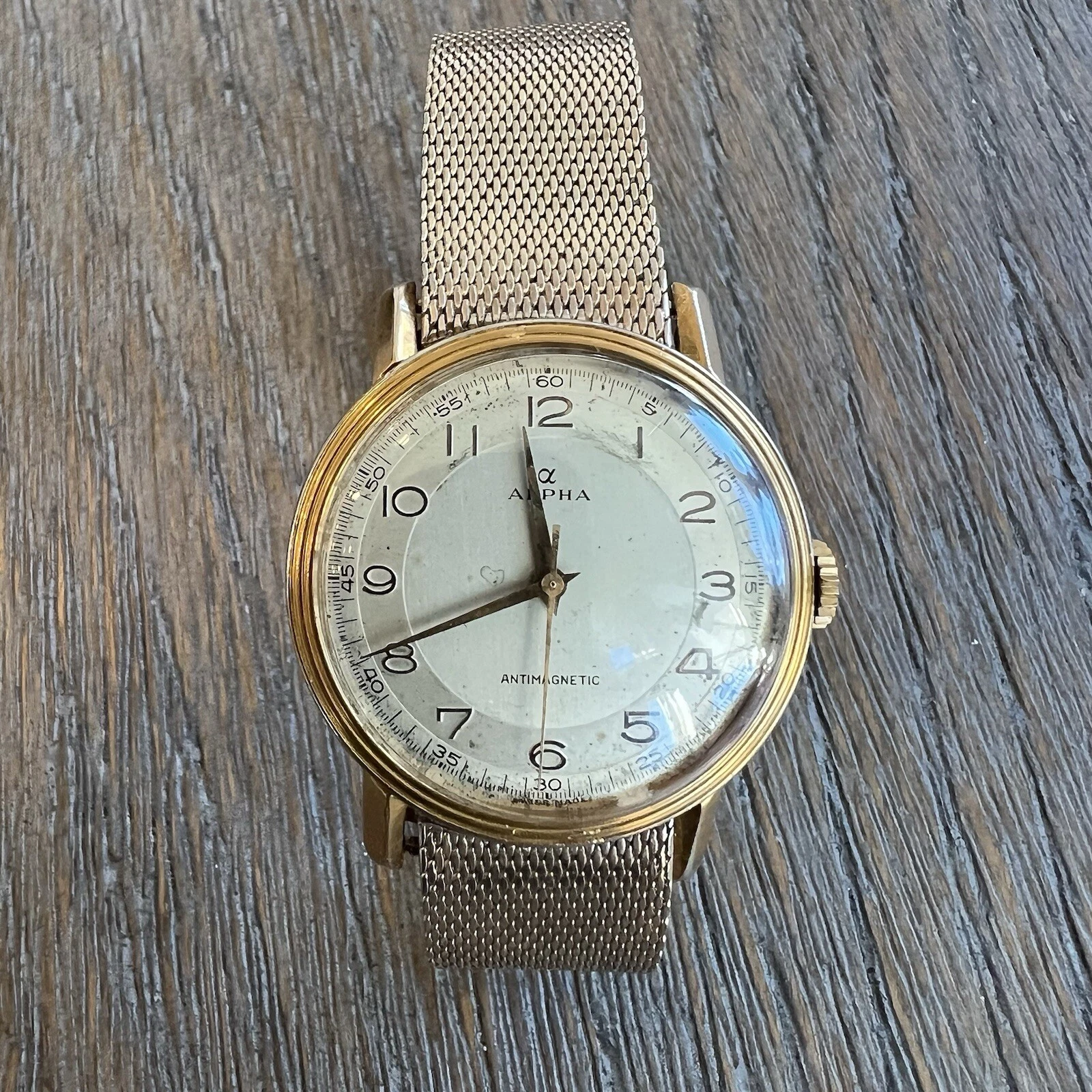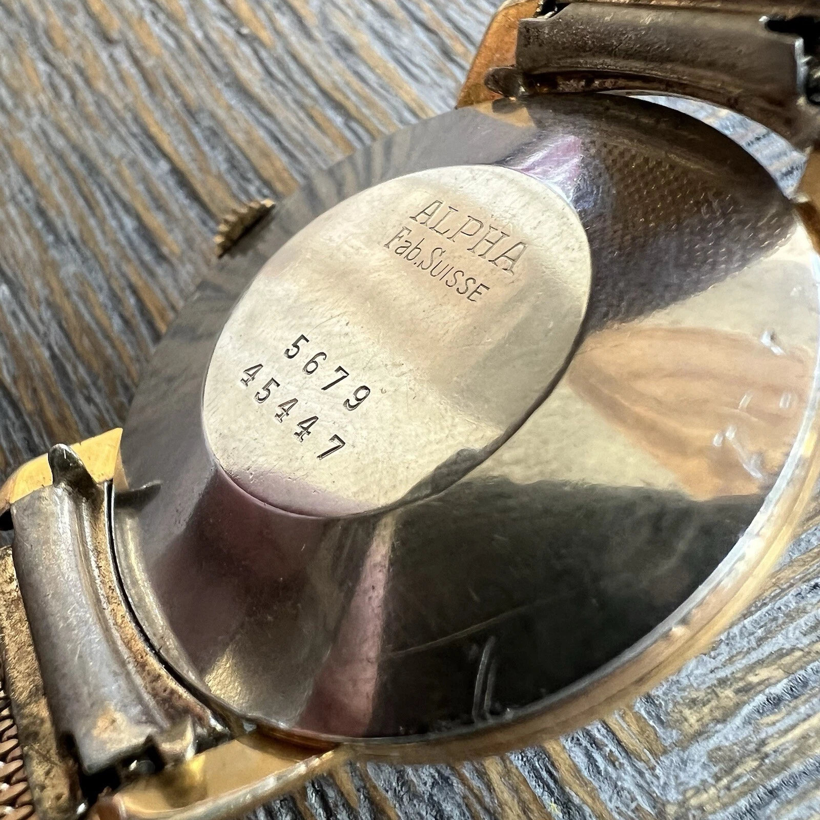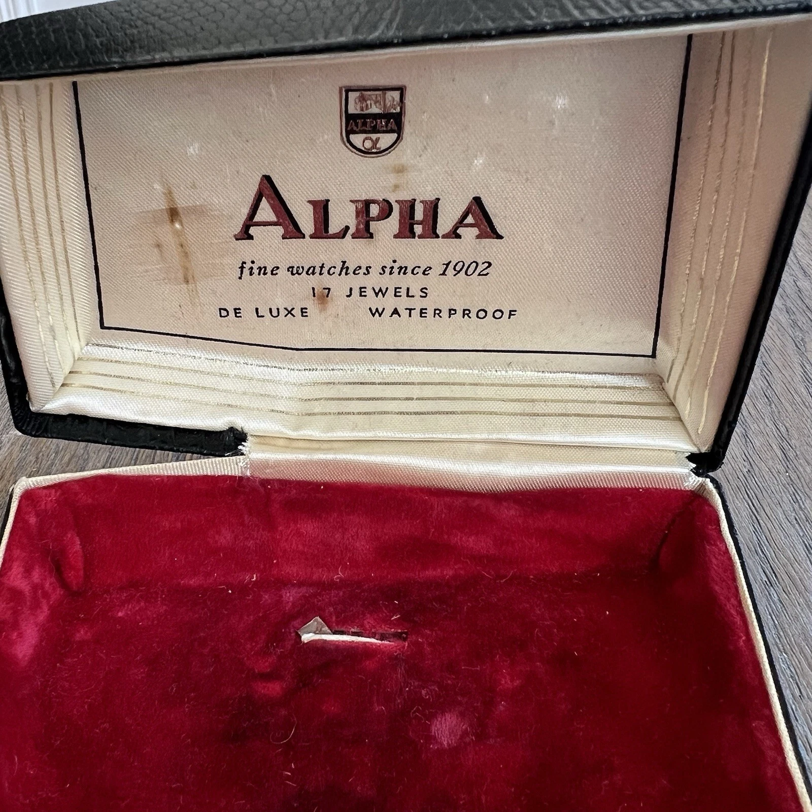 Vintage ALPHA Swiss Made Mechanical Watch 1950s Original Box Runs 35mm 10k RGP