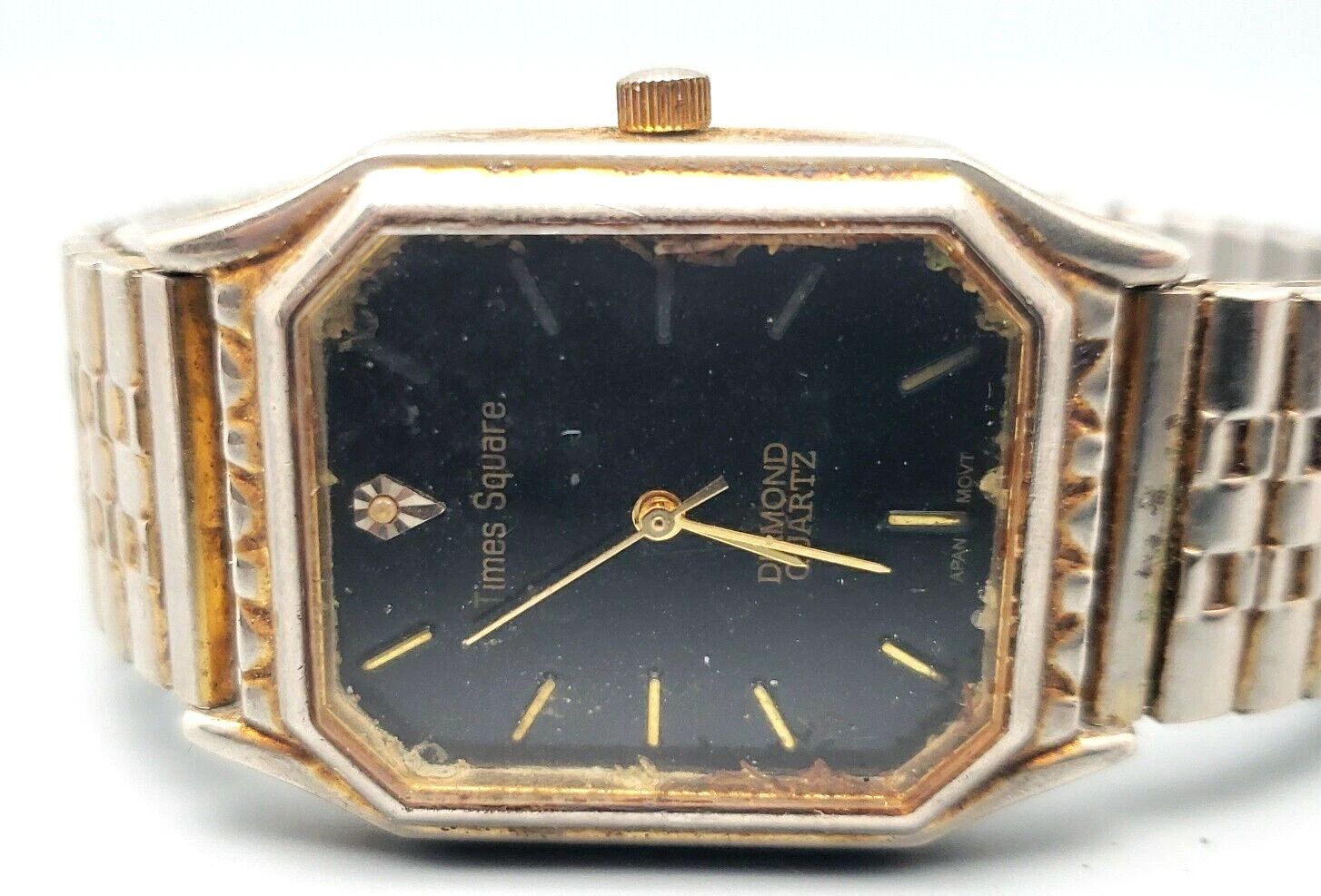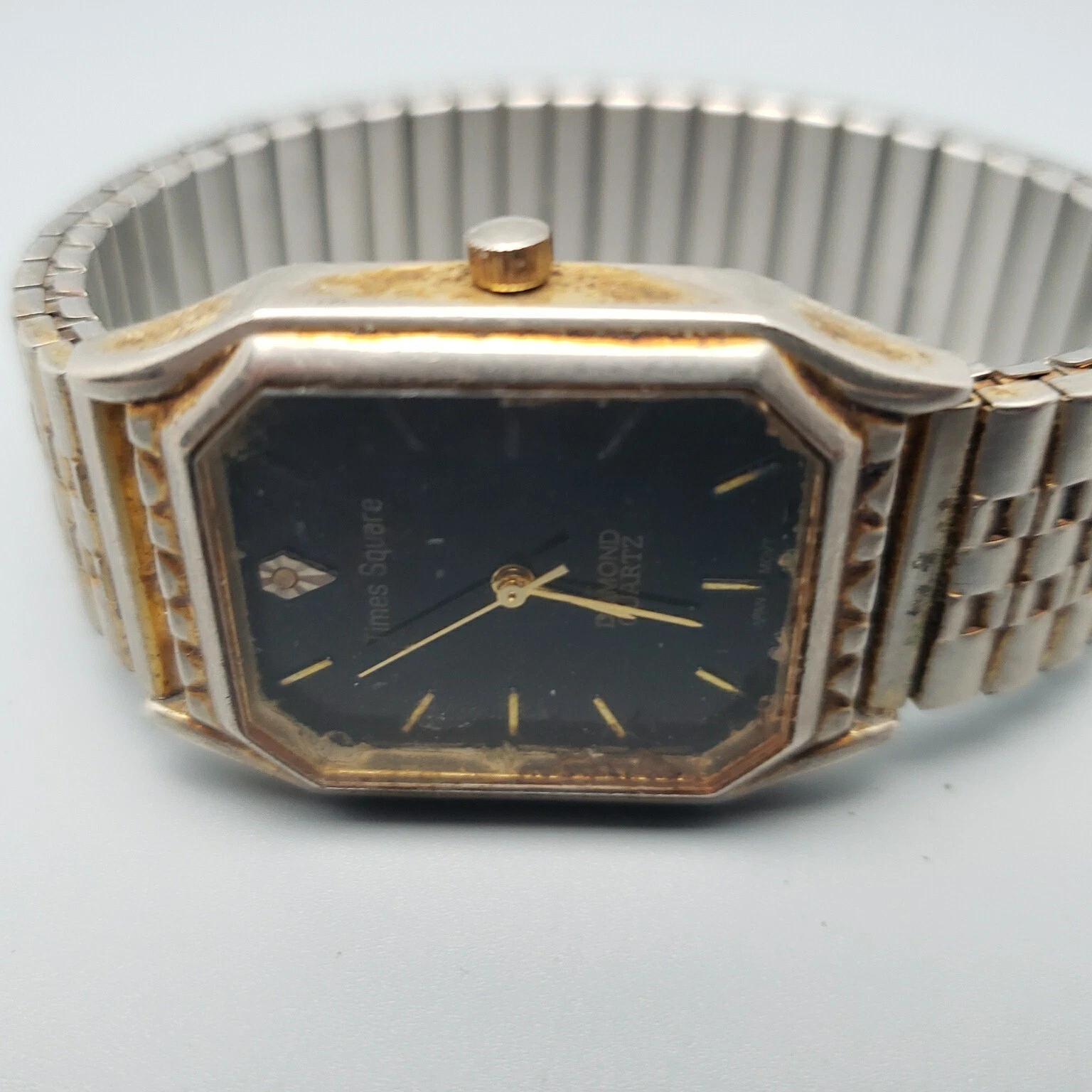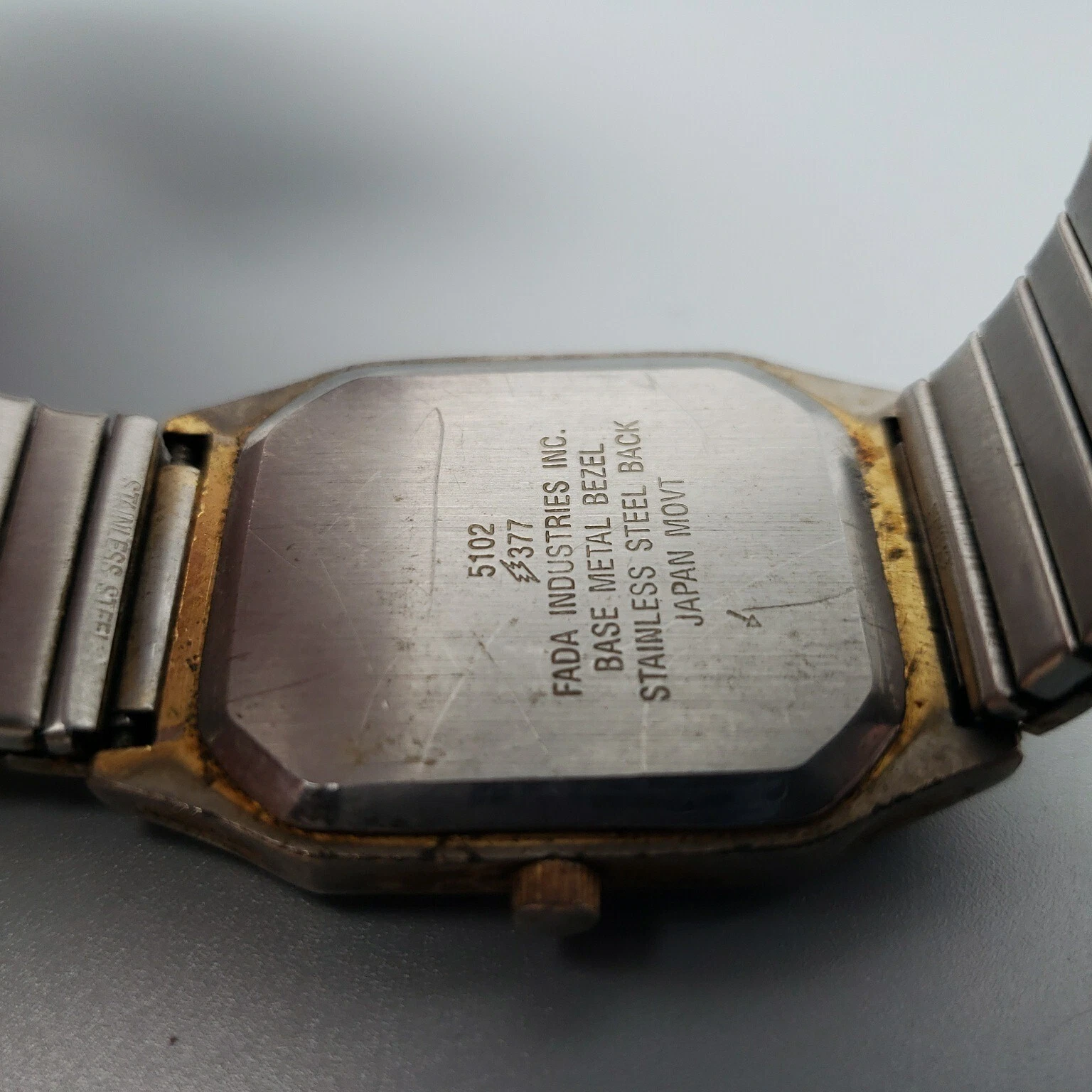 Vintage Fada Industries Times Square Silver Tone Stretch Band Watch