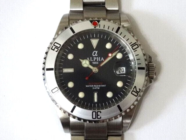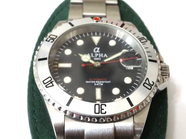 Vintage 1990s α ALPHA 1993 Submariner Divers 3 ATM Automatic Watch Deadstock NOS