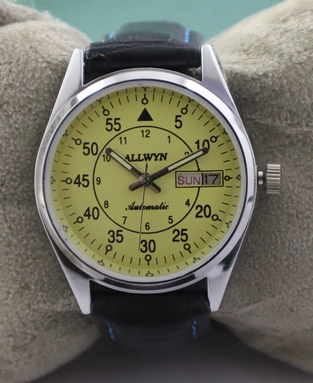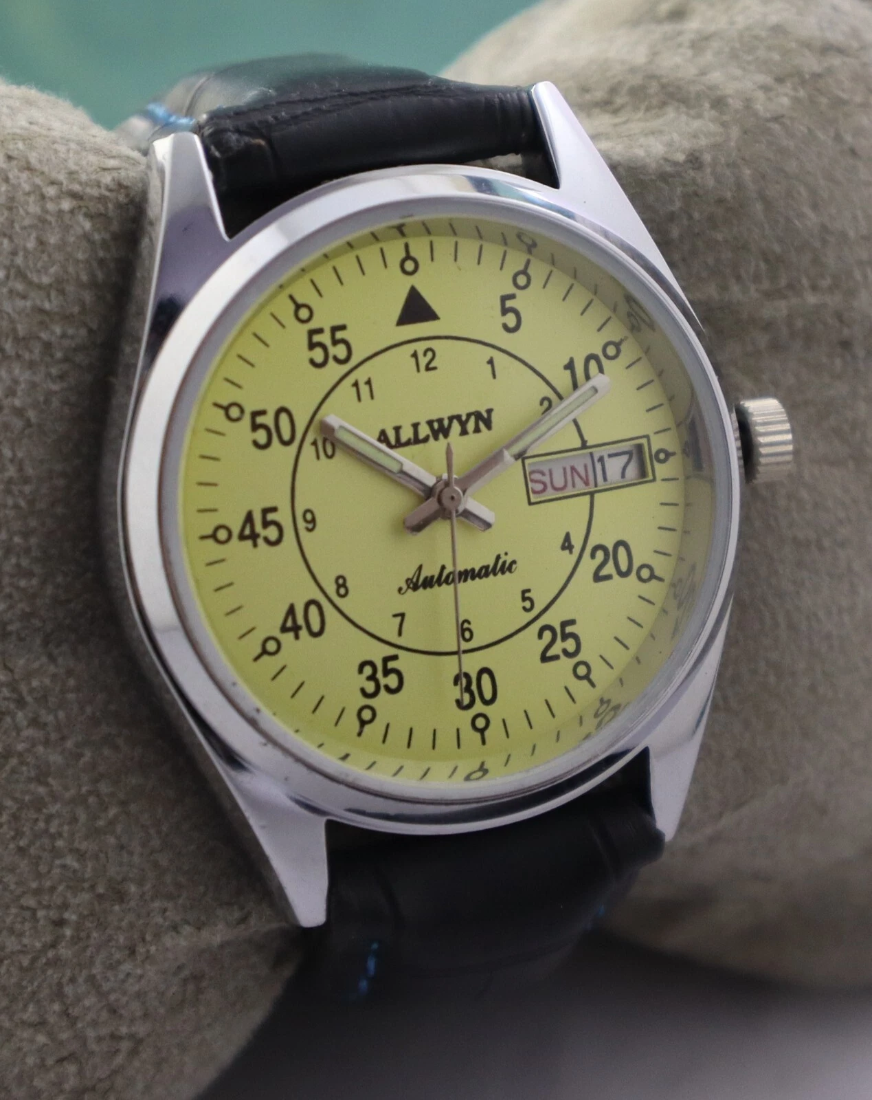Formal Allwyn Automatic Men Day & Date Leather Band Watch Great Condition