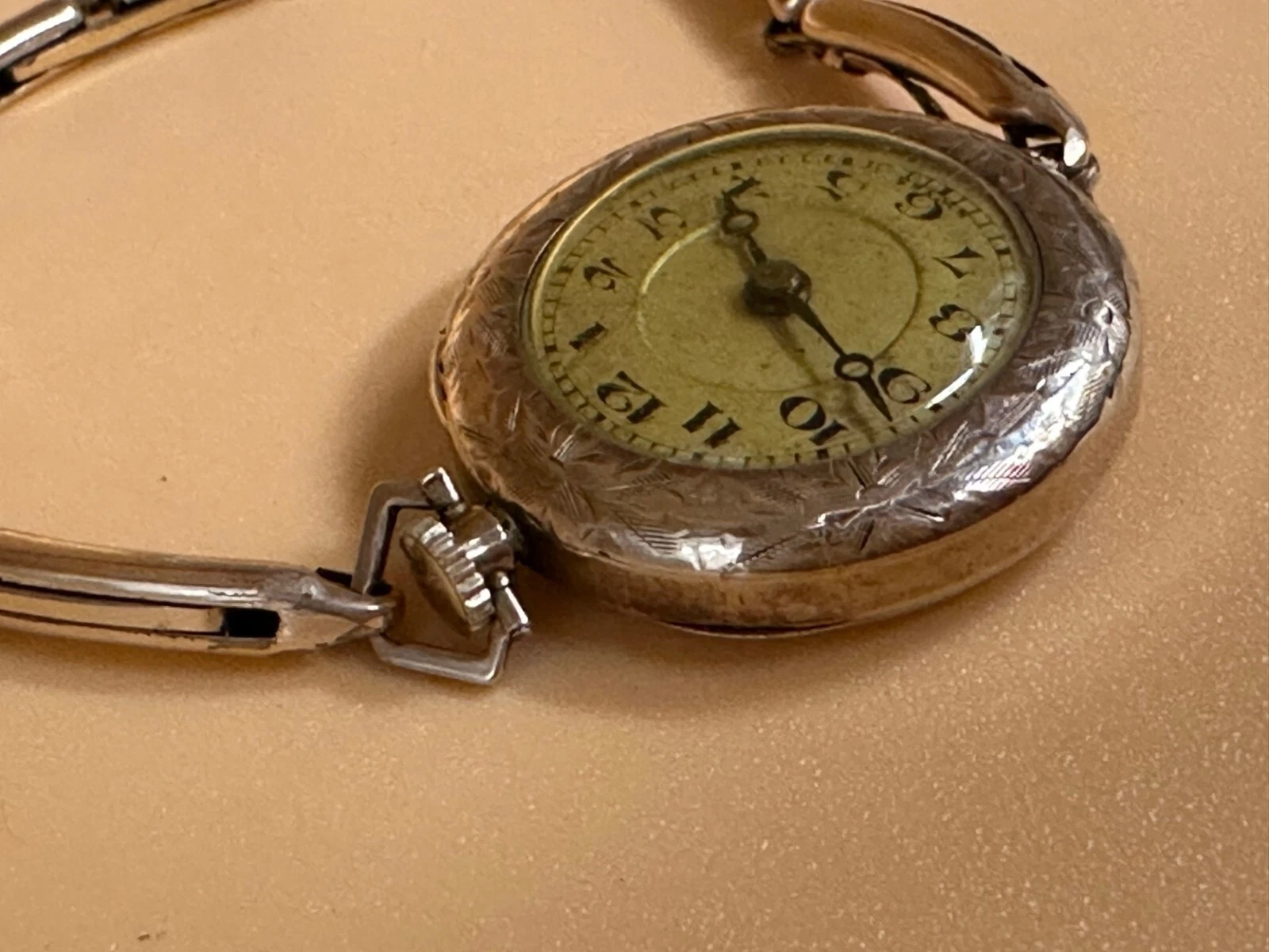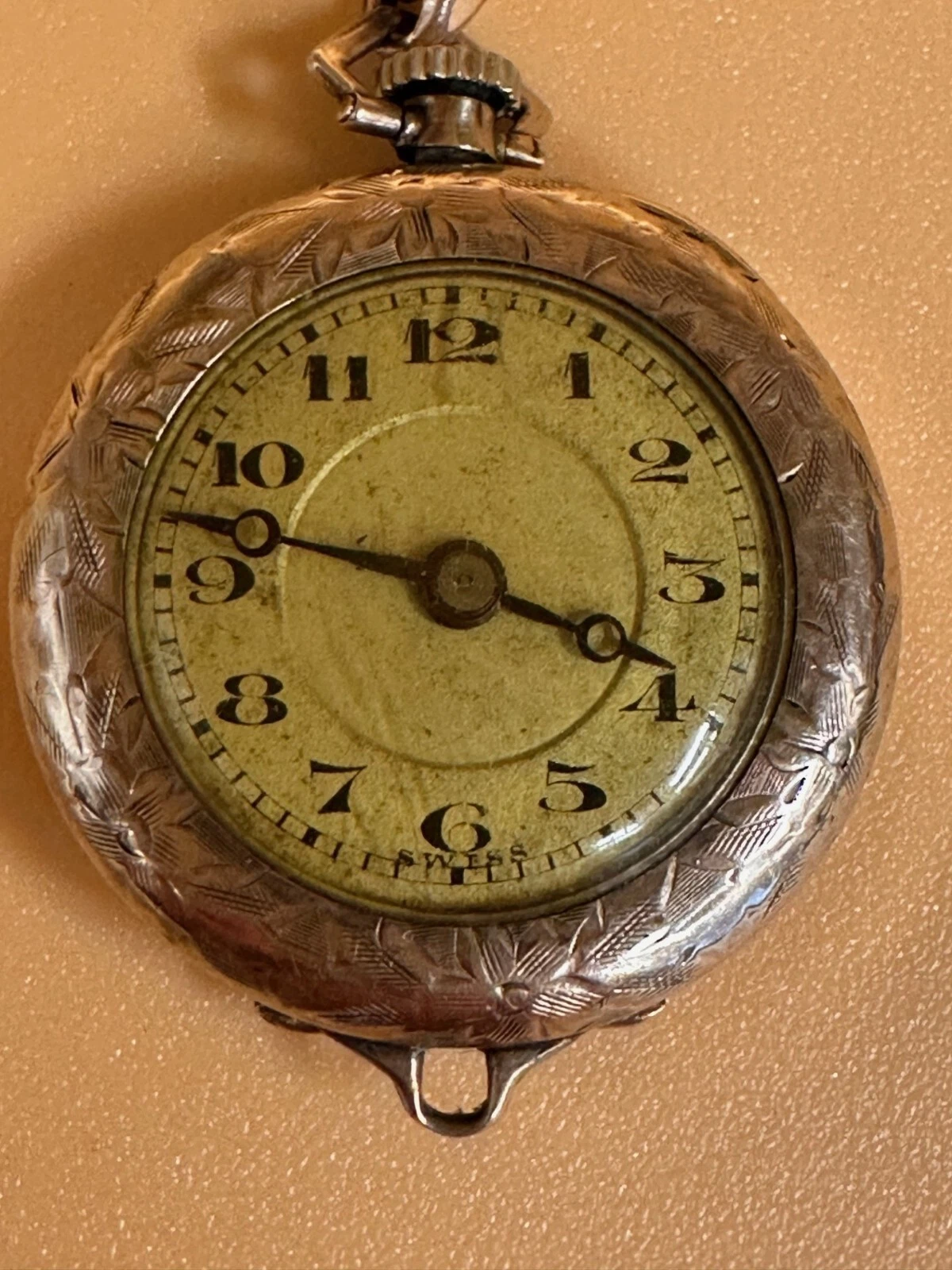 Vintage Swiss Wadsworth Pilot 15 Jewels Gold Filled Pocket Watch with 12K GF Fob