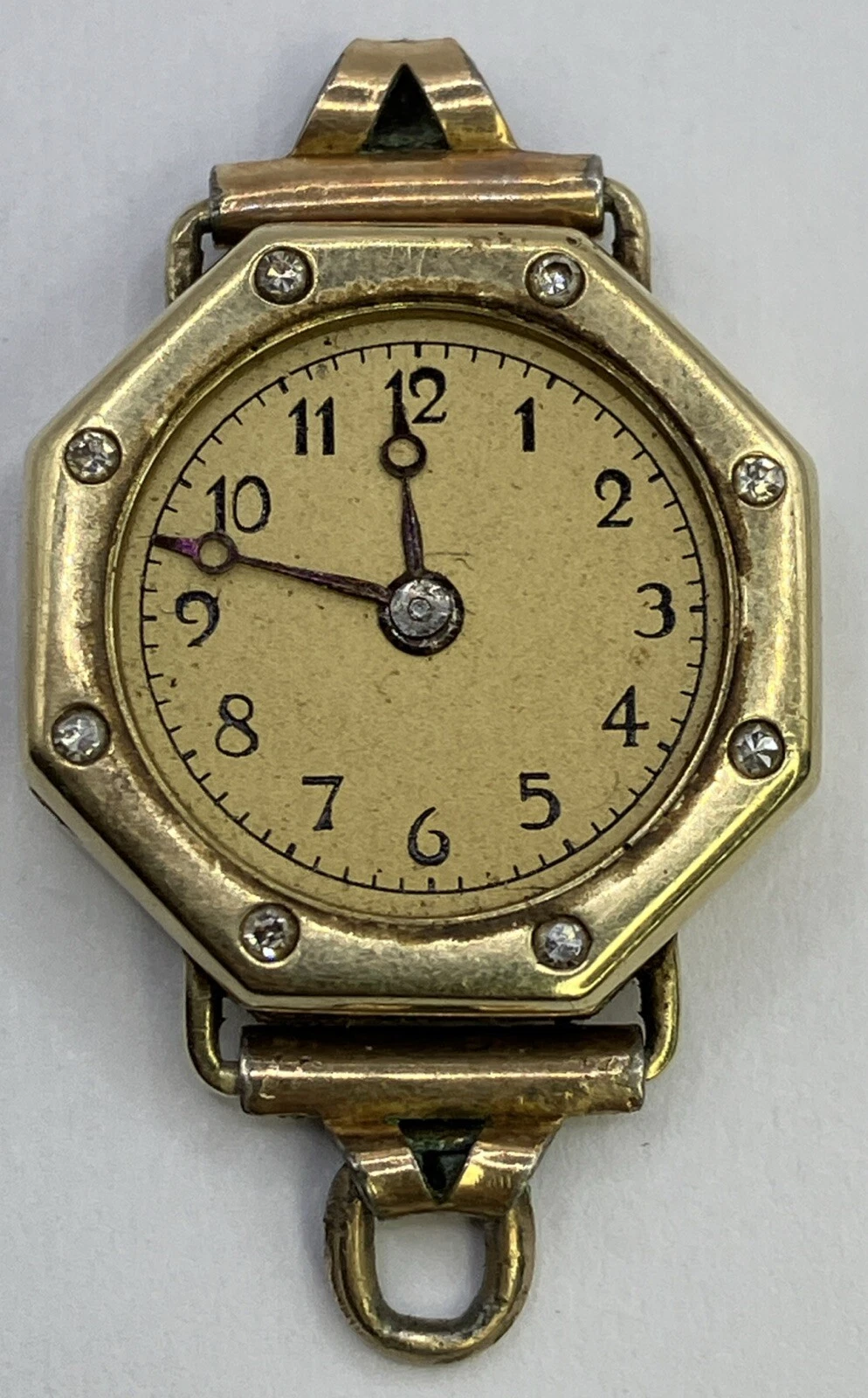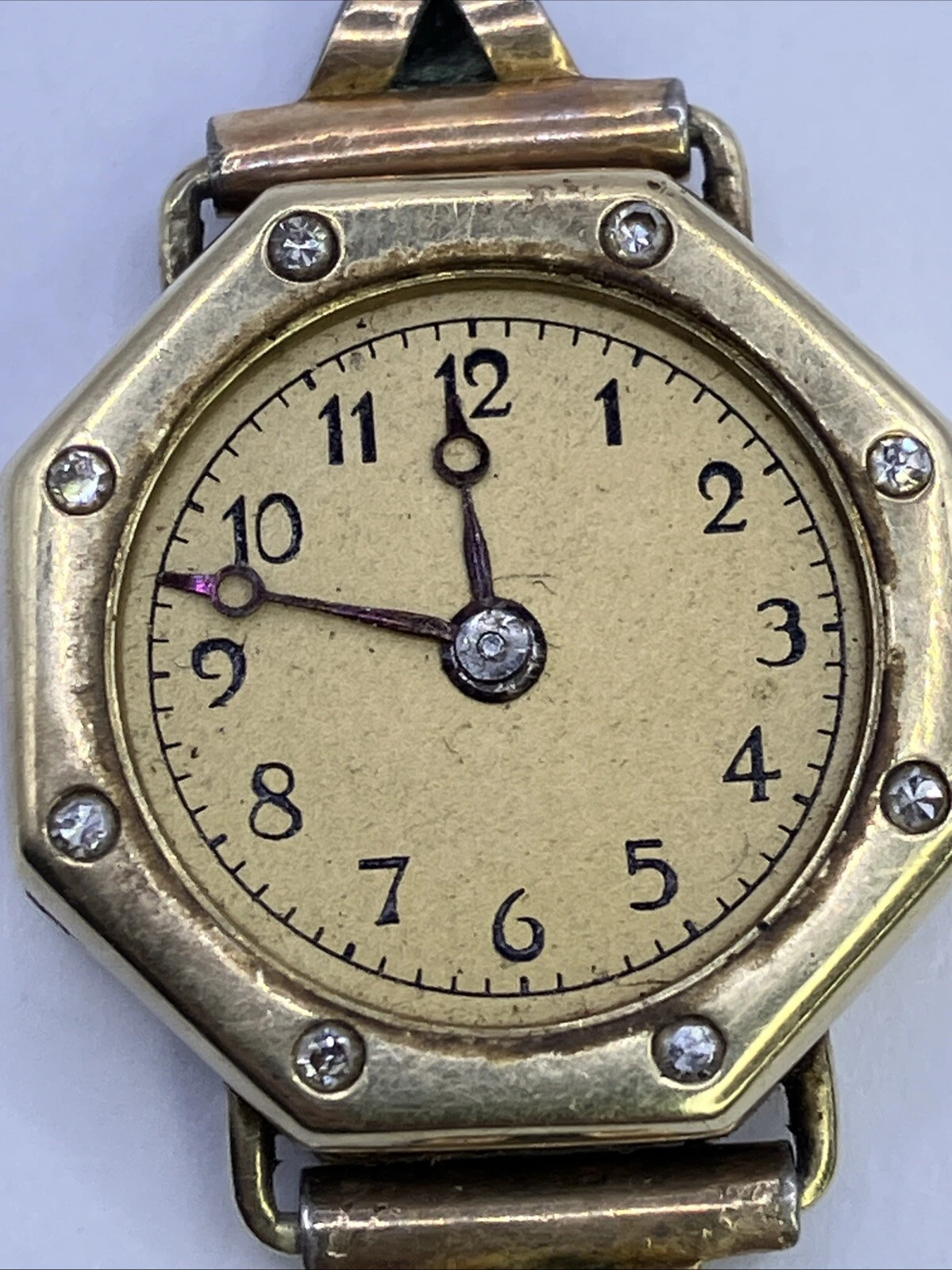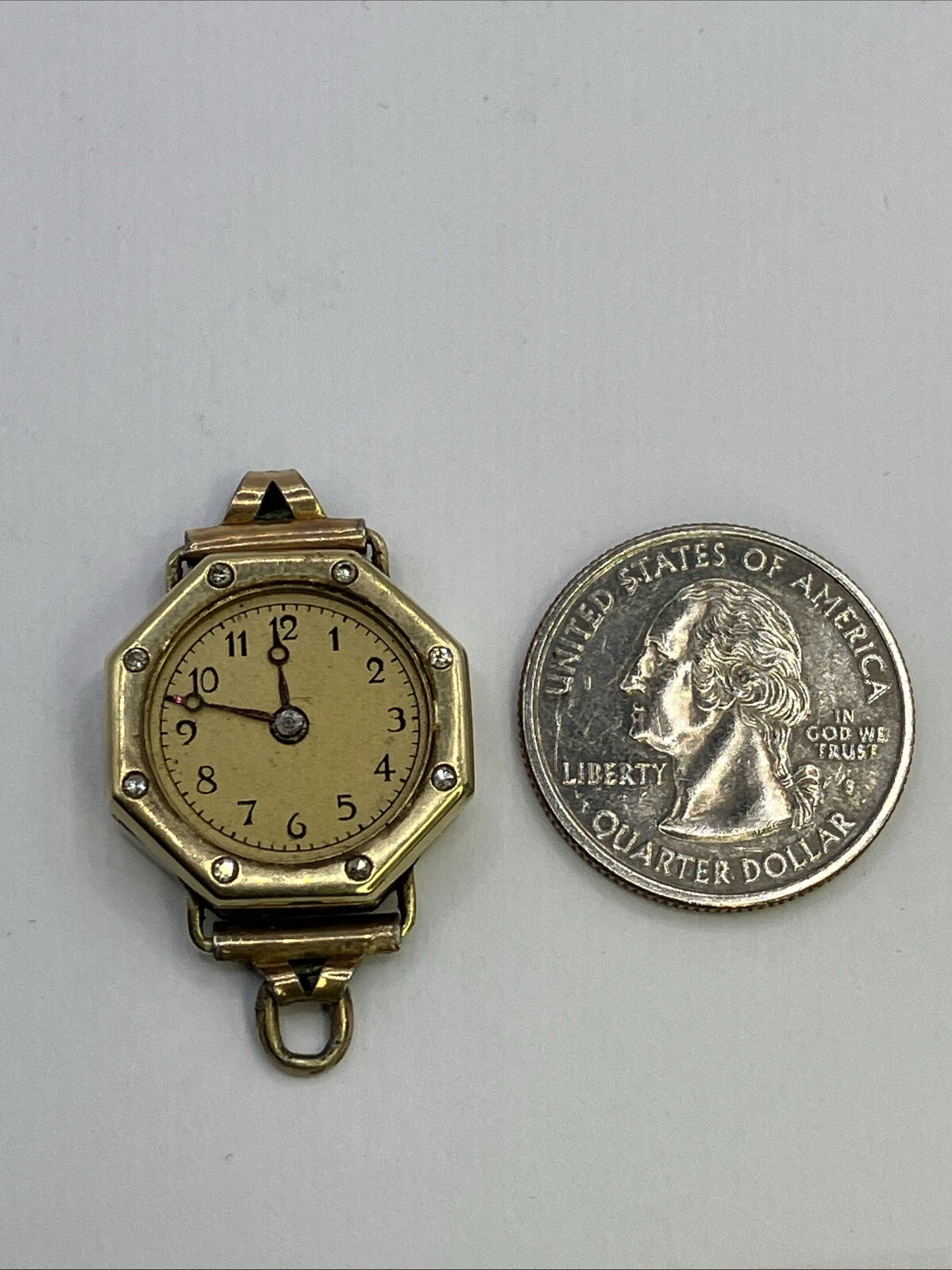 Antique Wadsworth 14k Gold Filled Diamond Bezel Watch For Parts Repair 11.9 Gram