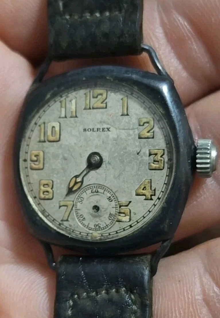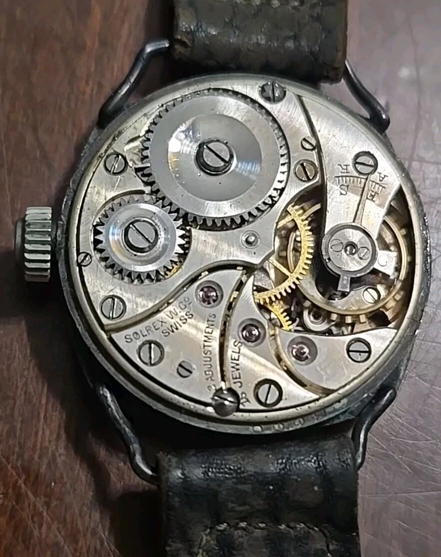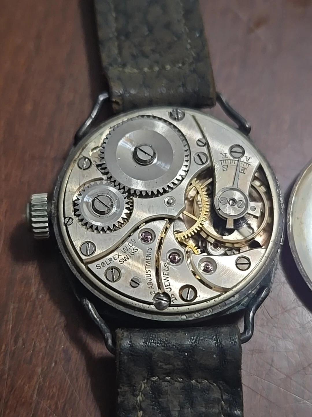 WW1 Era Wire Lug Sterling Mens Watch Solrex Wadsworth Case Nice Band!
