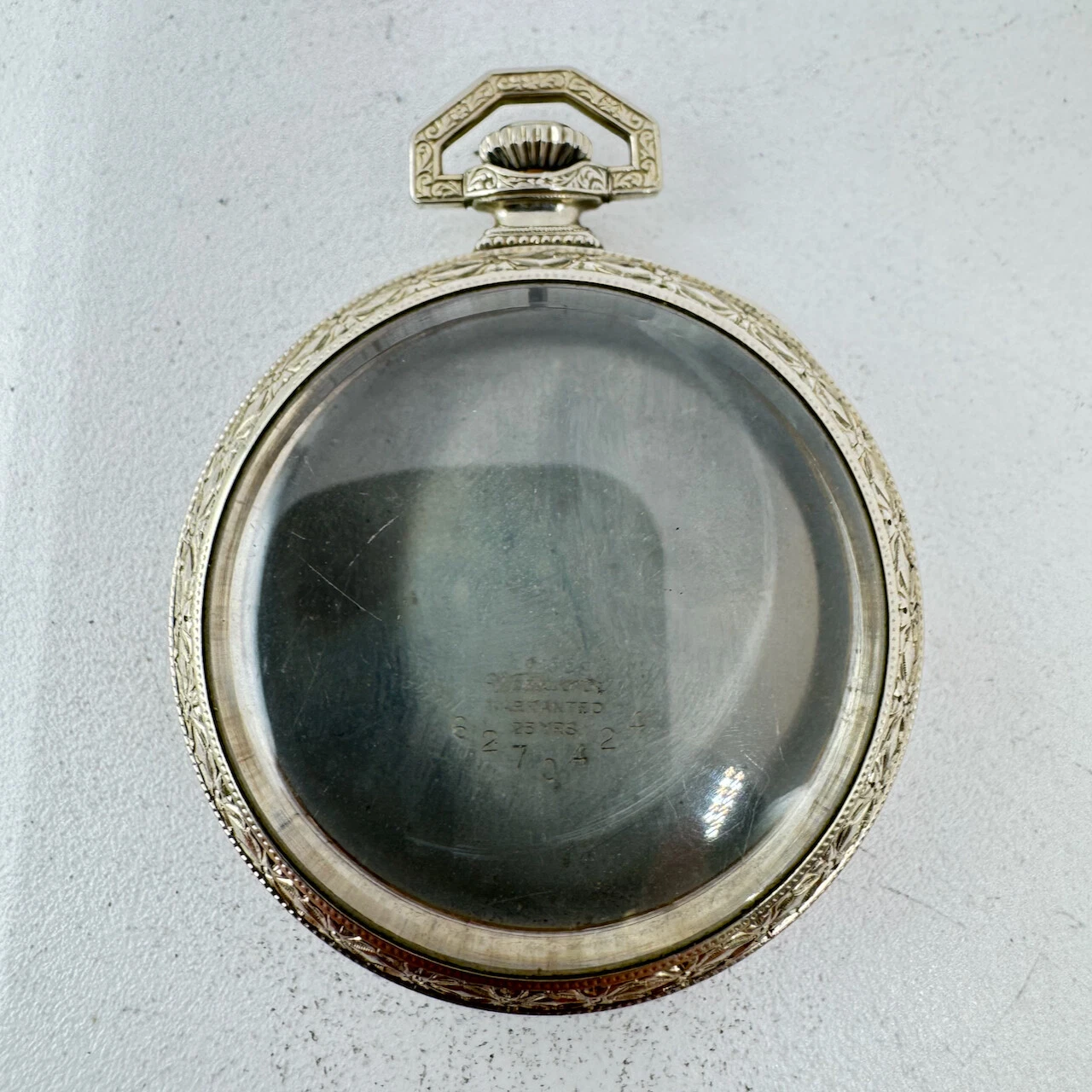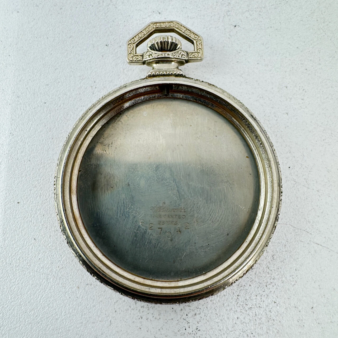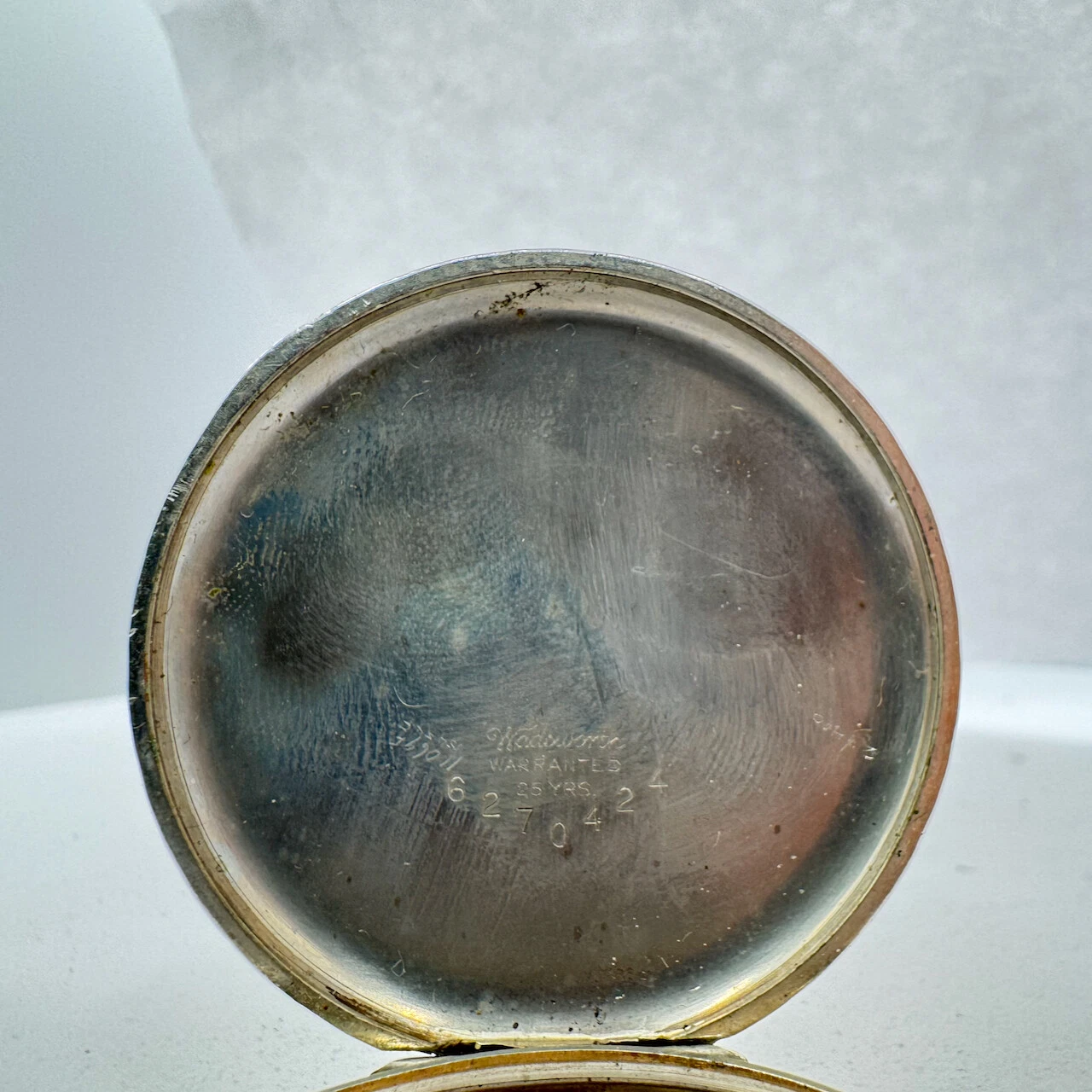 Antique 12s Wadsworth Open Face Pocket Watch Case 25 Year White GFEngraved USA